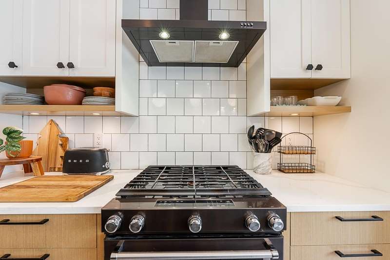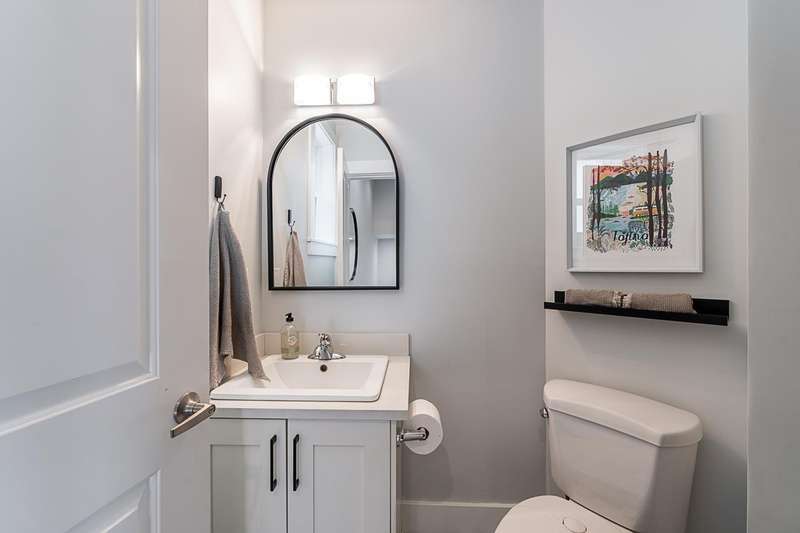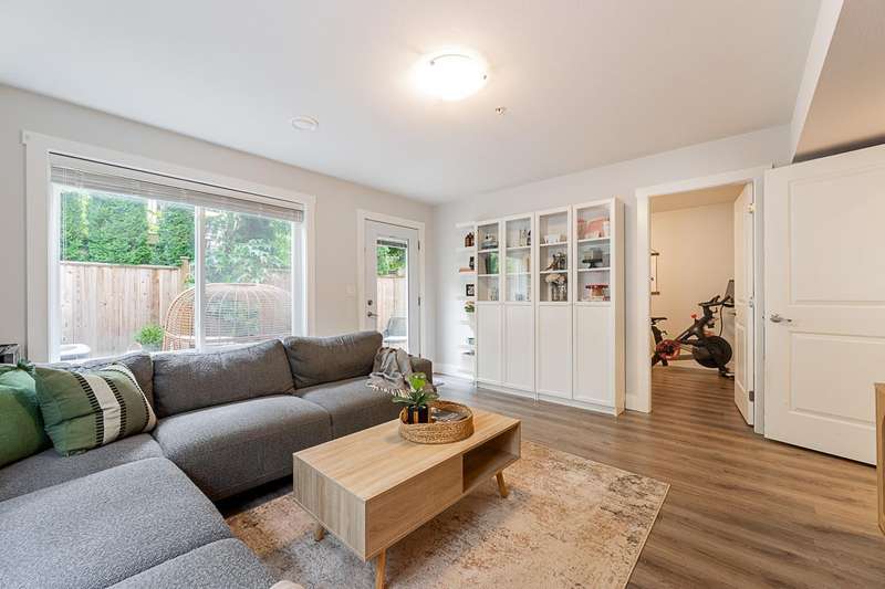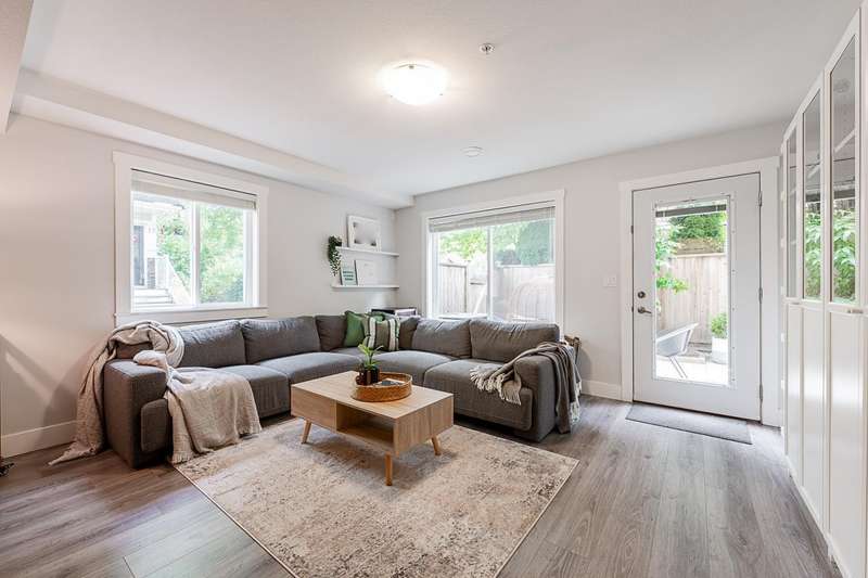 Belmont in Walnut Grove! Rare end-unit townhome offers 2,447 sqft, 4 bedrooms + den, 4 baths, and a layout that feels like a detached home. The heart of the main floor is the designer kitchen w/custom cabinetry, double-sided island, pantry wall, coffee bar, black stainless KitchenAid appliances, gas stove, and farmhouse sink. Open living/dining with built-ins and shiplap accents make entertaining easy. Upstairs, find 3 bedrooms including a primary with renovated ensuite and walk-in closet. The finished basement has a rec room, 4th bedroom, bath, and walkout to your private backyard. Hot water on demand, custom storage, and a full driveway complete the package. Quiet, family-friendly complex steps to trails, parks, and schools, with Fort Langley's shops and cafés minutes away. (id:58403)