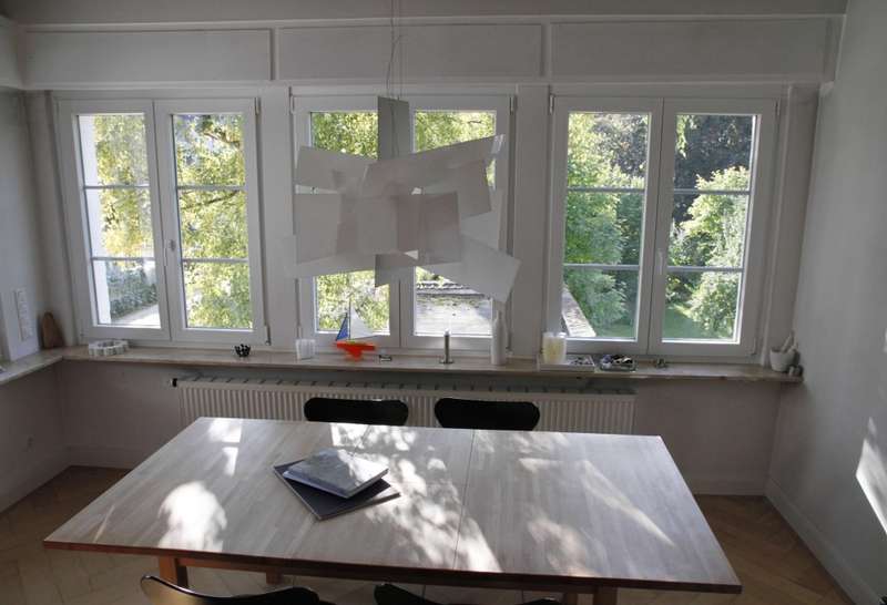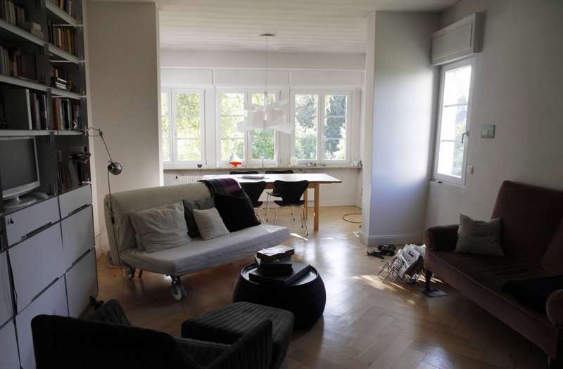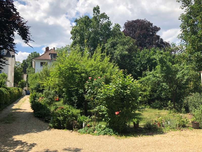 The beautiful 3-room apartment with high ceilings and a living space of approx. 107 m² is located on the 1st floor in Offenbach's popular residential area - Westend. The rear building with 3 residential units is situated on a 550 m² plot and overlooks mature trees. A total of 3 rooms are available. A hallway divides the residential unit into 2 wings. To the east are the two bedrooms (1 through room) and the daylight shower room. In the western wing there is the kitchen (EBK possibly at a distance) and the spacious living and dining area with an opening. All windows offer a wonderful view of green areas and old trees. The living rooms and bedrooms are fitted with parquet flooring and floorboards, the kitchen with resin flooring and elephant skin wall paint, the daylight bathroom (slate colors and mosaic floor) with tropical wood washbasin and rain shower. The apartment is particularly suitable for a couple who love the charm of an idyllic back house from the Wilhelminian era and/or would like to combine working and living under one roof. The Westend district begins at the city limits of Frankfurt and is located between Nordring and Bismarckstraße. Offenbach's Westend is one of the most beautiful residential areas in the city. Walking paths open up good leisure opportunities and round off the picture of this popular and attractive residential area. Good shopping facilities are within walking distance, as are all public transportation options. Please note that there is no parking space available.