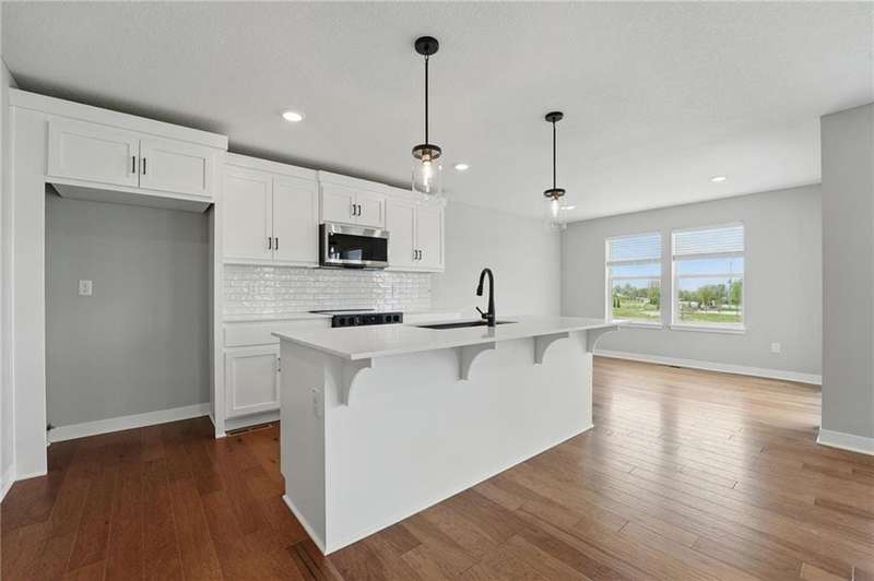 UNDER CONSTRUCTION!! Ready around March/April! Lees Summit award winning Schools! The Saffron floor plan by award winning Summit Homes! Spacious main level for daily living with all bedrooms and laundry on the upper level. Large island with quartz countertops in the kitchen that overlooks the Dining room/Great Room. Large Primary Bedroom with an open spa-like bathroom. The Primary Bathroom has an oversized vanity with double sinks with quartz countertops and a walk-in shower. Possible 5th bedroom with basement finish. Amenities include the luxury of a beautiful two-acre pond, pool, playground, covered pavilion with a grill. **This is a dirt lot. Pix are of a different model. Please see the Saffron model at 8733 SW Edgewater Dr**