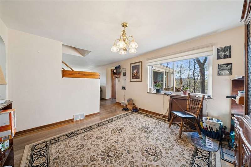 Tucked away on a quiet dead-end street, this unique 4-bedroom, 3.5-bath home offers the perfect blend of seclusion & convenience. Step through the front door into a bright & airy sunroom, where windows showcase breathtaking views & flood the space with natural light. The main level features hardwood floors & a flexible layout ideal for multi-generational living. Just off the living room, the in-law suite includes its own private entrance, full kitchen, bedroom, & full bath?perfect for guests or extended family. Upstairs, you'll find 3 generously sized bedrooms & 2 full bathrooms, providing space & privacy for everyone. Outside, a large fenced-in yard invites entertaining, play, or peaceful evenings under the stars. The oversized 2-car detached garage is a standout feature?heated & equipped with a half bath, plus a second-floor space with potential to be finished into additional living quarters, an office, or studio. Don't miss this gem offering space, versatility, & privacy all in one!