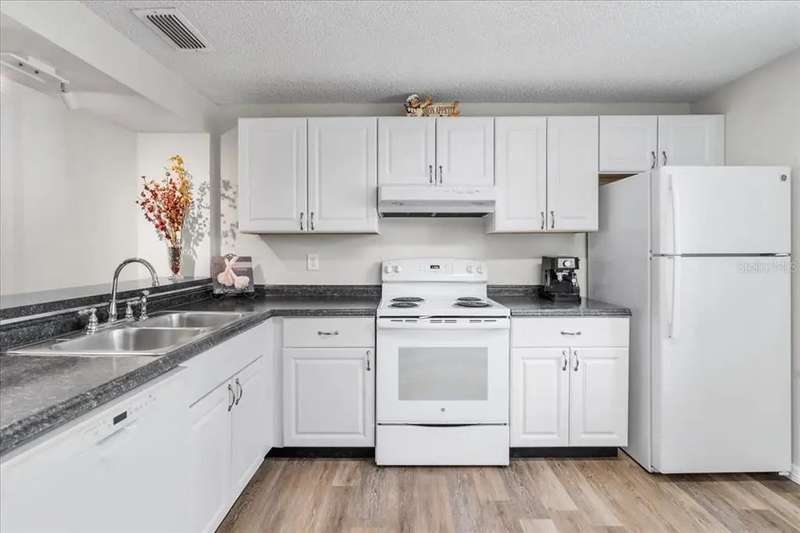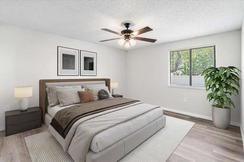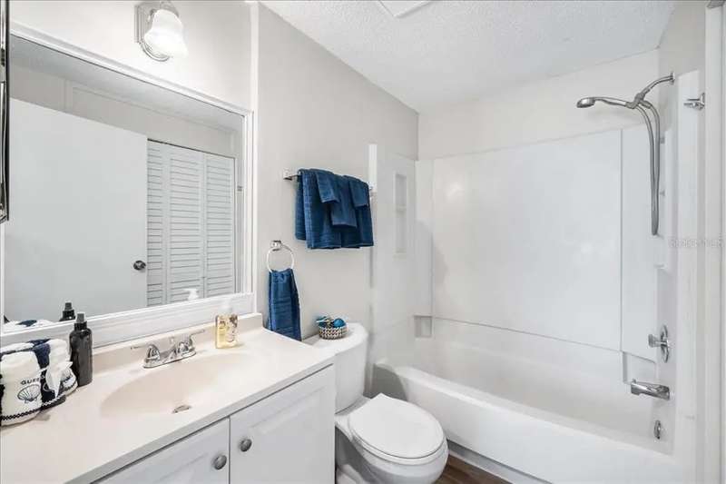 One or more photo(s) has been virtually staged. Welcome to the peaceful, pet friendly community of Cordova Villas in west Bradenton. The community is located less than 5 miles from Anna Maria Island, Bradenton Beach and close to shopping, medical services, dining, parks and recreational facilities. The open floor plan is perfect for entertaining and enjoying time with family and friends. The bright and spacious kitchen is open to the dining room and living room. The vaulted ceiling in the living room adds an open and airy feeling to your living space. Sliding doors open to the enclosed lanai with a quiet and serene backyard view and garden area. The split bedroom plan is perfect; each bedroom is equipped with its own full bathroom for privacy and convenience. Recent updates include a BRAND-NEW A/C unit with 10-year warranty available for the new owner, brand-new water heater, fresh interior paint and tile flooring throughout, new lighting, closet doors and more. There is also a spacious sitting area in the front of the condo along with a sizeable storage closet for your bike and/or beach and pool items. It’s just a few steps to your personal covered carport and a very short walk to the gleaming community pool area and community parking. This is a true gem, come make it your new home today!