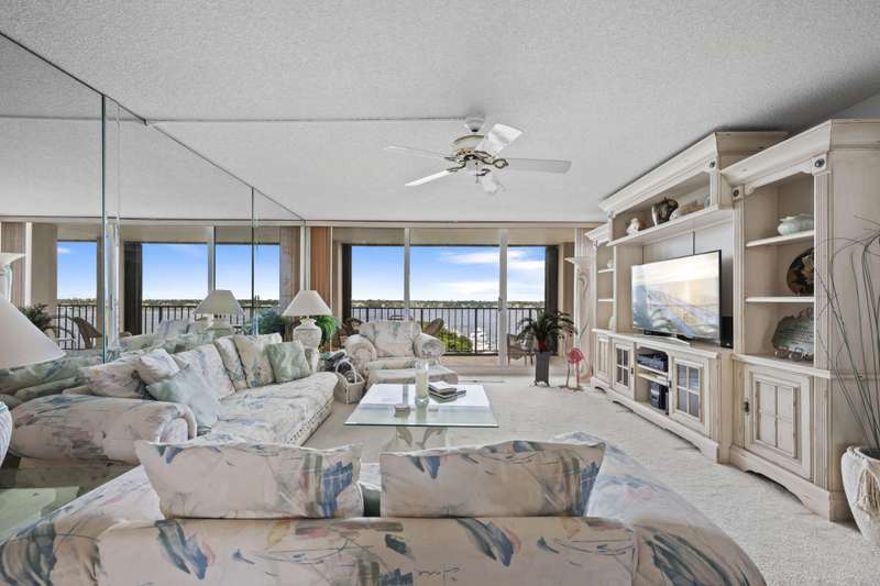 Enjoy beautiful views from your 38 ft. balcony with access from every room. Views of Old Port Cove Lagoon and Marinas.Split bedroom floor plan with separate bath for guests. 2 updated bathrooms. Two-mile walking path along the water. 24/7 Manned gated community. Fitness center with sauna.Walk to Belles restaurant.