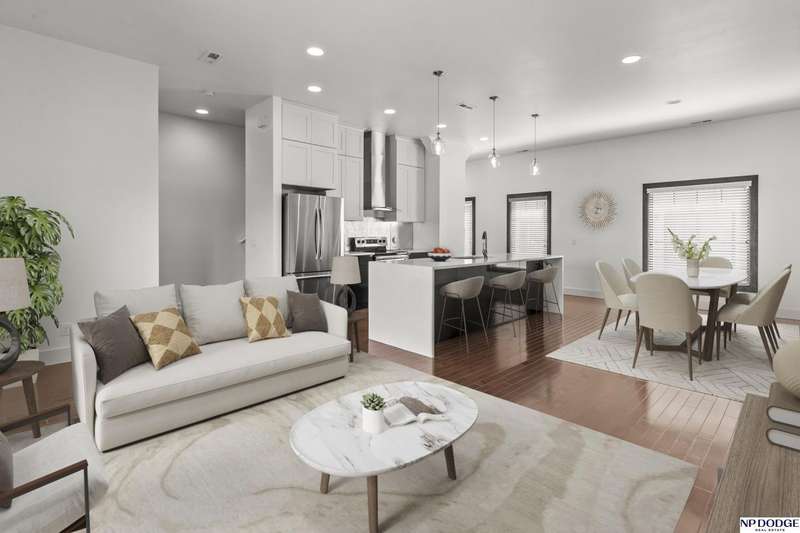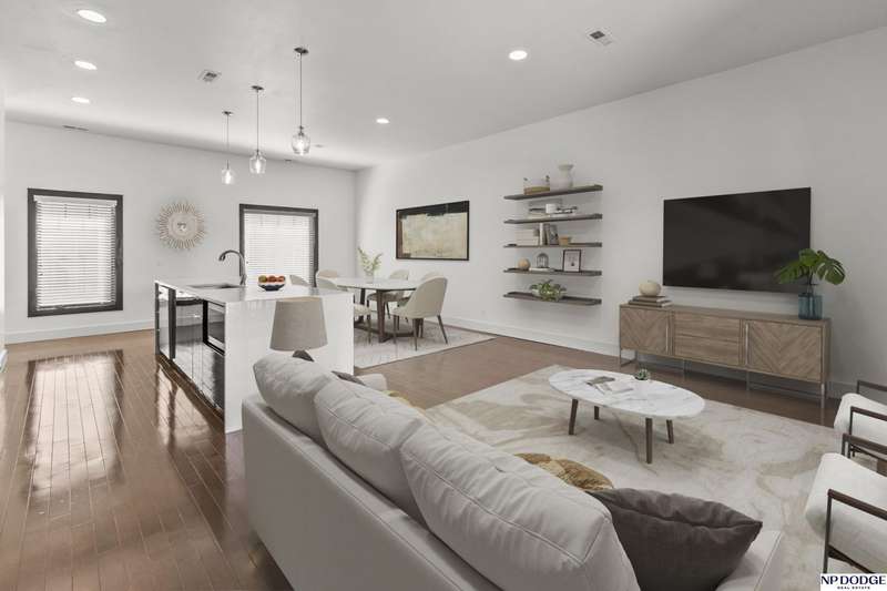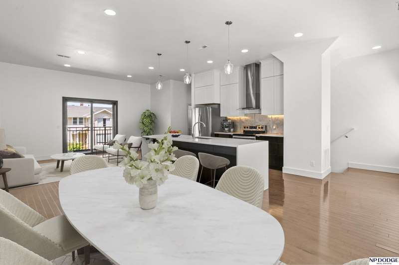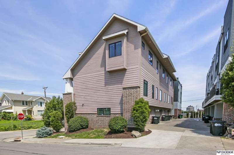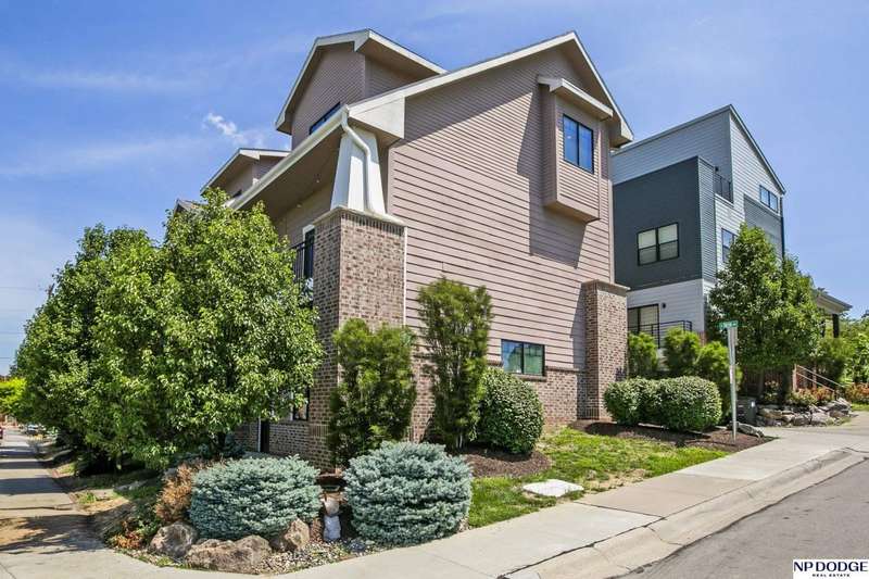 Corner Unit you have been waiting for! Featuring 3 bed, 2.5 bath townhome in a highly desirable Midtown location. 10+ ceilings, nat. HW floors on main & an expansive open-concept kitchen w/ quartz countertops, SS appliances, custom cabinetry, & cozy patio. Thoughtfully designed w/ample natural light & convenient 1/2 bath off kitchen. Top level you'll find 2 beds including spacious primary suite w/ double vanity, oversized walk-in closet, tiled shower, & direct access to laundry. Main Level has a 3rd bed w/ its own spacious full bath en-suite & a welcoming front porch overlooking mature landscaping. Enjoy a 2-car garage w/ add. storage. Walk to a popular, local coffee shop & nearby dining/entertainment & easy access to Interstate, UNMC, Creighton, & Blackstone Dist making your commute a breeze. Modern design, smart layout, & a location that truly can't be beat! *Investor-Short term rentals-Air Bnb/VRBO allowed!*