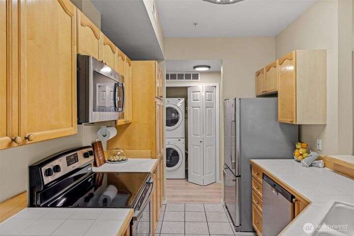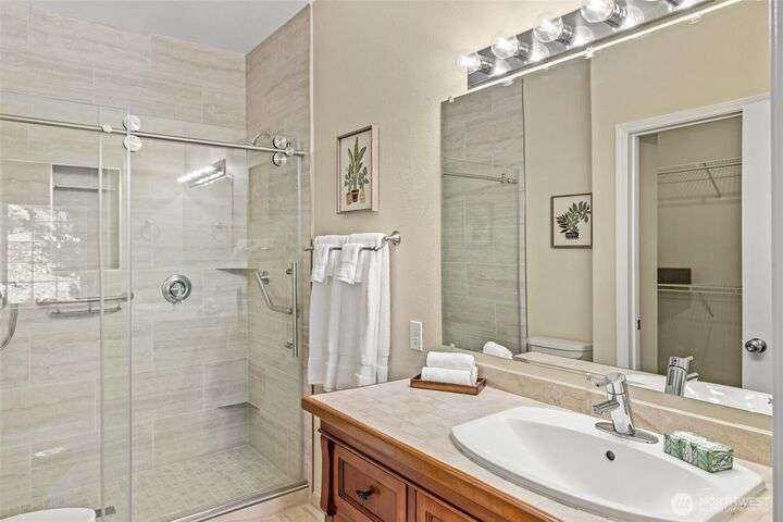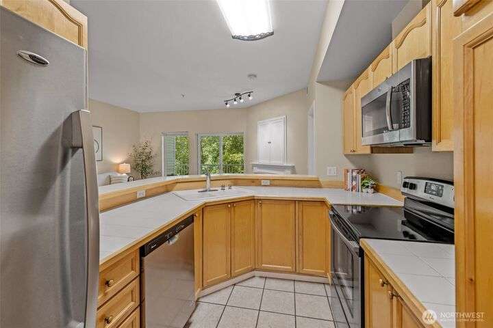 PRICE REDUCED AND PRE-INSPECTED! Stunning, move-in ready condo in Woodinview w/NO STAIRS! Soaring 9ft ceilings & bright, open layout. Fresh paint, new LVP flooring, & kitchen w/ stainless appliances. Large Primary suite w/spa-like 3/4 bath & generous walk-in closet, flexible 2nd bedroom perfect for home office or den. Convenient in-unit washer/dryer & private deck for relaxing & entertaining. Community amenities: Tennis & Basketball courts, playground & pet-friendly w/ample parking. Pickleball courts right nearby! Unbeatable location w/easy access to freeways, transit, Burke Gilman Trail, UW Bothell & vibrant Woodinville/Bothell downtowns. NO RENTAL CAP=Amazing investment potential. Top-rated Northshore Schools. Don't miss this opportunity!