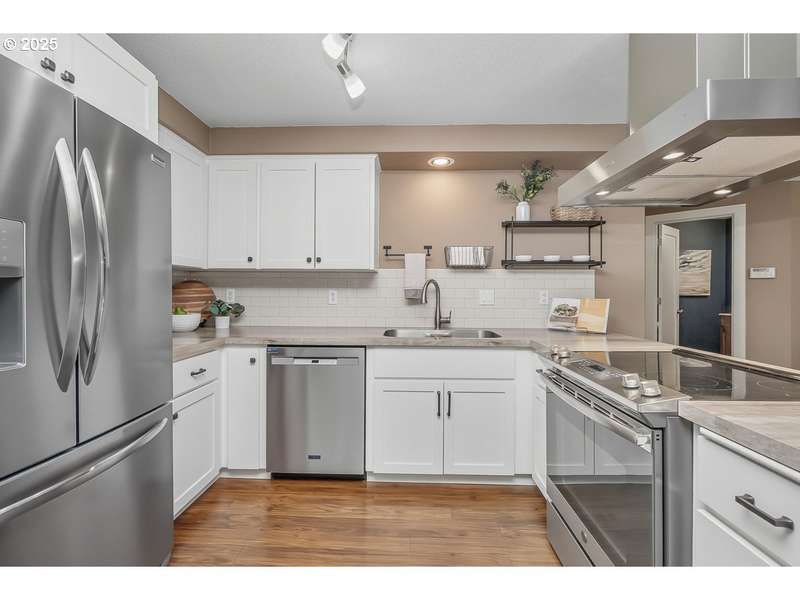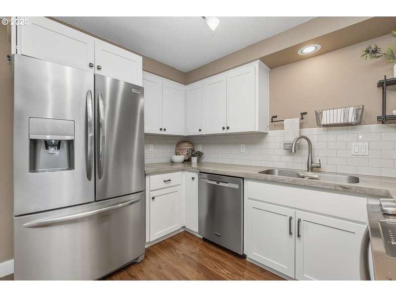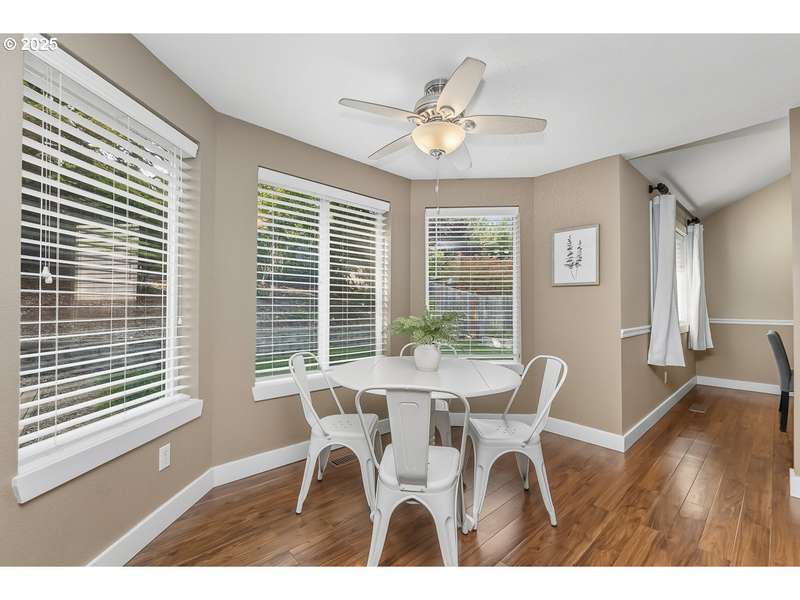 Charming well-maintained home located in the Bull Mountain Meadows neighborhood of Tigard. Updated kitchen with stainless appliances and nook opens to family room. Living room and dining room with vaulted ceilings. Primary suite with updated bathroom and walk-in closet with closet organizer. LVP flooring throughout the main level. All new interior doors and trim installed in 2023. Furnace installed in 2015 and new AC unit in 2025. New roof installed in 2022. Upgraded carpet. Vinyl windows. Laundry closet on main level. Storage space. Private fenced backyard with deck to enjoy. Two tool sheds. Great location near Progress Ridge for shopping, restaurants, and entertainment. Located in the Beaverton School District including Mountainside High School.