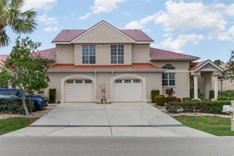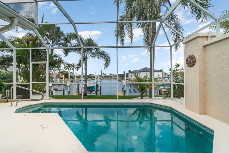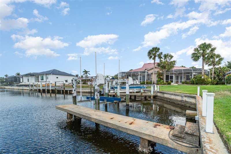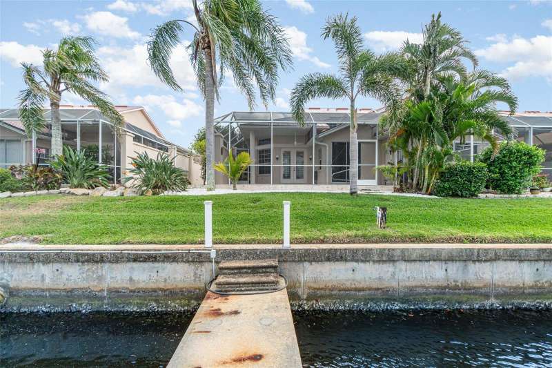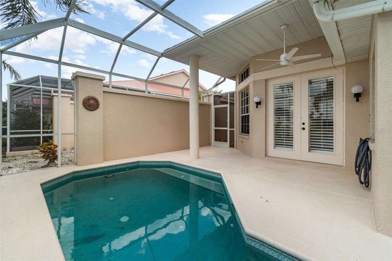 WELCOME TO 814 VIA TRIPOLI — a beautifully remodeled townhome in the heart of Punta Gorda Isles. This 2-bedroom, 2.5-bath home, with an upstairs bonus den and immaculate garage, is perfect as a full-time residence or seasonal retreat. A gated garden entry leads to the stained-glass front door and into a massive Great Room with soaring ceilings, a wall of windows, and an updated kitchen with new appliances. Off the kitchen, you’ll find a laundry room with new washer/dryer, powder room, and a spacious dining area. The first-floor primary suite features an ensuite bath and dual walk-in closets, with direct access to the peaceful lanai. Out back, enjoy a private, Italian-tiled plunge pool, plenty of space for dining and entertaining, plus a shared dock and private boat slip—offering easy access to Charlotte Harbor, the Gulf, fishing, sailing, kayaking, and more. Upstairs, you’ll find a second bedroom, full bath, and an airy loft that’s ideal for an office, studio, or guest space. Fresh paint and new carpeting complete this move-in ready home. Enjoy breathtaking views and sunsets in one of Florida’s most desirable waterfront communities--- come see your new home today!
