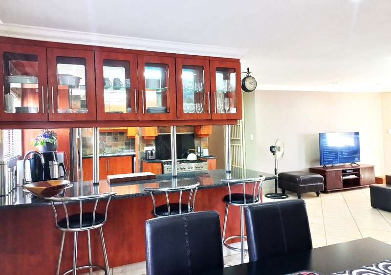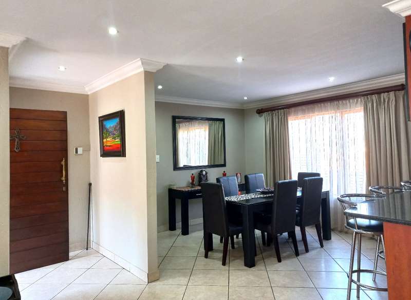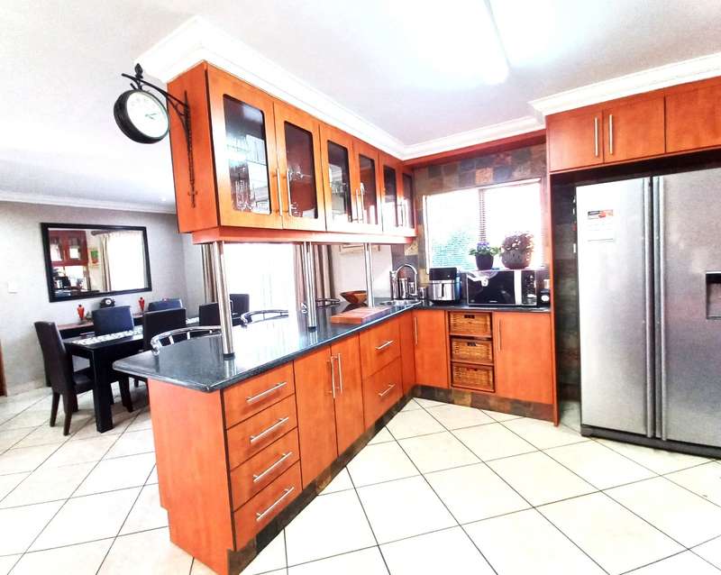 This exceptional 383m² family home is nestled in Rayton Estate, offering a combination of security, style, and space in a peaceful setting. Located just 20 minutes from Pretoria, Rayton is ideal for families who want to enjoy a quiet, community-focused lifestyle without sacrificing access to city amenities. Rayton itself is a well-established, family-friendly town featuring a medical centre, a primary school, several shops, and essential services. For older children, daily transport is available to all the leading high schools in Pretoria, making it an ideal choice for families with school-going children. The area is known for its safety, and the freedom it offers—where children can still play in the streets and neighbours greet one another by name. The home features FOUR SPACIOUS BEDROOMS AND THREE BATHROOMS, including two en-suites. The main bedroom is fitted with air conditioning, offers direct access to the garden, and includes a walk-in dressing area. A fourth bedroom, also en-suite with air conditioning, is privately situated and ideal for guest suite, or home office. A modern KITCHEN fitted with granite countertops, solid wood cabinetry, a gas hob, and a walk-in pantry connects seamlessly to the open-plan living and dining area. This LIVING SPACE extends to an enclosed PATIO complete with air conditioning and a built-in braai—perfect for entertaining in any season. The property also offers a dedicated STUDY with ample built-in cupboards and granite worktops, making remote work or home administration a breeze. Three tiled, automated GARAGES—two of which are extra-length—can comfortably accommodate up to six vehicles. Additional features include a staff toilet, STORAGE facilities, and a neatly maintained garden with a garden shed. This home comes equipped with practical and high-end extras that truly make a difference. A 14kVA GENERATOR with an automatic switch ensures uninterrupted power to the entire home. The property is also fitted with prepaid electricity, a heat pump, and insulated ceilings for year-round comfort. A 5000L WATER TANK with a pressure pump and a full irrigation system supports the garden and household needs, while fibre-ready infrastructure ensures fast and reliable internet. For added peace of mind, the home includes an ALARM SYSTEM, burglar bars, and Trellidoors throughout. APPROVED PLANS for an additional 56m² flatlet are included, offering potential for extended family living, rental income, or a private office. This property is more than just a house—it’s an opportunity to upgrade your lifestyle in one of Rayton’s most desirable and secure estates. Don’t miss the chance to make this peaceful, spacious, and well-equipped home your own. Contact PIETER today to arrange a viewing.