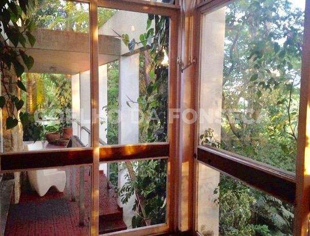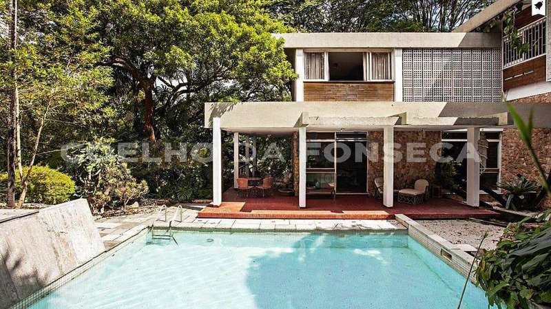 A casa ainda conta com piscina, churrasqueira, solarium e salão de festa circundados pelo exuberante jardim. Edícula com 2 suítes e lavanderia.