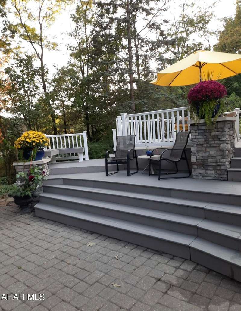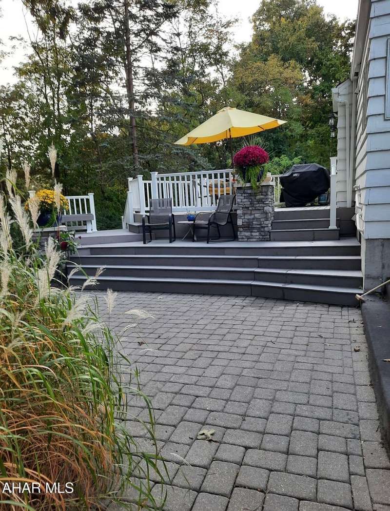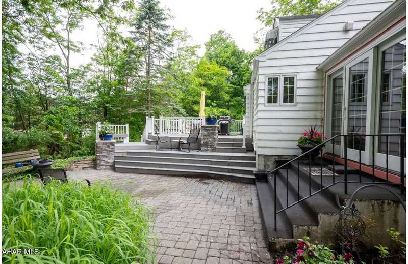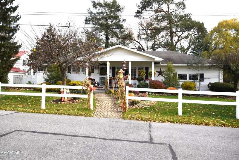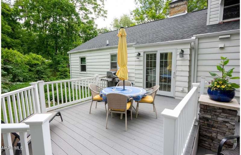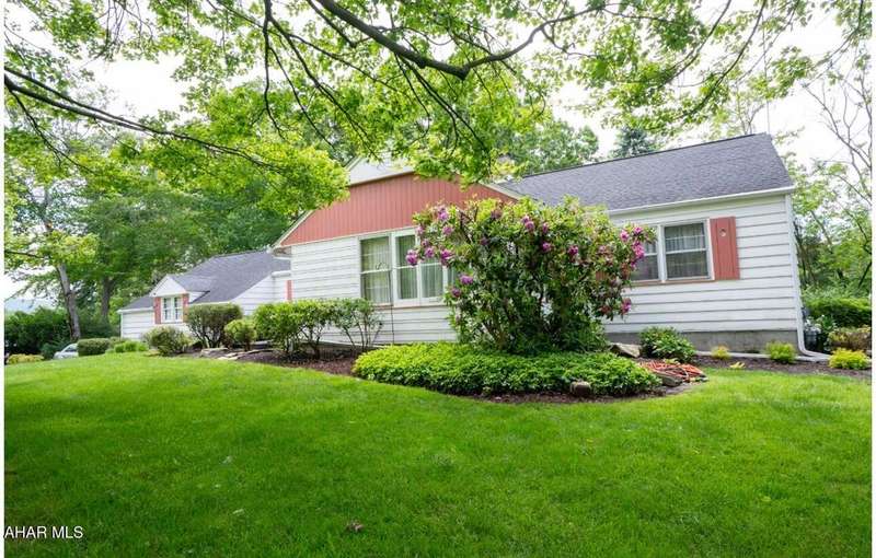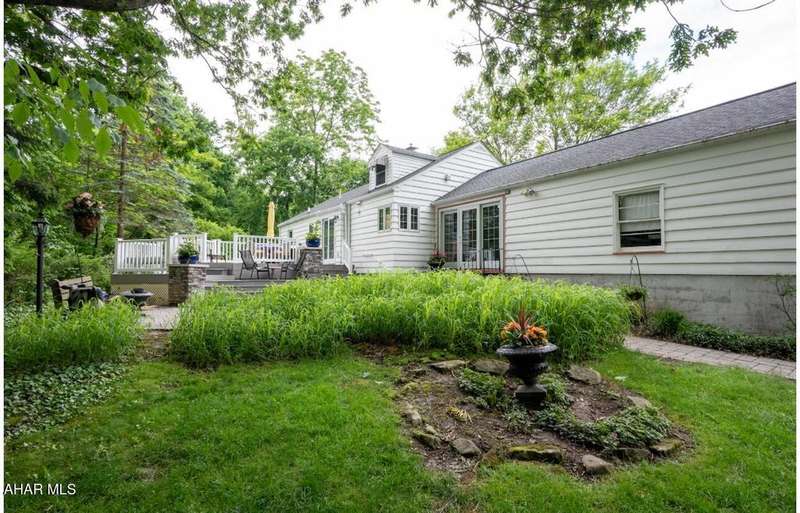 Nestled on .75 acres of land located on the edge of Altoona in Logan Township, this rancher combines quiet country charm with all of the conveniences of busy city life. In close proximity to Penn State Altoona, this property features low property taxes, public sewer and water services and a natural gas, forced hot air central heating and air conditioning system. In addition to 2 bedrooms and baths, the property has ample indoor and outdoor living space. The paved, tree-lined driveway leads to a 2 car garage, attached to the house by a unique breezeway with bead board ceiling and walls opening into a modern eat-in kitchen. The dining room features a beautiful antique chandelier and the living room has a working fireplace. Adding to the charm of this home are the corner windows in the kitchen, living and dining rooms as well as the original hardwood floors, all on the same level as the bedrooms. The full basement has a large finished room with built-in book selves and Wi-Fi, perfect for a home office, craft, tv or play room, while the unfinished side of the basement contains the laundry area and an open area with storage shelves lining one of the walls. There is additional storage space in the full, walk-up attic. Completing the uniqueness and charm of this property is its large outdoor living area with a multi level Trexx deck and a cobblestone paver patio, screened for privacy with beautiful landscaping and plantings. This hidden refuge is tucked onto the rear of the house and is ideal for entertaining large or small gatherings in a private and peaceful setting.