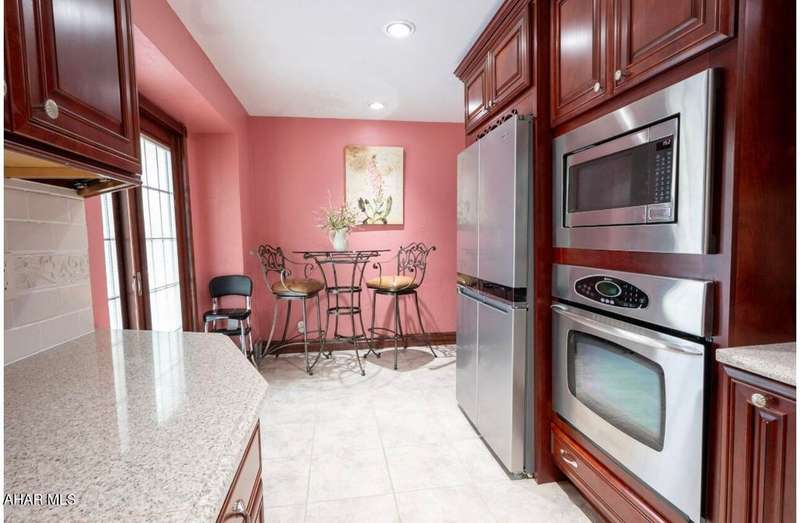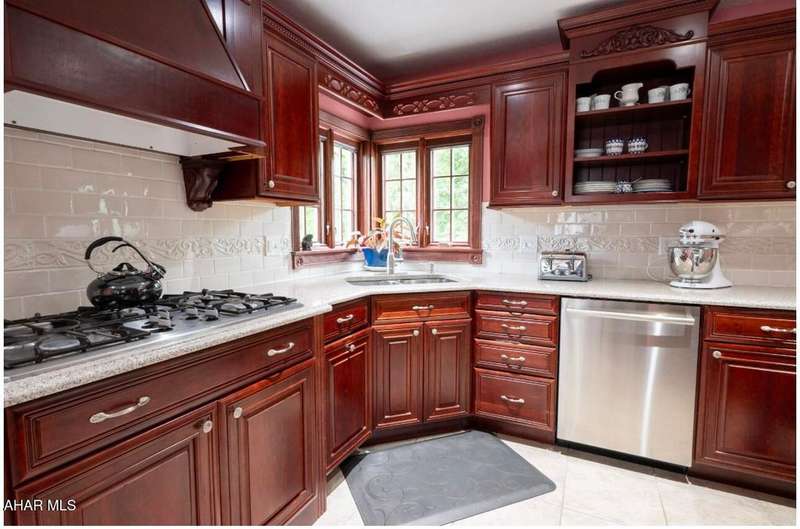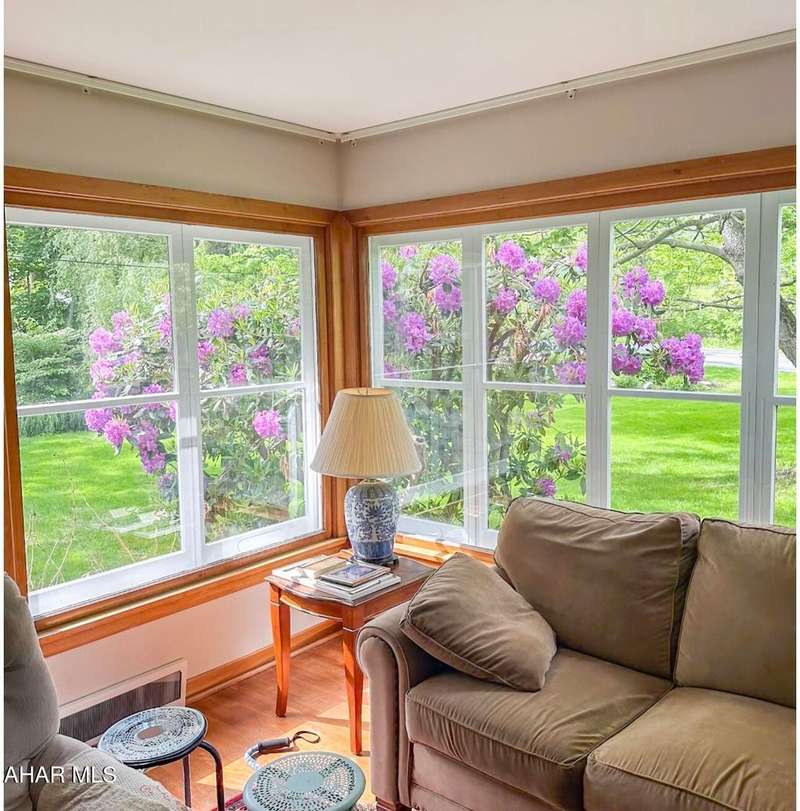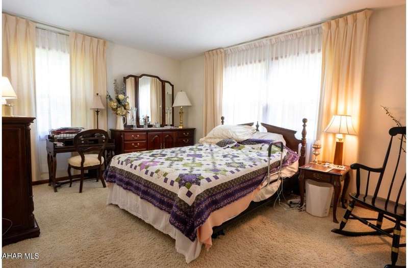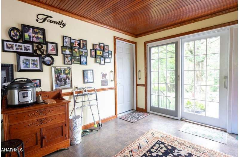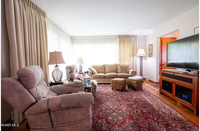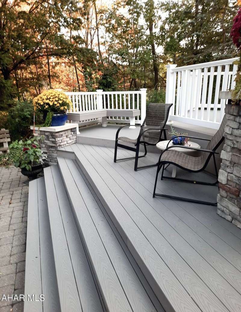 Nestled on .75 acres of land located on the edge of Altoona in Logan Township, this rancher combines quiet country charm with all of the conveniences of busy city life. In close proximity to Penn State Altoona, this property features low property taxes, public sewer and water services and a natural gas, forced hot air central heating and air conditioning system. In addition to 2 bedrooms and baths, the property has ample indoor and outdoor living space. The paved, tree-lined driveway leads to a 2 car garage, attached to the house by a unique breezeway with bead board ceiling and walls opening into a modern eat-in kitchen. The dining room features a beautiful antique chandelier and the living room has a working fireplace. Adding to the charm of this home are the corner windows in the kitchen, living and dining rooms as well as the original hardwood floors, all on the same level as the bedrooms. The full basement has a large finished room with built-in book selves and Wi-Fi, perfect for a home office, craft, tv or play room, while the unfinished side of the basement contains the laundry area and an open area with storage shelves lining one of the walls. There is additional storage space in the full, walk-up attic. Completing the uniqueness and charm of this property is its large outdoor living area with a multi level Trexx deck and a cobblestone paver patio, screened for privacy with beautiful landscaping and plantings. This hidden refuge is tucked onto the rear of the house and is ideal for entertaining large or small gatherings in a private and peaceful setting.