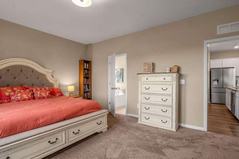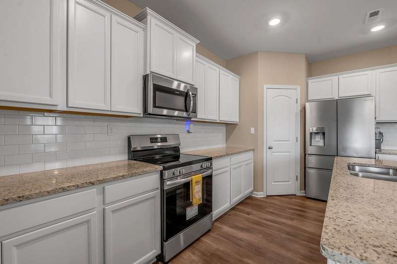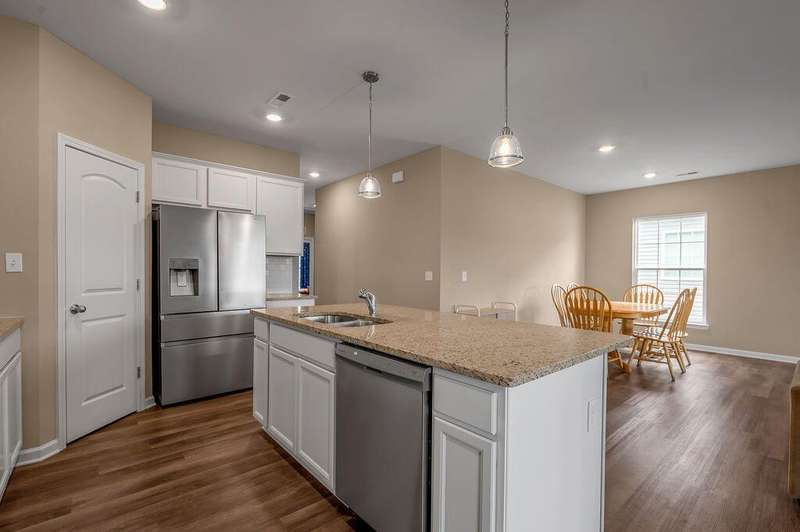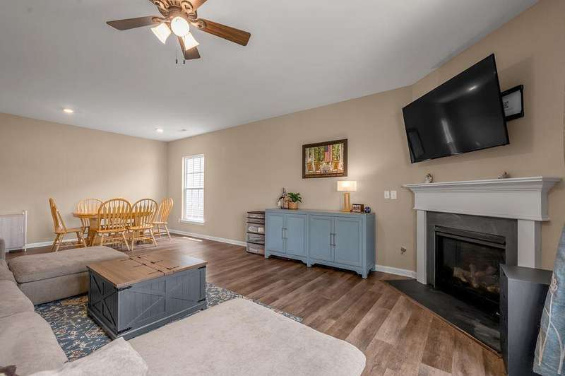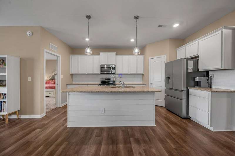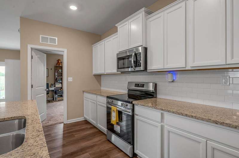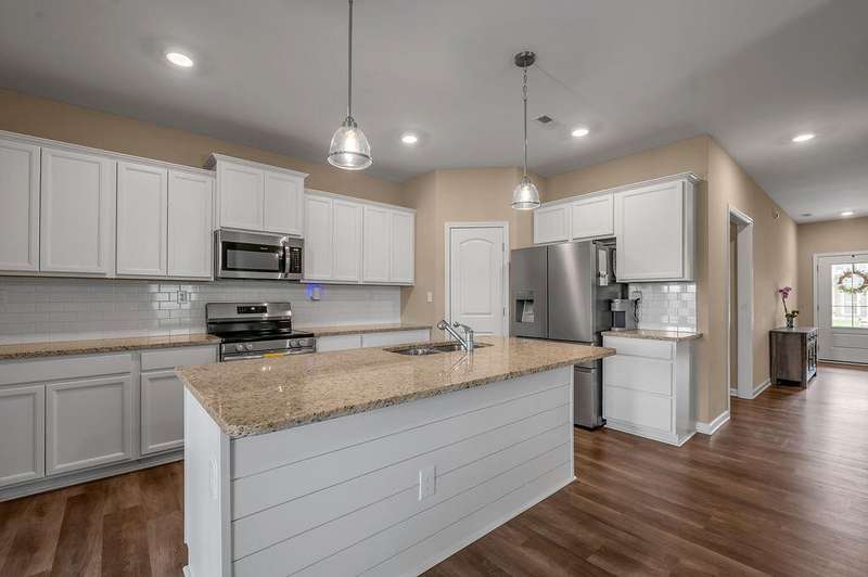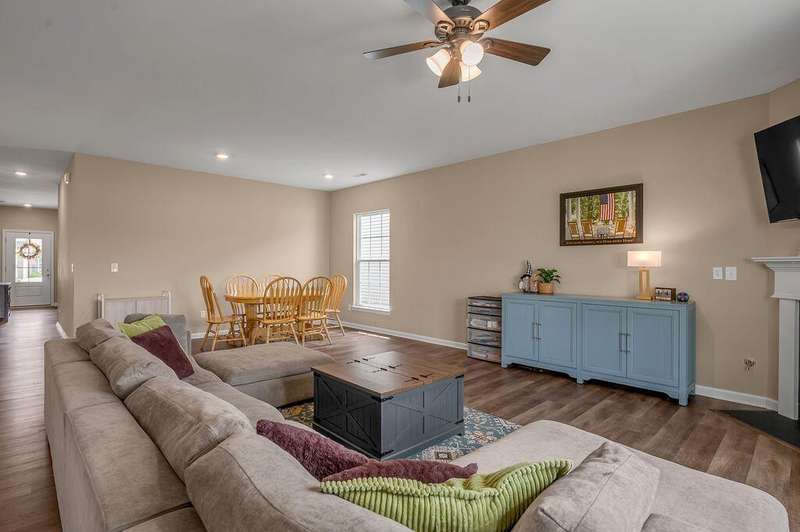 Priced below recent appraisal this almost new 3 bed 2 bath open layout ranch. This split bedroom design places two bedrooms and the hall bath off the entry and the primary bedroom suite at the rear of the home. The central kitchen offers both a breakfast area and countertop dining at the island, and opens to the family room. Granite kitchen counter tops with stainless steel 50/50 under-mount sink and full back splash. The primary bedroom suite includes a bedroom with large closet and spacious bath with tub/shower, window, and linen storage. Raised vanities in baths. The entry from the garage is a mudroom that adjoins the utility room on one side and the living areas of the home on the other. Enjoy the view while sitting on the 12'x10' covered patio.