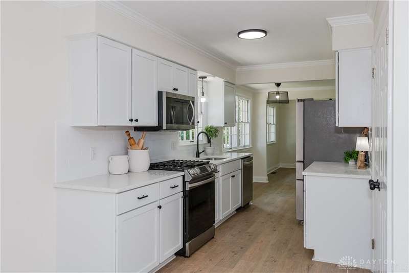 You'll want to see this dream home today! 4 bedrooms, 2.5 bathrooms- this home has been fully renovated from top to bottom. Offering 1,860 sq. ft. of modern living space that you'll completely fall in love with! Step inside the foyer to discover brand new flooring, fresh paint, stylish lighting, and sleek finishes all throughout. The kitchen shines with stainless steel appliances, quartz countertops, and plenty of space for cooking-also, open to a breakfast room and family room making it the perfect place for entertaining. Upstairs you'll find 2 full, renovated bathrooms and 4 spacious bedrooms. Outside, you'll find a fenced-in backyard with a playset making it the perfect space for kids and pets. The home also features a 2-car garage with storage. Great location, near WPAFB, Wright State University, I-675, Kroger, local parks, and Fairborn's brand new schools! Easy to see, schedule a tour today!