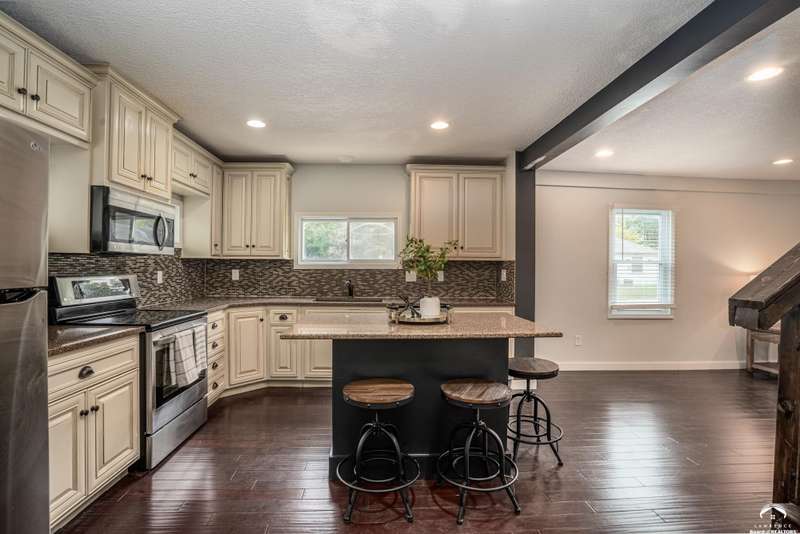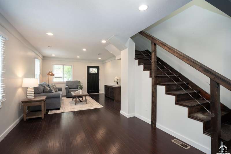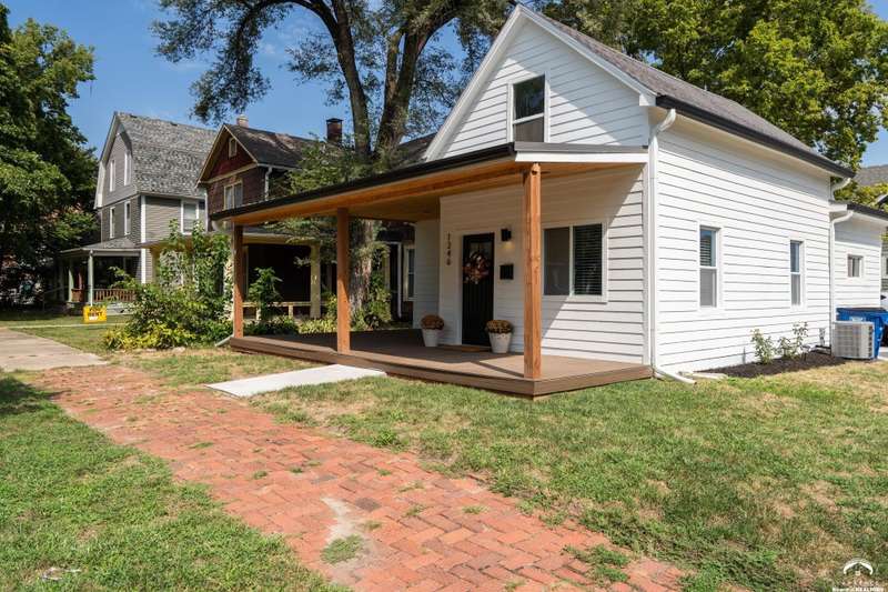 Perfectly positioned between the University of Kansas and downtown Lawrence, this fully renovated 3-bedroom, 2-bath home offers charm, convenience, and modern comfort. Updated with fresh interior and exterior paint throughout and stylish finishes. The main-level bedroom features its own private bathroom—ideal for flexible living arrangements or guest accommodation. Upstairs, two additional bedrooms provide plenty of space for family, roommates, or a home office. Recent improvements also include new siding, HVAC, expanded front and back decks, flooring and stainless appliances. With its move-in-ready condition and unbeatable location, this property is a fantastic option as a primary residence or a smart college investment opportunity. Don’t miss your chance to own a beautifully updated home just minutes from KU and the vibrant downtown scene!