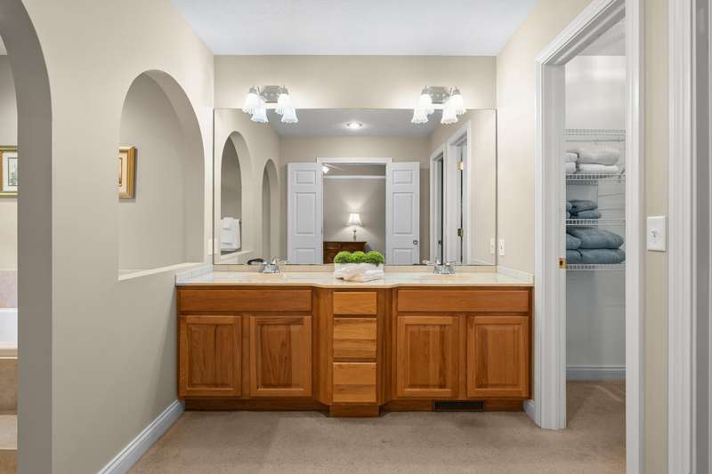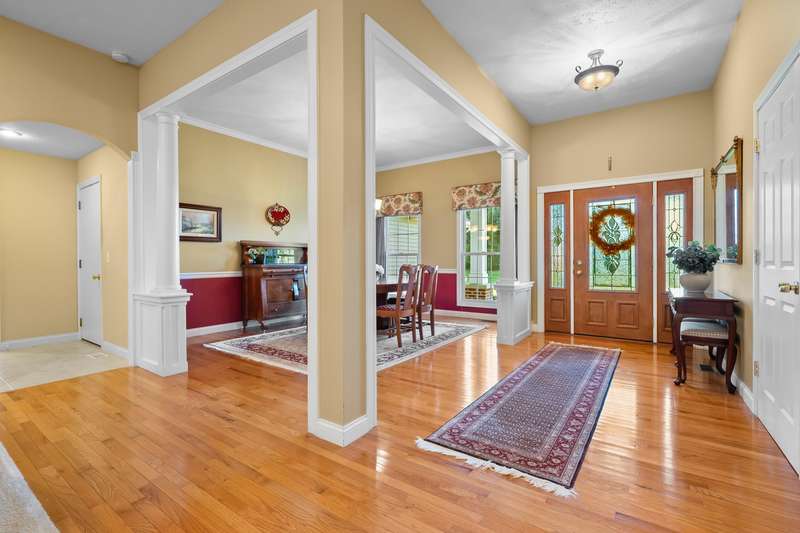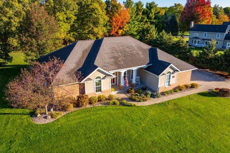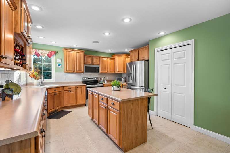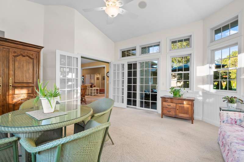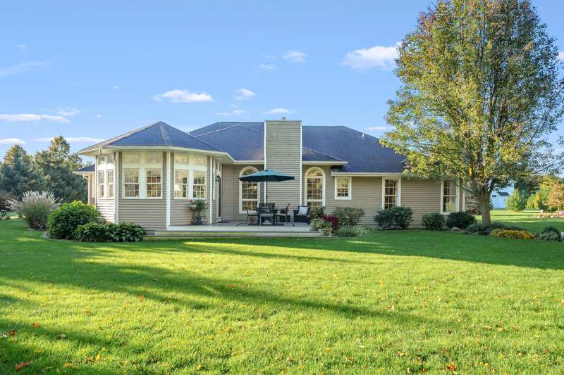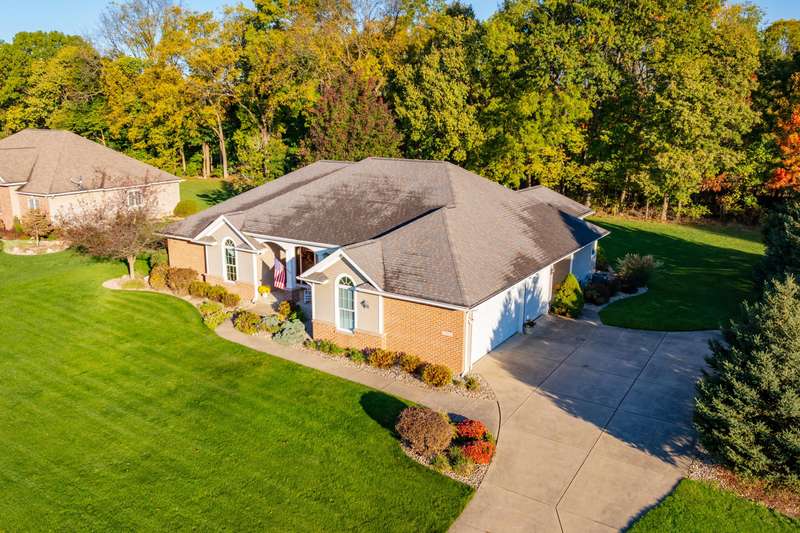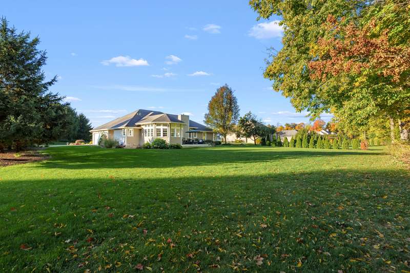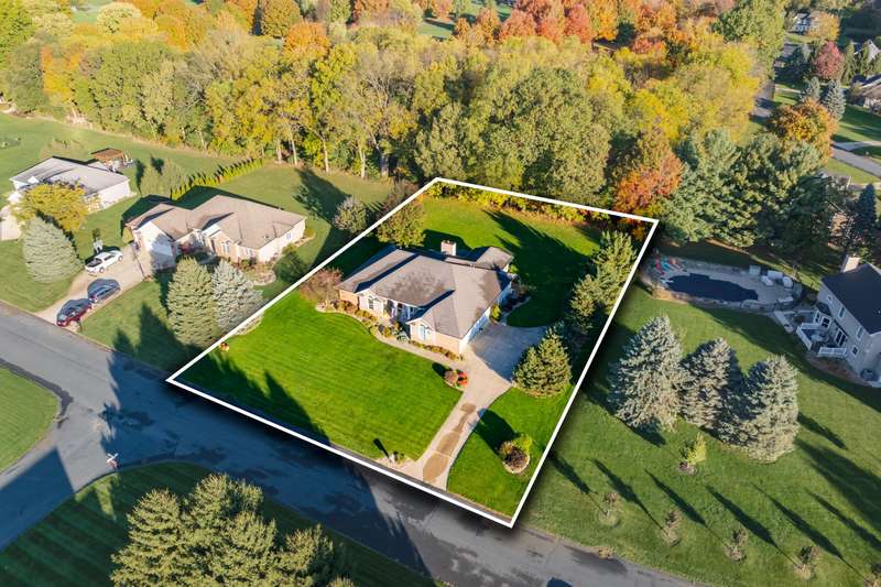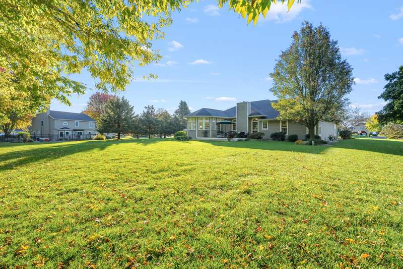 Open house Cancelled. Property is Pending. Beautiful Ranch home on over a 1/2 acre private lot backing up to the Olde Mill Golf Club. Enjoy main floor living with this stunning 4 bedroom 3.5 bathroom quality built home. Vaulted ceilings, arched windows, architectural pillars and crown molding. The cooks kitchen offers all NEW SS appliances, center island, pantry and wine rack. You will spend your mornings and evenings in the custom sunroom being refreshed in nature all around you! The light and bright primary is complete with ensuite bath with soaker tub, double vanity and amazing closet space. Two additional bedrooms and 2nd full bath create lovely space for all. The front entry is elegant, bringing you into the Formal DR room and LR with gas fireplace flanked by windows flooding the area with light. The amazing custom built bookcases add elegance to this fabulous gathering area. The back door offers a mudroom space along with a main floor laundry and 1/2 bath. The LL is fabulously complete with a large bedroom with an amazing designer walk in closet. The huge craft room could be used equally well as a second kitchen or home office. The 3rd full bath with no step shower and full vanity create a space that would serve well as a mother in law suite. The front porch is a welcoming place to rock and relax. Underground sprinkling and lovely landscaping create beautiful curb appeal. The NEW composite deck off of the sunroom offers yet another area to recoup and refresh. Three car garage. This property truly has it all!