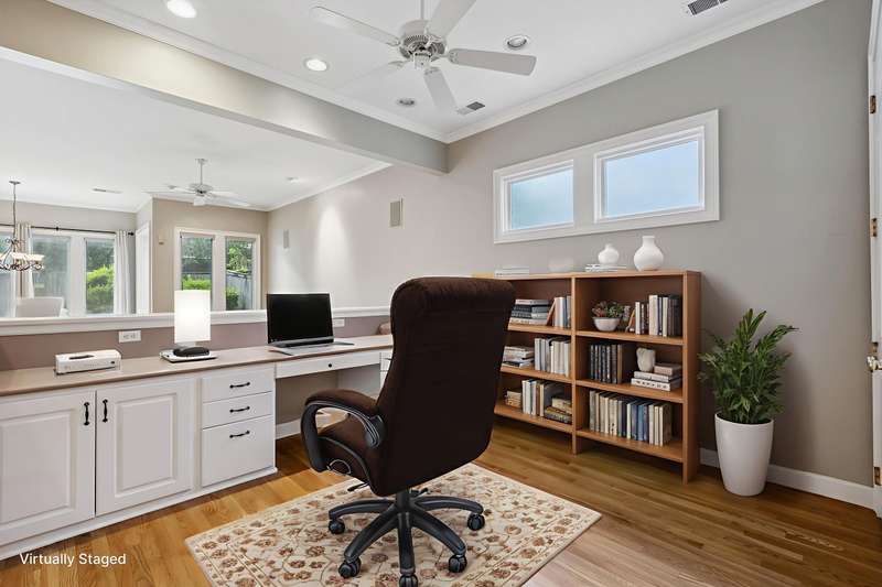 Realistic and motivated Seller just reduced again! Absolutely unique, open floorplan down! Kitchen w/25 Cabinets, 11 Drawers + Walk-In Pantry and Breakfast Bar opens to Keeping Room and adjacent area for Kids, Studio or Work Stations, like the 2 CPAs who lived here! Hardwoods, 10ft high smooth ceilings down, walls of windows to make it as light and airy as you’ll ever find! Screened Porch overlooks rear grounds. Primary Down and Two large Bedrooms up with two HUGE floored attic areas, one of which is perfect for expansion into another Bedroom with nearby Bath.
