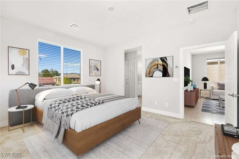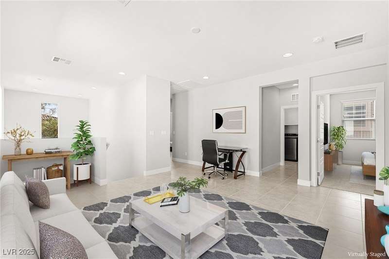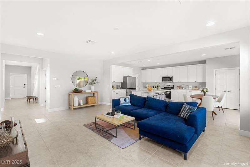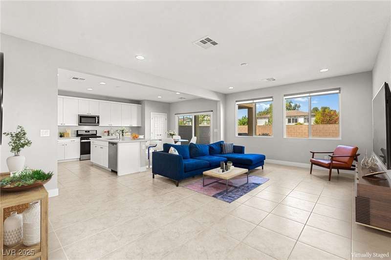 Situated in a gated sub-association within the desirable Southern Highlands community, this charming two-story home offers 3 bedrooms, 2.5 bathrooms, and a generous upstairs loft—ideal for a second living area, office or playroom.Step inside to a welcoming foyer with high ceilings and tile flooring throughout the main level.The open-concept layout seamlessly connects the kitchen, dining, and living areas, creating a perfect space for entertaining.The kitchen features quartz countertops, a pantry, and stainless steel appliances, all of which convey with the property.The master suite is thoughtfully separated from the other bedrooms and features a private bathroom with dual vanities and shower.A second bathroom accommodates the remaining bedrooms and includes a tub/shower combo and dual sinks.The backyard provides a large covered patio and low-maintenance landscaping—ideal for relaxing or outdoor gatherings.Enjoy all the conveniences and charm that Southern Highlands living has to offer!