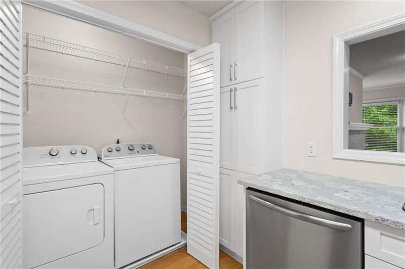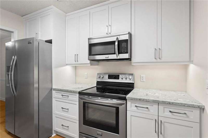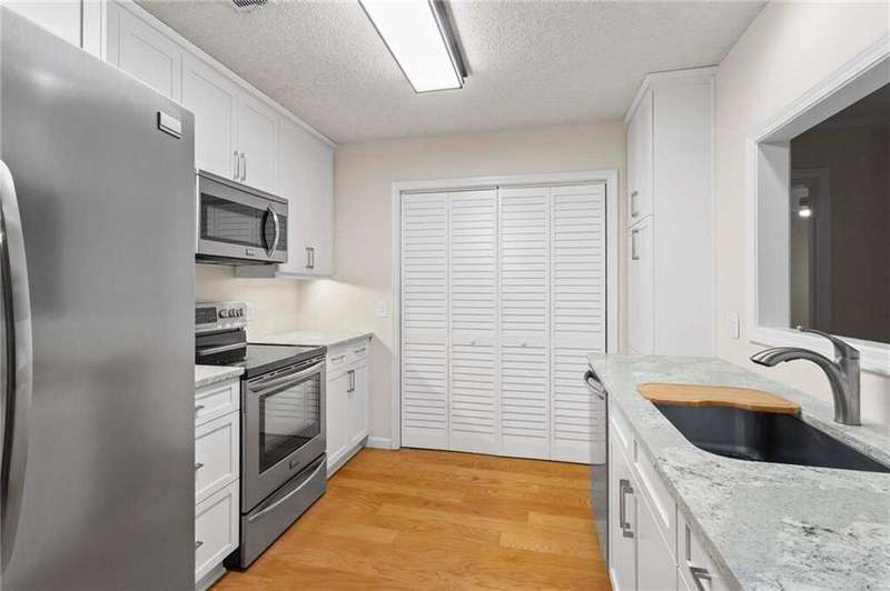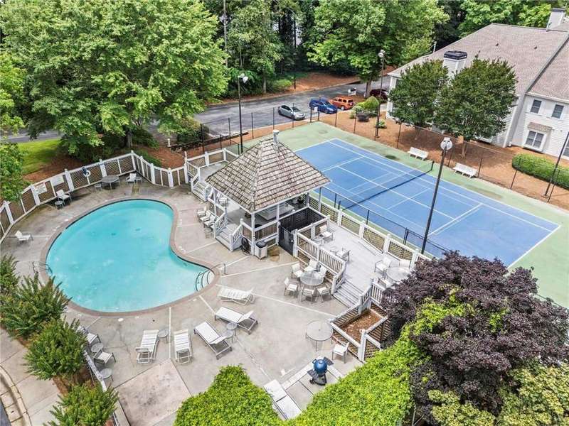 Welcome home to the perfect blend of style, comfort, and convenience! This beautifully updated 2-bedroom, 2-bathroom condo is move-in ready and ideally situated in a prime Sandy Springs location. Located on the second floor, this light-filled home features wood flooring throughout, fresh modern lighting, and a smart, open-concept layout that makes daily living and entertaining a breeze. The renovated kitchen shines with stainless steel appliances, quartz countertops, and stylish new cabinetry. The fireside living room flows seamlessly into the dining area and a bonus sunroom-flooded with natural light and perfect for a dedicated home office, cozy reading nook, or your personal plant haven. Step out onto your private covered patio to enjoy peaceful mornings or unwind at the end of the day. The spacious primary suite features two closets and a fully renovated ensuite bath with quartz counters and modern finishes. The secondary bedroom is privately positioned and also offers a fully updated bath-ideal for guests or roommates. Enjoy thoughtful upgrades throughout, including: new light fixtures, full-size washer and dryer, wood floors throughout, quartz countertops in kitchen and baths, bonus room/sunroom for office or flex space and private covered patio. All appliances remain with the home including washer and dryer. Perfect location close to it all. Quick access to all highways, Sandy Springs/North Springs MARTA stations, shopping, grocery stores and dining. The community offers amenities, including a pool, tennis courts, and low HOA fees that cover trash removal, termite protection, and exterior maintenance. Whether you're commuting, exploring the city, or simply enjoying a relaxing day at home, this condo checks every box! **Seller offering $1500 towards buyer's closing costs.