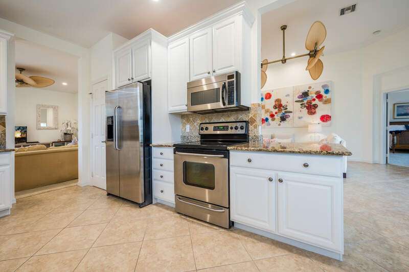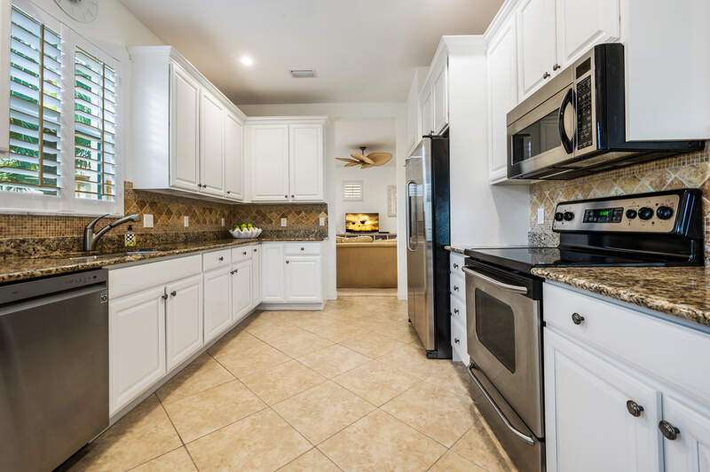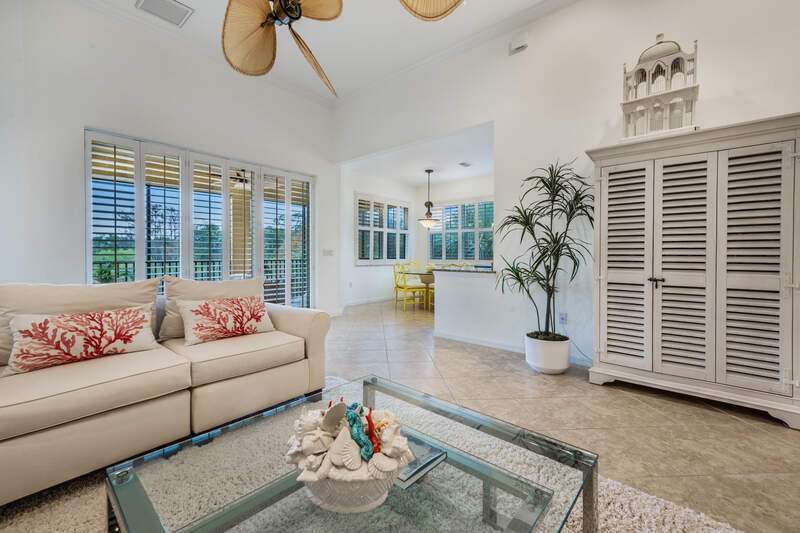 Step into this beautifully furnished 3-bedroom, 2-bath carriage home with a den and attached one-car garage. This highly sought-after end unit boasts a bright, open floor plan with a modern kitchen featuring white cabinetry, granite countertops, and a full suite of stainless steel appliances. Plantation shutters add elegance throughout. Enjoy your mornings on the spacious screened lanai overlooking peaceful views of the 12th tee. Life at Vasari Golf & Country Club means more than a home-it's a lifestyle. Stay active at the fitness center, play golf, tennis or bocce ball, or relax with fine dining and casual outdoor meals. Ideally located near pristine beaches, world-class shopping, RSW Airport, entertainment, and sports facilities, this residence offers the very best of Florida living.