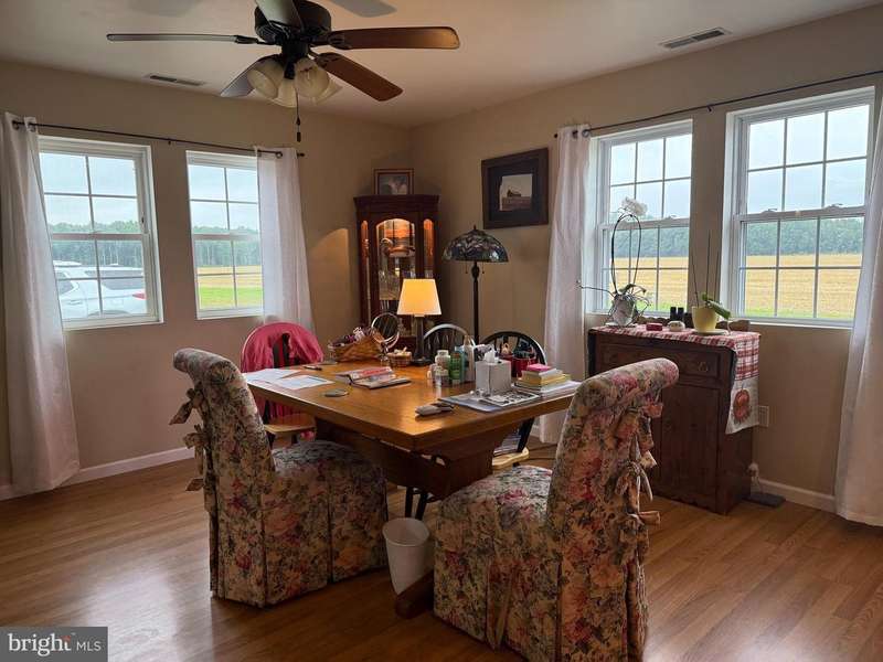 Huge Price Improvement!! Surrounded by farmland is what you will find at this spacious 3 bedroom, 2 bath home. Small fenced in area for small pets. Listen to the rain on the tin roof. Galley kitchen opens into the dining area that is open to the large living room. Primary bedroom located on the first floor with an extra-large bathroom. Upstairs bedrooms have mini split systems for heating and air. Plenty of parking for any large vehicles or RV's
