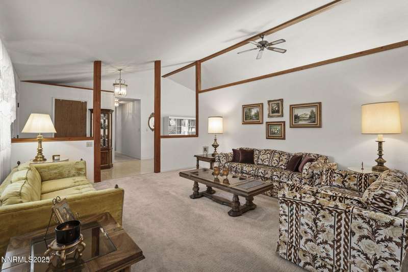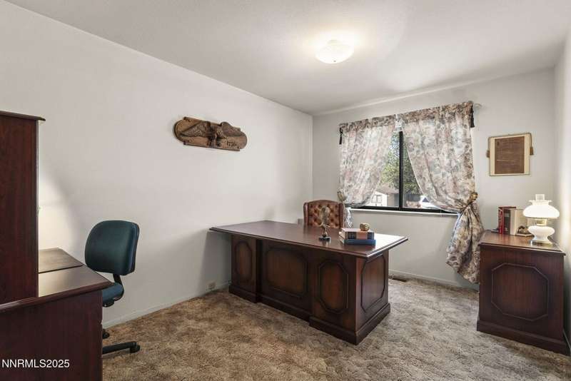 This lovely single level home, located in the desirable Mogul Mountain Highlands in close proximity to Mogul Park and the NV/CA border is ready for a new owner and their personal touch. The large .67 acre corner lot has loads of possibilities with room for a shop, second garage, or potential future ADU. Vaulted ceilings, two dining areas, and separate living and family rooms allow plenty of room to entertain. There are three bedrooms and a private office along with the two bathrooms. With a little vision this home could be the talk of the neighborhood!