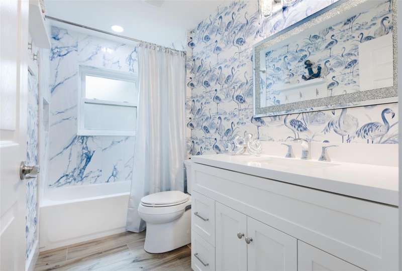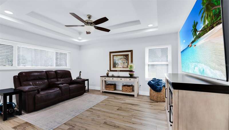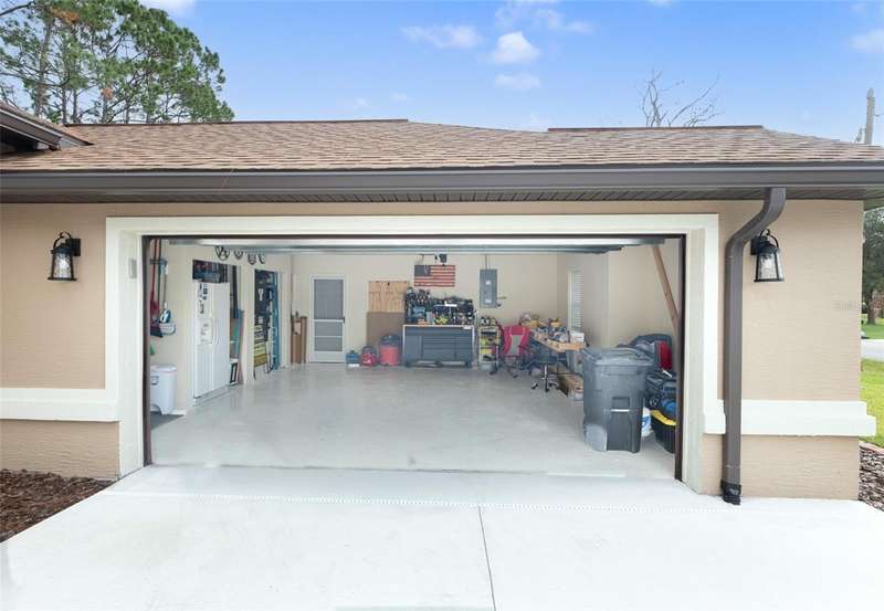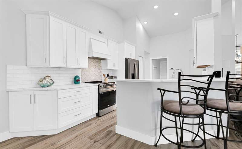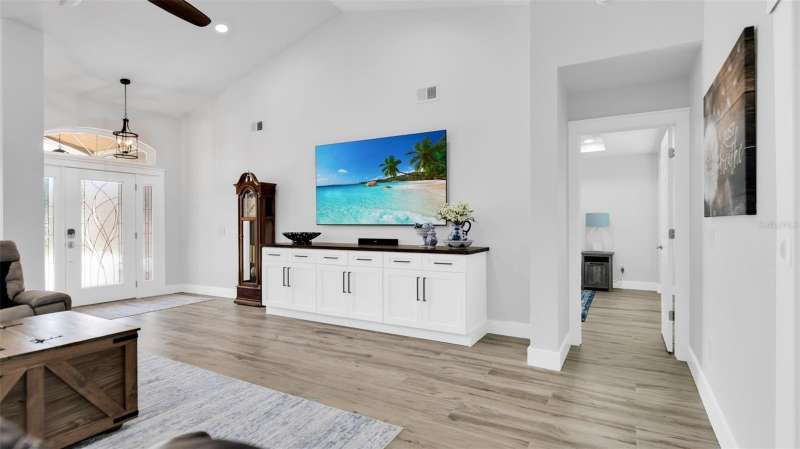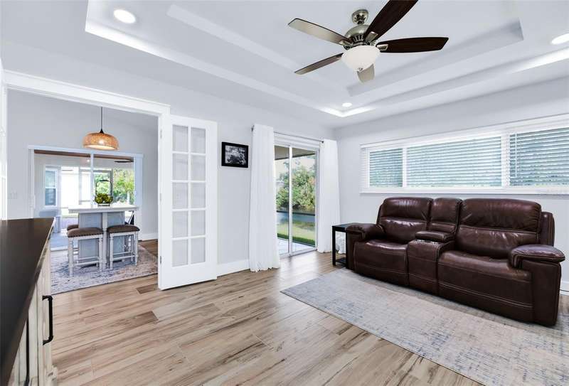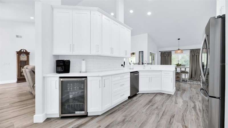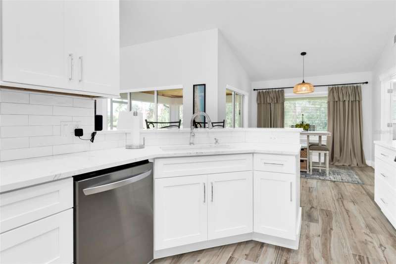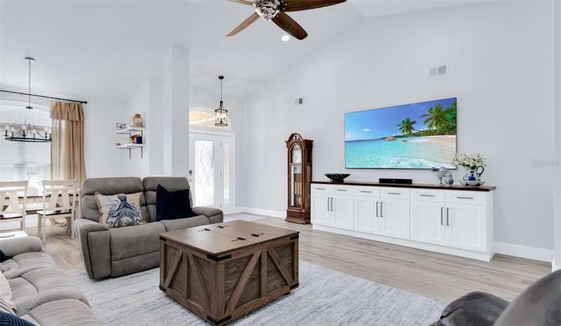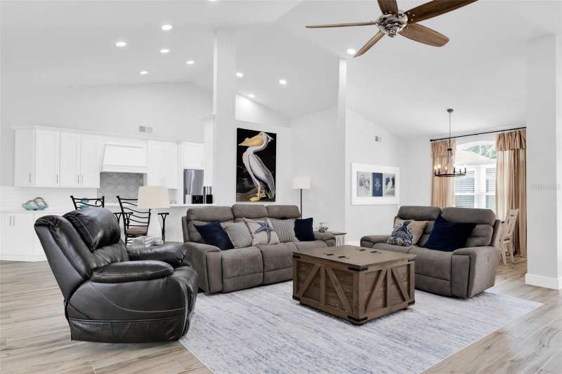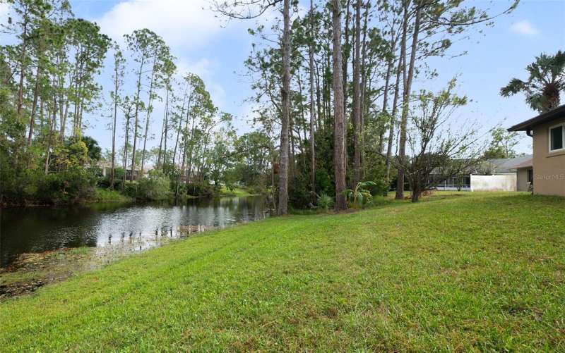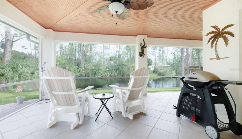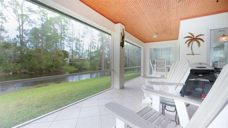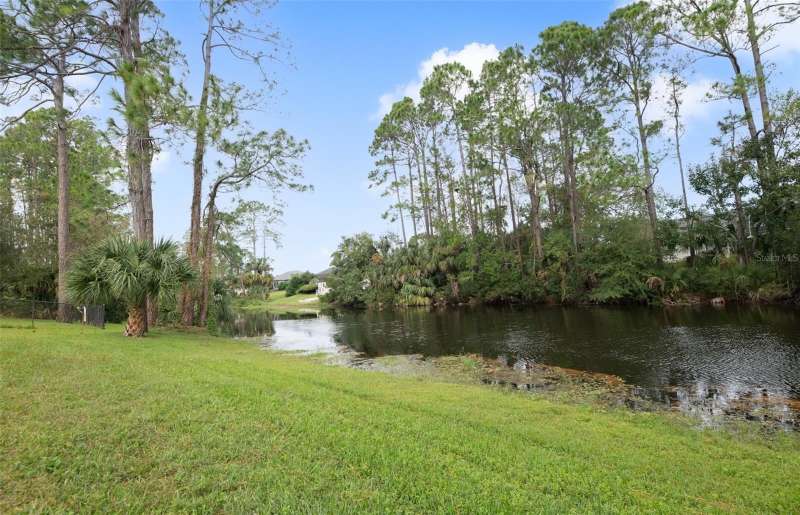 Picture yourself in a newly renovated home situated on 80 feet of freshwater canal with nature as the backdrop. In addition to the fantastic views, this home, situated in the well-established Pine Lakes community was renovated in 2023/2024 with over $120,000 in upgrades; including porcelain tile throughout, double pane windows, exterior and interior paint, kitchen/bathroom cabinets, quartz countertops, new driveway, plus many other upgrades. The home features a split plan with 3 bedrooms and 2 baths, along with an added bonus den/office space. The fully renovated master bathroom features a large walk-in shower with new glass surround, deep soaking tub and separate toilet area with his/hers sinks and his/hers walk-in closets. The guest bedrooms have large closets and the guest bathroom has a new vanity sink and tile shower. The fully renovated kitchen features new shaker style cabinets, backsplash, quartz countertops, new appliances with a breakfast nook off to the side. The side load garage, with new garage door, is oversized with a door leading to the side yard. The seller is also providing a 1 year home warranty. Both the Roof and A/C were updated in 2020. Enjoy the Palm Coast lifestyle on the expansive outdoor screened lanai overlooking the beautiful waterway!