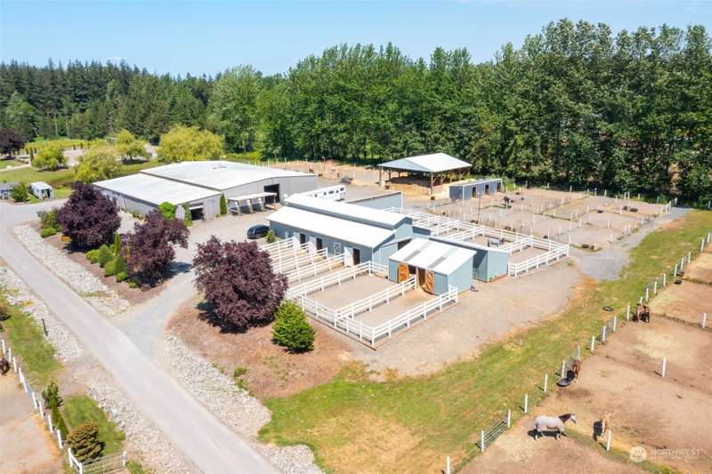 Welcome to Burkwood Farm, currently a Hunter Jumper equestrian facility on 18 acres located between Blaine & Lynden WA. 36 stalls total, multiple stalls w/runs, 2 barns, 120'x60' covered indoor arena & 250'x175' outdoor arena, fenced & cross fenced. Loafing sheds with pasture space, separate hay storage, covered shaving bin, heated indoor & outdoor wash rack, 2 tack rooms +grain room. 12 large pastures including 8 gravel turnouts for winter months & 5 grass paddocks for summer months. Outdoor track & ponds. Grand home offers 4+bedrooms, updated kitchen & multiple living areas. Paved driveway & gated entry for added security. Private & serene farm quietly tucked away S. of Vancouver BC & N. of Seattle with close I-5 access.