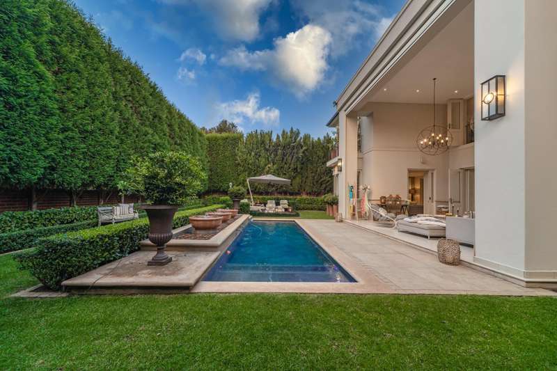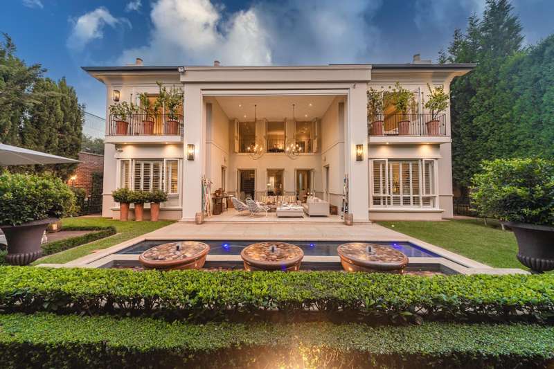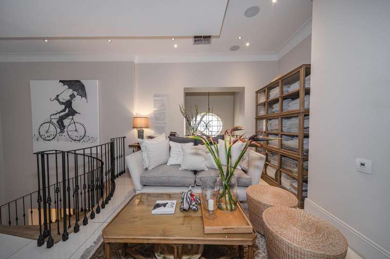 Step into a world of timeless sophistication in this exclusive Hyde Park residence. This north-facing, architect-designed cluster home where every detail reflects effortless luxury and refined living. Nestled within a private estate of only eight homes on a secure, boomed road with 24-hour armed guarding, this 737m?? masterpiece offers an unrivalled lifestyle in one of Johannesburg?ÇÖs most prestigious addresses. From the moment you arrive, wrought iron gates open to a beautifully landscaped forecourt, setting the tone for what awaits inside. A dramatic double-volume entrance hall, with porcelain flooring and bespoke chandeliers, welcomes you into expansive reception rooms that flow seamlessly to the outdoors. Elegant living and dining areas, a private study (or optional fifth suite), and gas fireplaces framed by custom finishes create the perfect balance of grandeur and warmth. At the heart of the home lies a designer kitchen, a chef?ÇÖs delight with a waterfall granite island, Smeg appliances, a cold room, a separate scullery and laundry area and a charming courtyard for informal al fresco dining. This is a home designed for both easy family living and sophisticated entertaining. The outdoor living spaces are truly exceptional. A deep covered veranda with motorised blinds overlooks manicured gardens, fountains, and a heated swimming pool, creating a tranquil retreat or the perfect backdrop for glamorous gatherings under twinkling chandeliers. Upstairs, four luxurious bedroom suites each offer a private haven. The main suite is a showstopper, complete with a designer dressing room, oak flooring, and a spa-like bathroom featuring a freestanding bath and walk-in shower. Every modern convenience has been considered: a lift, underfloor heating, piped air conditioning, Control4 home automation, solar hybrid heat pump, and full backup power. Security is of the highest standard, with 24 hour armed guards, ClearVu fencing, cameras, sensors, and armed response. Additional luxuries include a full staff cottage, double garage with GarageTek system, and ample guest parking. This home is more than an address. This is a lifestyle statement of elegance, privacy, and enduring value. Perfectly located in Hyde Park, it offers both sanctuary and convenience, moments from Johannesburg?ÇÖs finest schools, shopping, and dining. Key Features: 4 en-suite bedroom suites Heated swimming pool & landscaped gardens Expansive entertainment veranda with chandeliers Designer kitchen with cold room & scullery State-of-the-art security and home automation Lift, generator, inverter & water backup Full staff cottage & double garage Experience Hyde Park living at its finest ?Çö where luxury, security, and serenity converge.