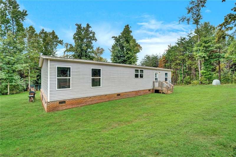 Let me tell you about a hidden treasure in Dacusville SC that feels like a storybook setting. Tucked away on over five acres, this modern farmhouse style mobile home is set on a permanent foundation and gives you all the privacy you could ever dream of. Built in 2021, it is almost new and surrounded by mature trees that make you feel like the world just slows down the moment you pull into the drive. Inside, the open floor plan makes everyday life feel light and airy. The kitchen is the heart of the home with a big island where you can spread out dinner or pull up a stool for coffee and conversation. The farmhouse sink sits under the window and somehow just makes washing dishes feel sweet. Cabinets seem endless and the built-in coffee bar is a favorite detail. Every finish leans into that modern farmhouse charm you see in magazines. The split floor plan gives the primary bedroom its own retreat. The private bath is oversized with a soaking tub that calls for a bubble bath at the end of the day, a walk-in shower that feels like a spa, and a walk-in closet big enough to keep everything organized. The guest bedrooms are plenty spacious and the laundry room is just as practical as it is large. The land is really what makes this property shine. The seller has fenced the entire property so it is ready for pets, livestock, or just keeping your little slice of the world secure and private. Over five acres gives you endless room for chickens, gardens, or just roaming space if you want to stretch your legs. The trees provide shade and seclusion that makes the whole place feel like your own little world. You could spend an afternoon hiking the nearby trails or take a quick drive to the lakes and mountains that surround Dacusville. Living here means weekends can be spent fishing, boating, or exploring waterfalls and then coming back home to your quiet piece of countryside. Life in Dacusville has a way of mixing small town charm with outdoor adventure. This home captures all of that and wraps it up in a modern farmhouse design that feels both cozy and stylish. It is the kind of place where mornings start with coffee on the porch listening to birds and evenings end under the stars with nothing but the sound of crickets.
