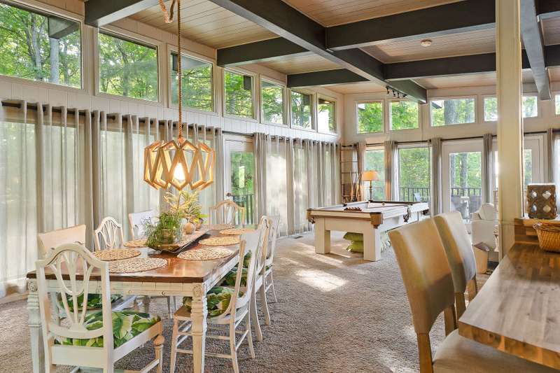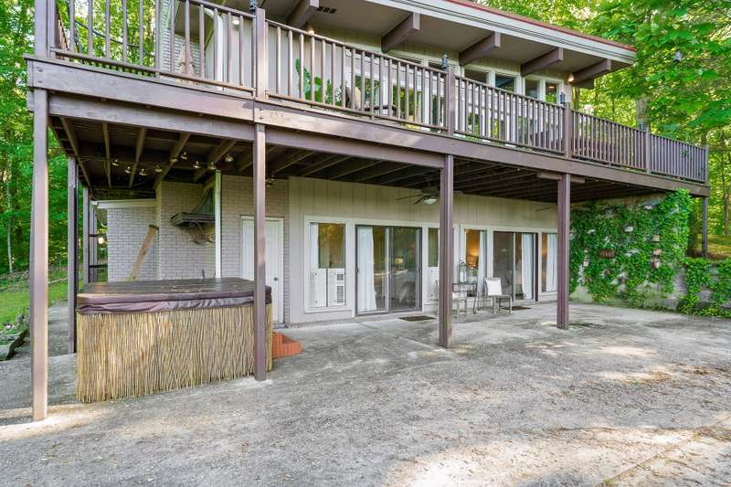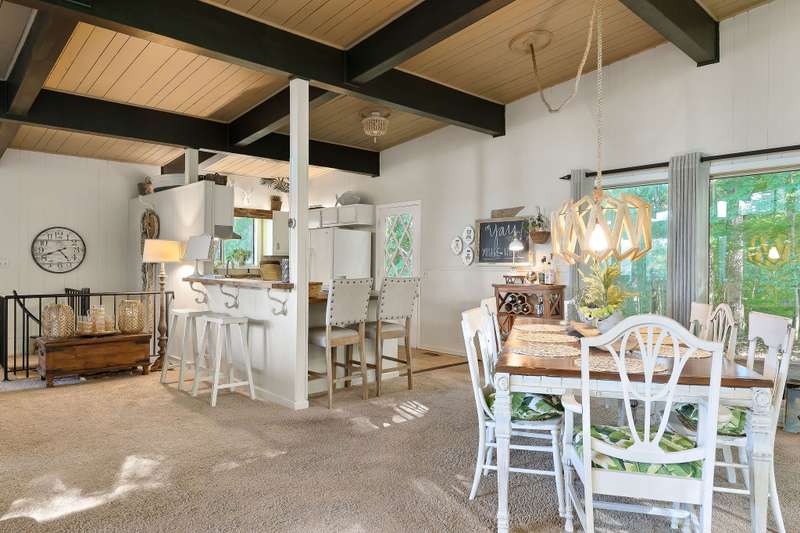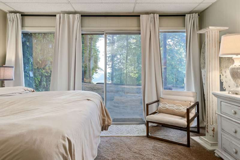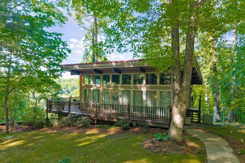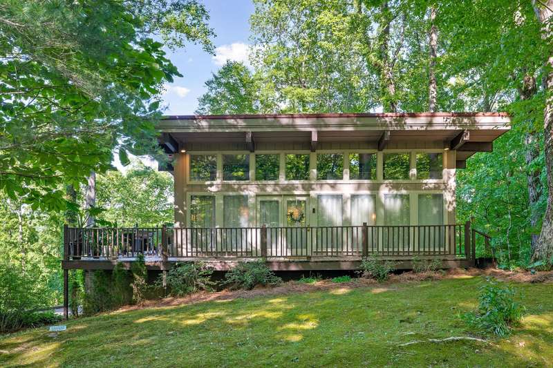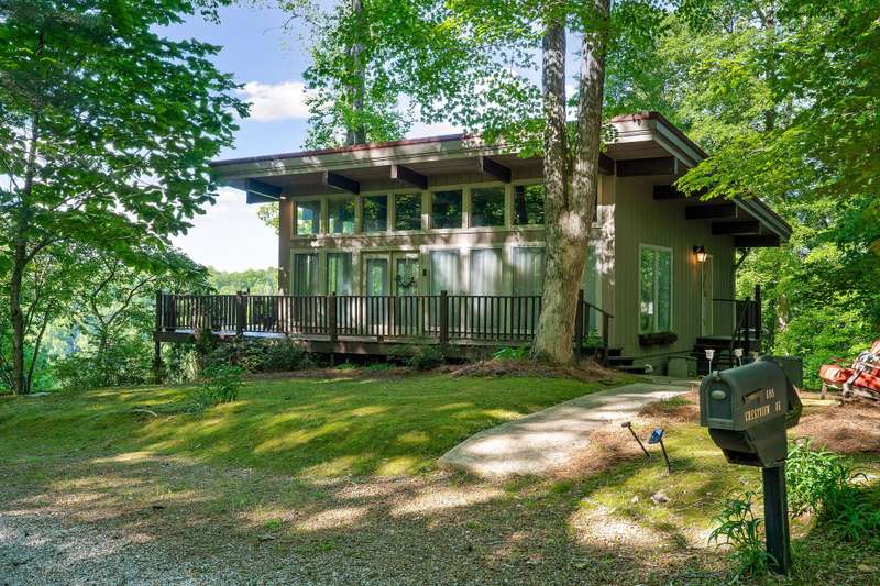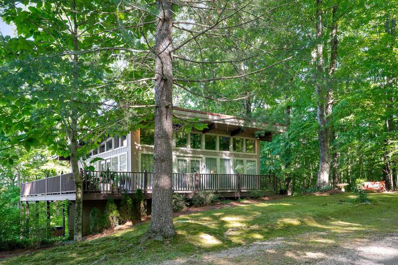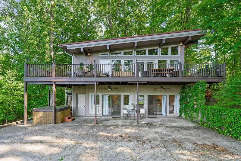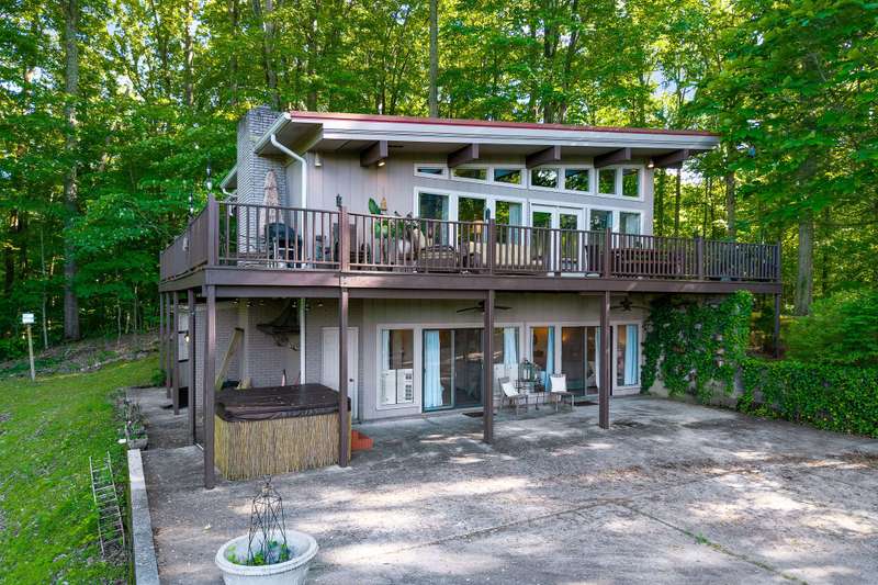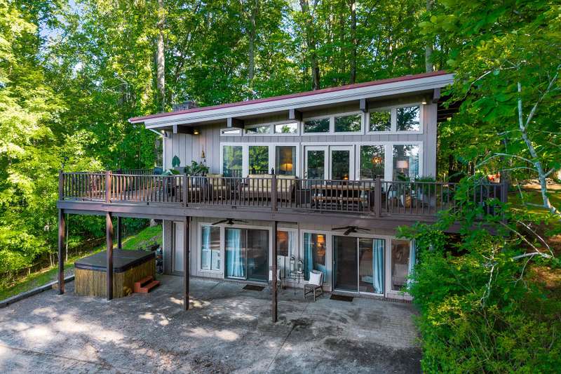 giving a tip of the hat to late mid-century architecture, this lakeview home has a main level open floor plan with gas fireplace, vaulted ceiling with exposed beams, abundant natural light from floor-to-ceiling windows, wrap-around deck, paved drive, hot tub, plumbed for outdoor shower, convenient to ragland bottom + sligo marina, homeowners in the community can opt into the homeowner association and have access to the community pool. sits on a huge acre plus lot (original lot 206 but also includes 207 + 208). furnishings negotiable.