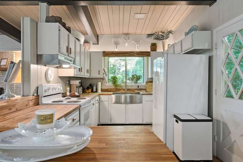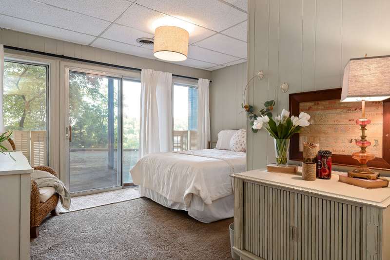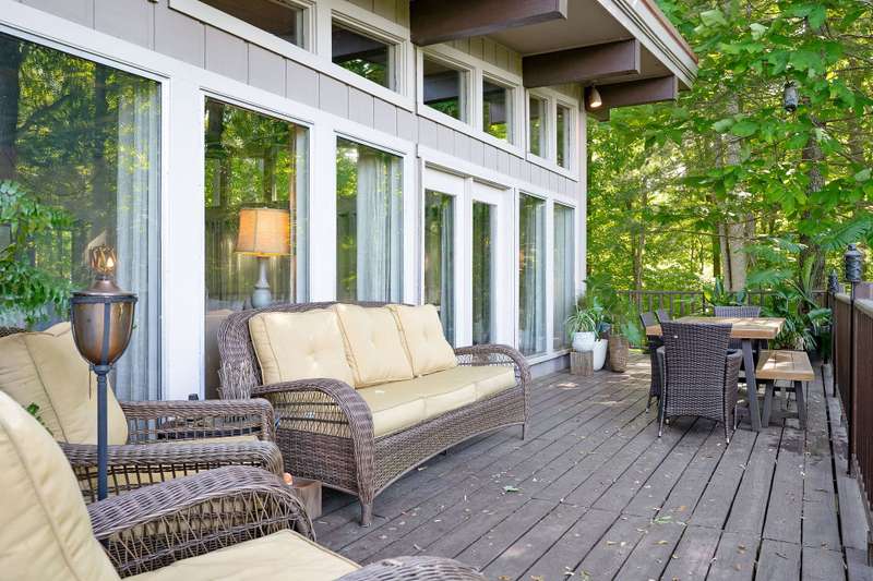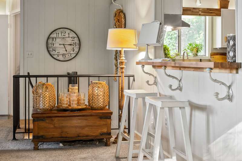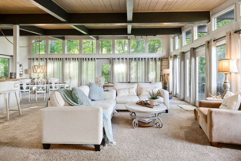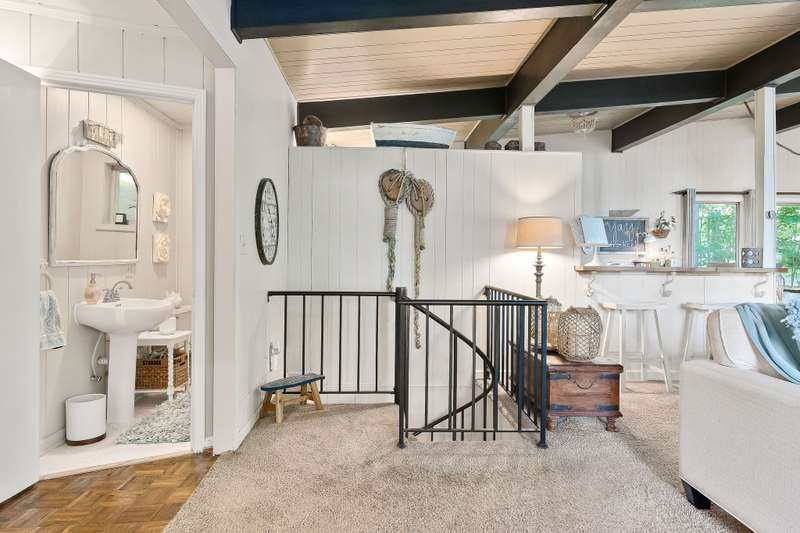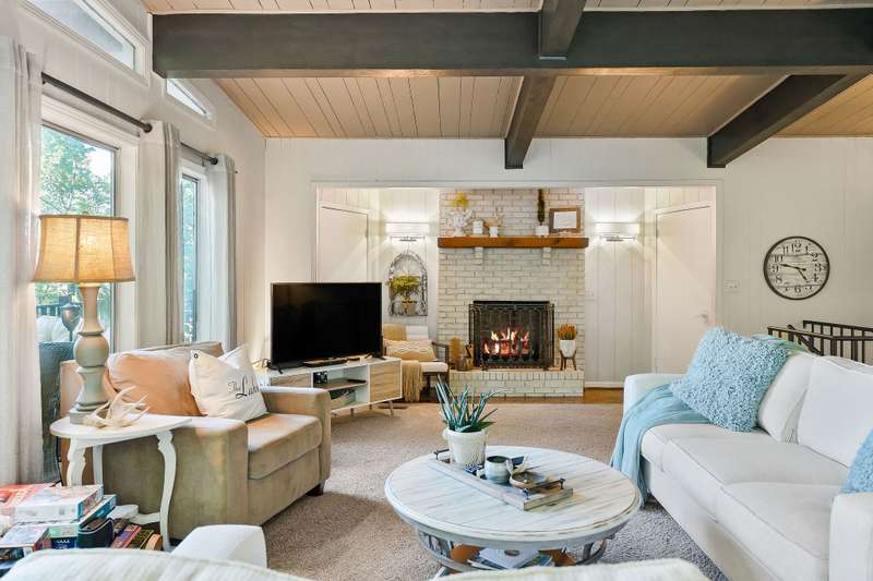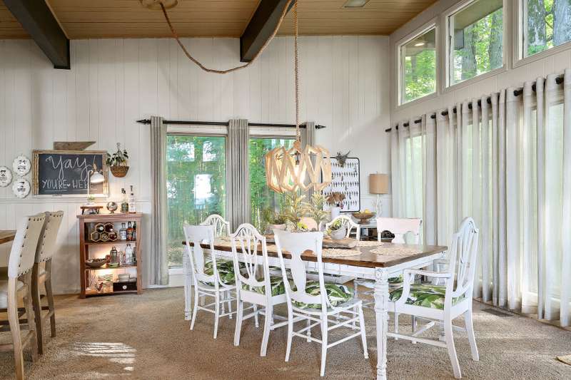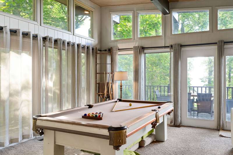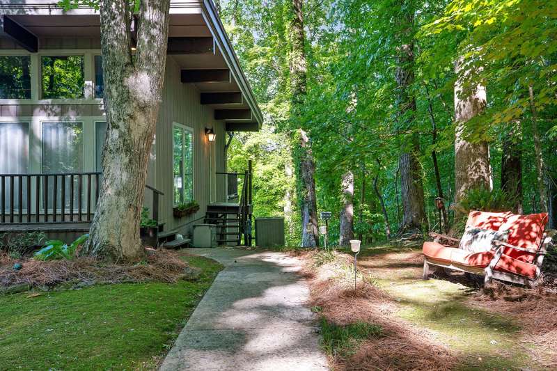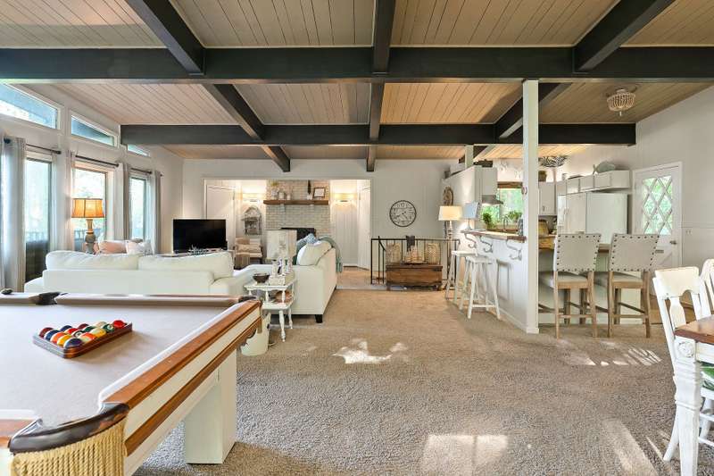 giving a tip of the hat to late mid-century architecture, this lakeview home has a main level open floor plan with gas fireplace, vaulted ceiling with exposed beams, abundant natural light from floor-to-ceiling windows, wrap-around deck, paved drive, hot tub, plumbed for outdoor shower, convenient to ragland bottom + sligo marina, homeowners in the community can opt into the homeowner association and have access to the community pool. sits on a huge acre plus lot (original lot 206 but also includes 207 + 208). furnishings negotiable.