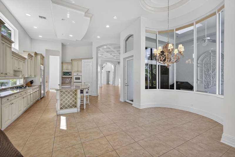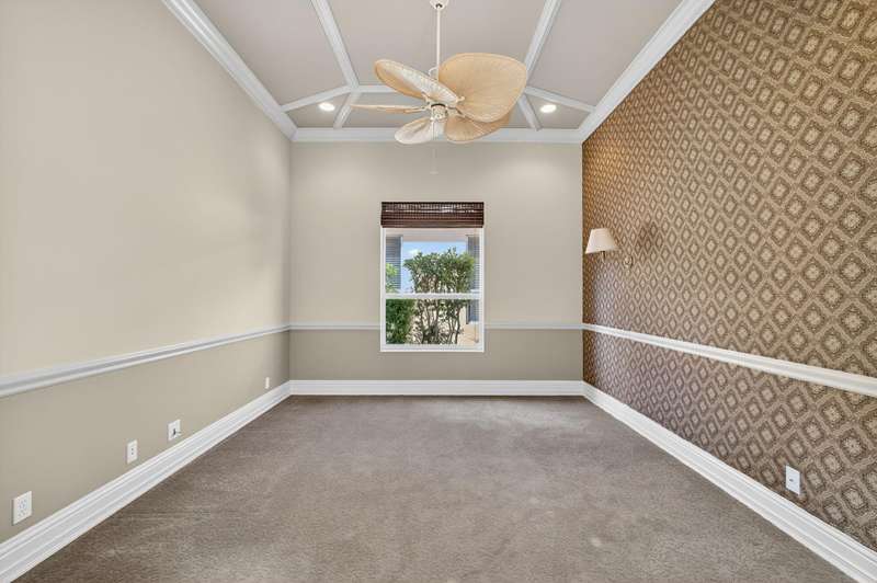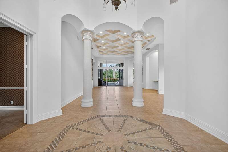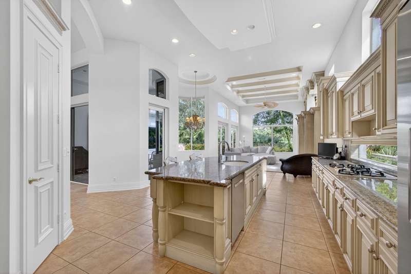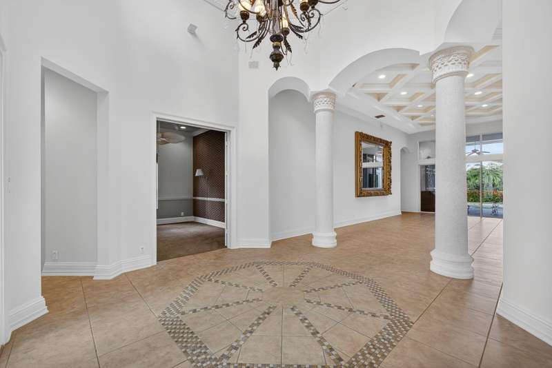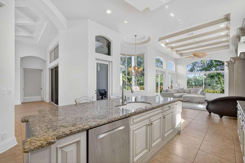 Golf, Luxury, Lifestyle - It All Comes Together Here. Situated in the highly desirable enclave of Via Paradiso, just a short stroll from The Country Club and all its world-class amenities, this stunning residence offers panoramic views of the 9th fairway on the Arthur Hills Sunset Course. The single-level Raphael floor plan is thoughtfully designed with 3 spacious bedroom suites plus a dedicated office, ideal for both relaxation and productivity. Soaring ceilings and an abundance of natural light greet you upon entry, showcasing elegant architectural details and an effortless flow throughout. The gourmet kitchen is a dream for entertainers, seamlessly connected to the butler's pantry, bar, and adjacent living and dining areas.