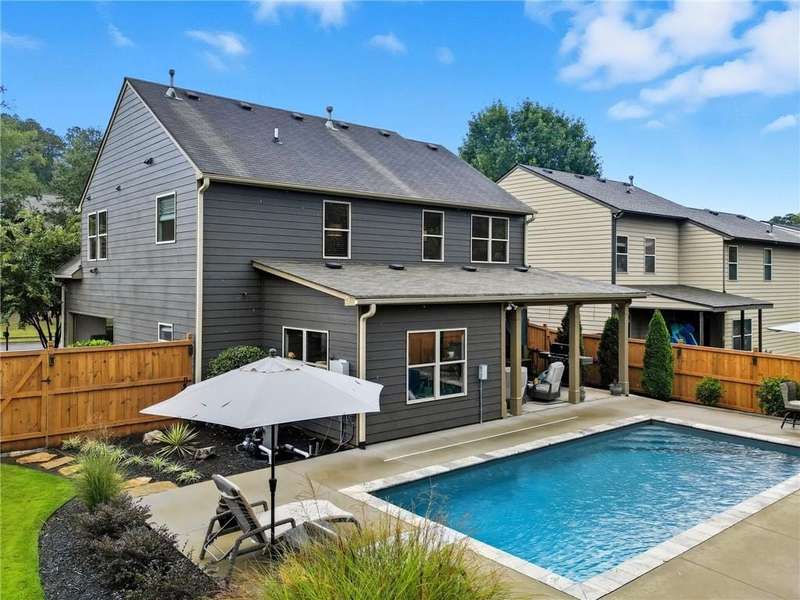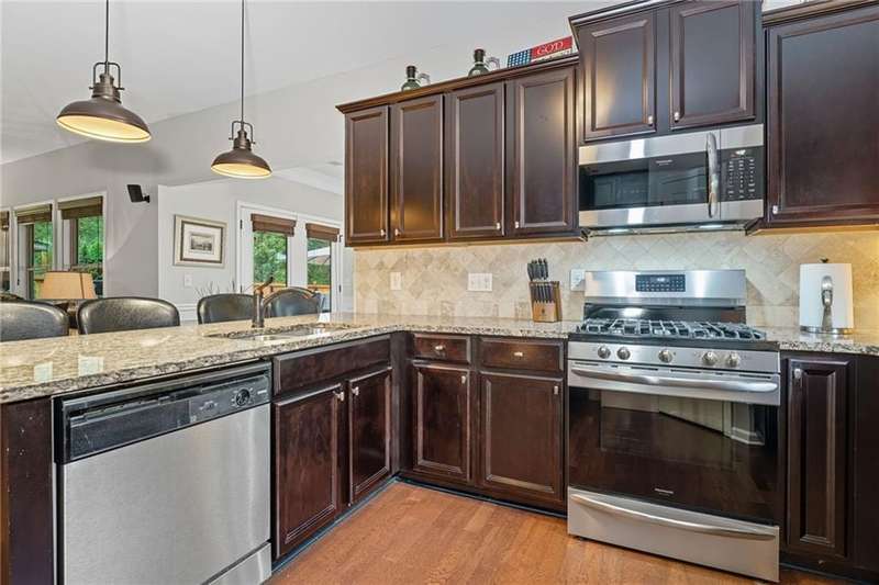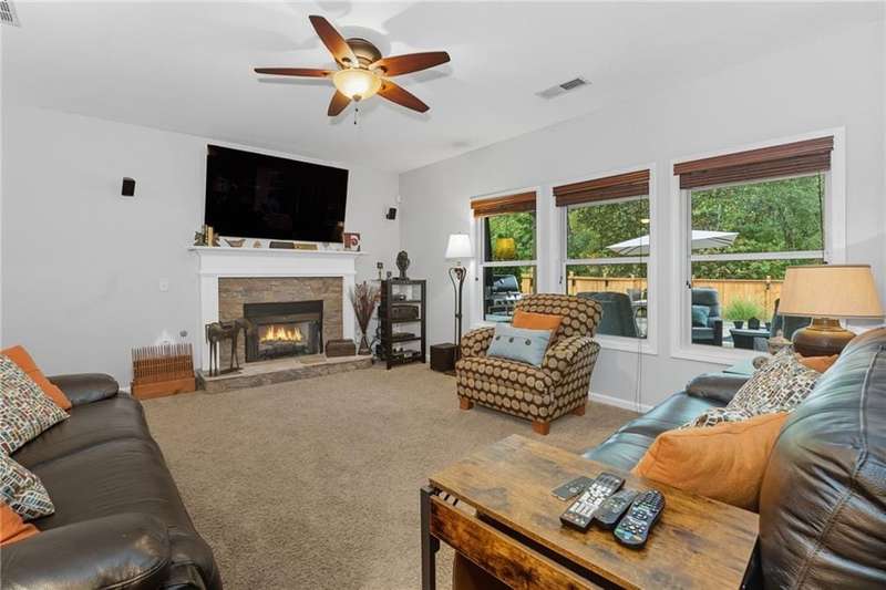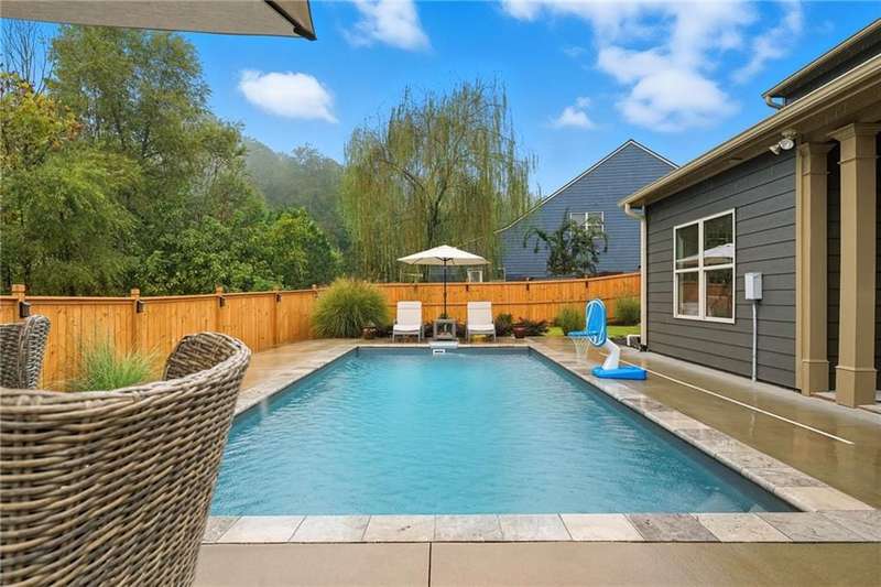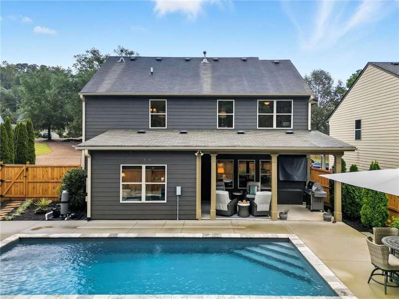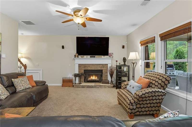 Welcome to this beautifully maintained 3-bedroom, 2.5-bathroom home offering the perfect blend of comfort, style, and convenience. Step inside and youll love the open floor plan filled with natural light, making it easy to entertain or simply enjoy everyday living. A dedicated space provides plenty of room for a work-from-home office, ideal for todays lifestyle.The home has been thoughtfully updated with a new roof, newer hot water heater, and an efficient HVAC system for peace of mind. The extra-large primary suite is a true retreat, complete with its own cozy fireplace, steam shower and reading areaperfect for unwinding at the end of the day.Step outside and experience vacation living in your own backyard. The fenced yard features a coverd patio with a 55 Samsung TV and an in-ground pool, creating an entertainers paradise for summer gatherings, barbecues, or simply relaxing poolside.Located just minutes from downtown Woodstock, this home is close to top-rated schools, shopping, dining, and entertainment. With its prime location, modern updates, and resort-style backyard, this home truly has it all!