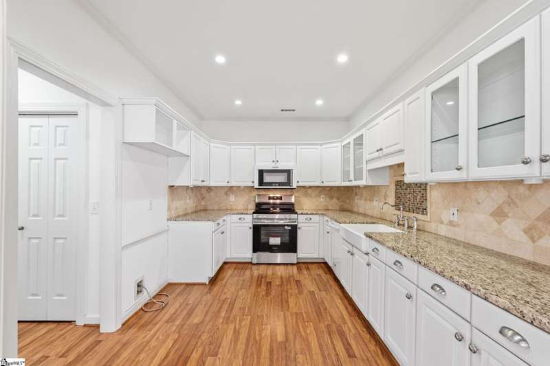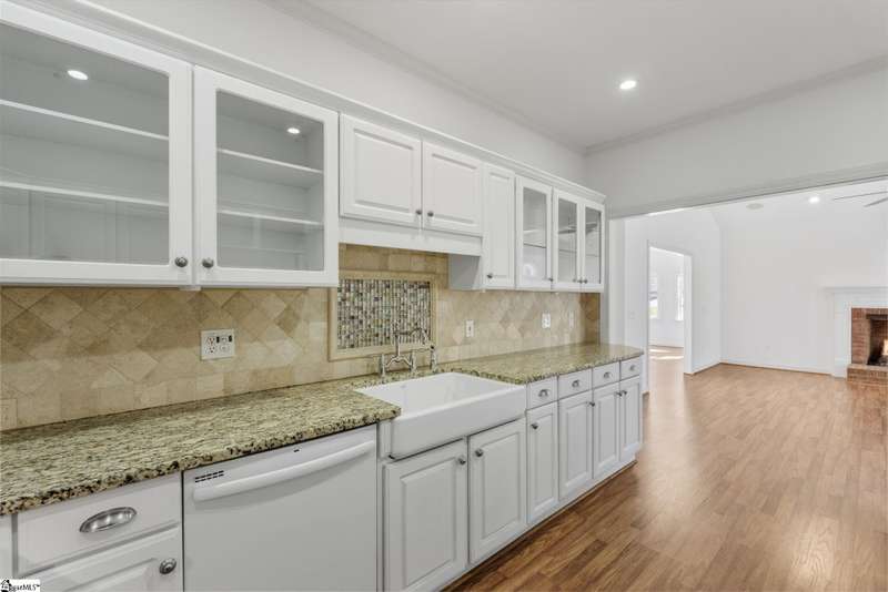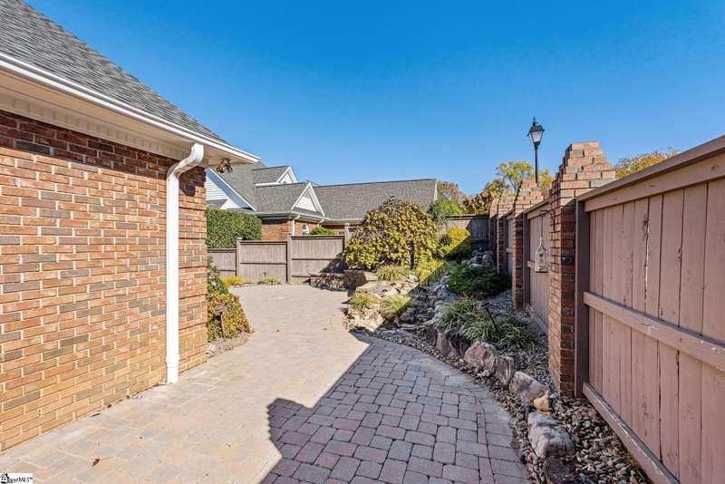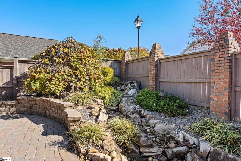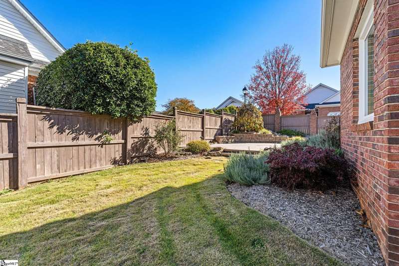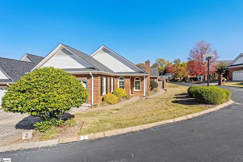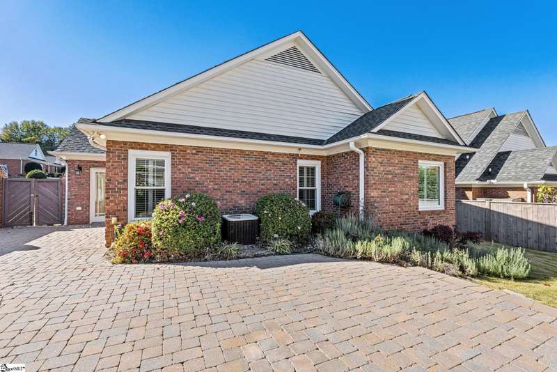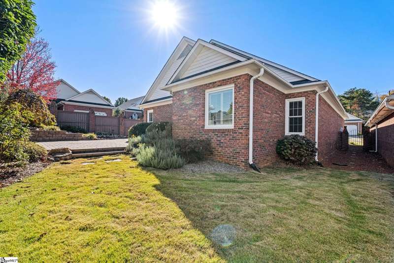 This home is offered by Blair Miller with Wilson Associates. Please contact Blair at 864.430.7708 or blair@wilsonassociates.net. Welcome home to this wonderful, single level two-bedroom, two bathroom home that offers convenient, low maintenance living. This brick home is situated on a corner, level lot that is fenced. Enjoy a lovely, vaulted living room with fireplace which opens to a separate sitting area or dining room and the kitchen. Kitchen features brand new oven/range, granite countertops and ample cabinetry. Spacious bedrooms including a large primary suite with en suite bathroom. This home offers an attached garage with some excellent storage cabinetry. Many rooms in this home were just recently painted! Enjoy this outdoor patio which is ideal for mornings or afternoons by the landscaped yard and water feature. Convenient to downtown Greenville, golf courses, shopping and dining. Schedule your appointment today!