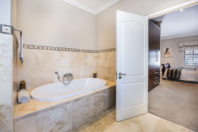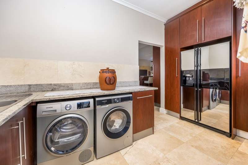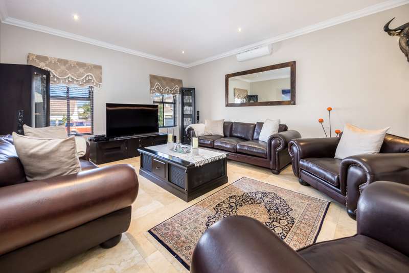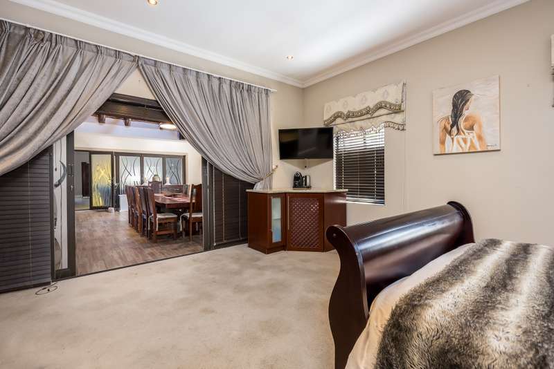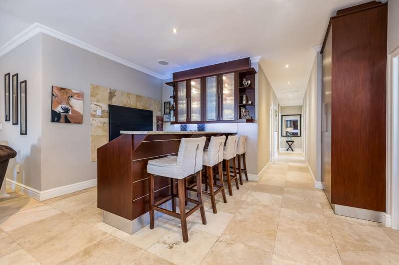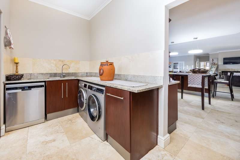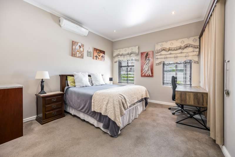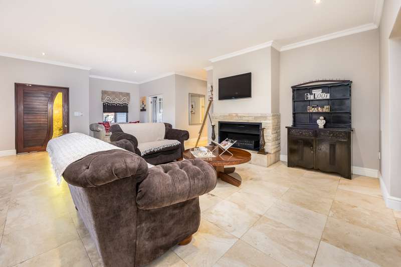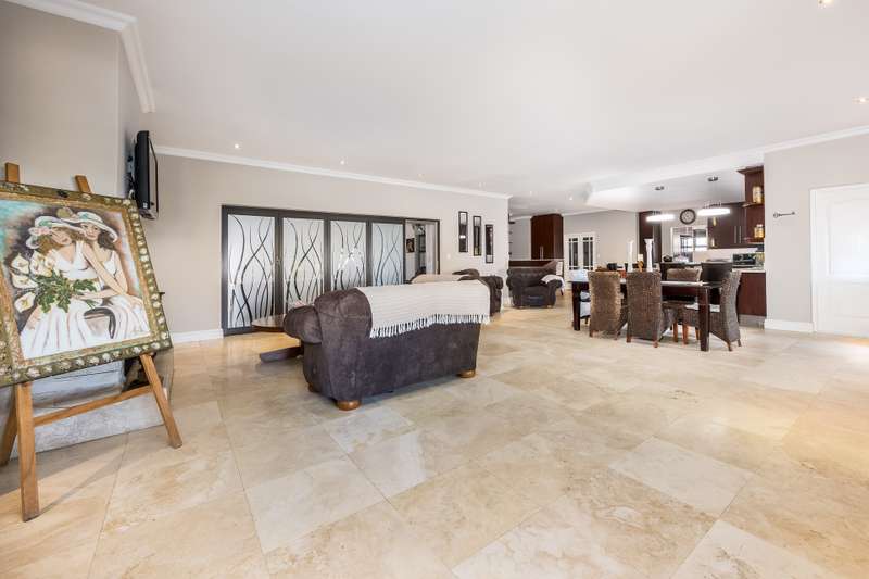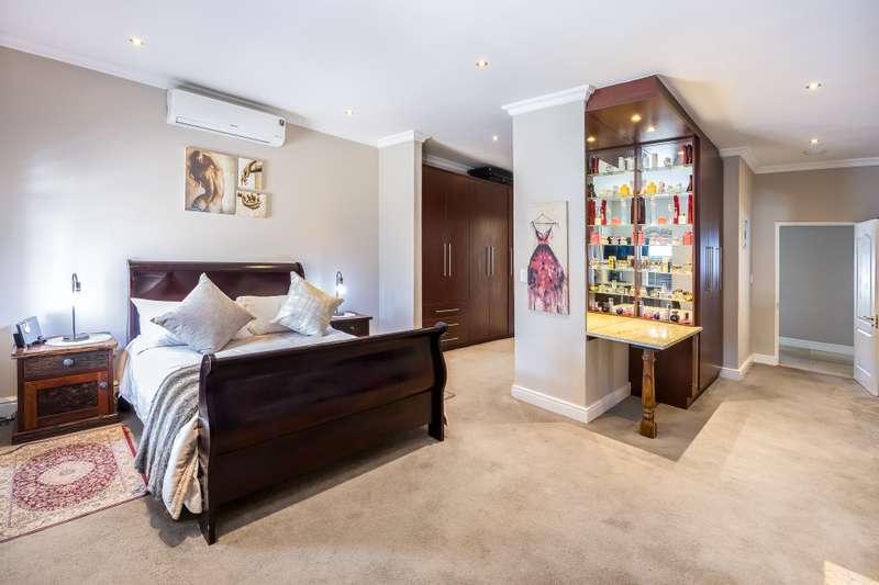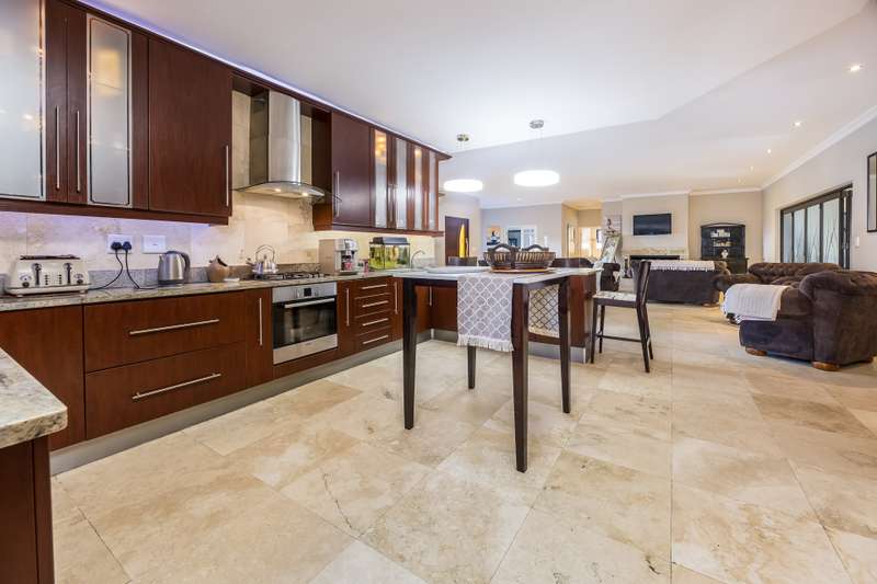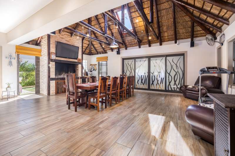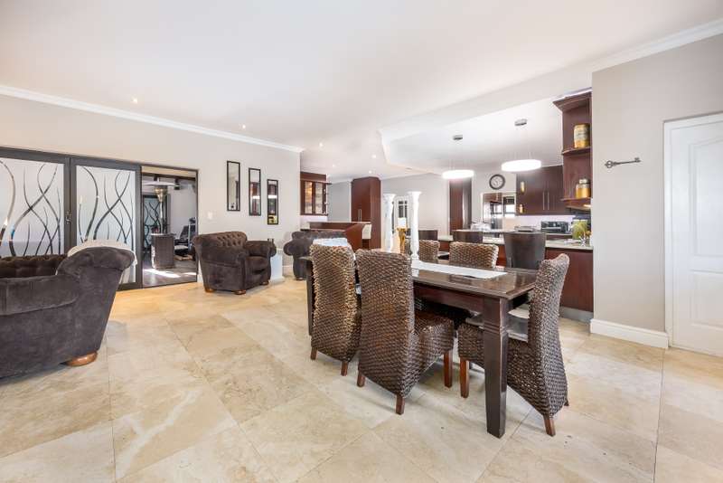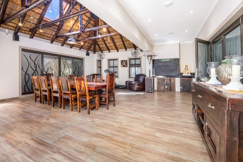This property truly has it ALL! Offering well finished open plan living spaces. Lounge with fireplace; dining room with space for a 12-seater dining room table and chairs; 2 Indoor braais leaning itself toward the ultimate entertainment home. Also has a separate study with wine racks up to the ceiling. The living area can be sectioned off with a stacking door or be opened to create s open plan feel. This opens onto a neatly manicured back garden that is under computerized irrigation and a exceptionally well maintained rock pool. Furthermore, the home has 5 bedrooms master with dressing room and en-suite 4 of the 5 rooms are equipped with air conditions. Viewings by appointment only.