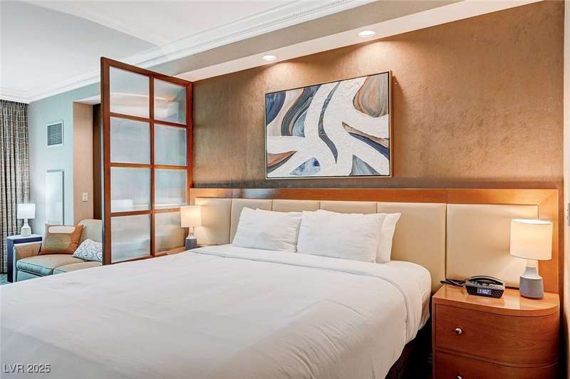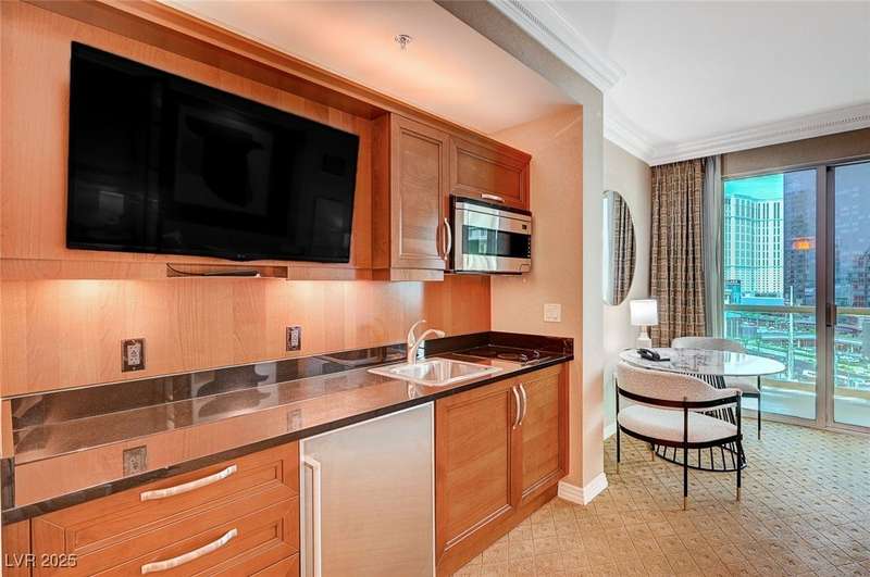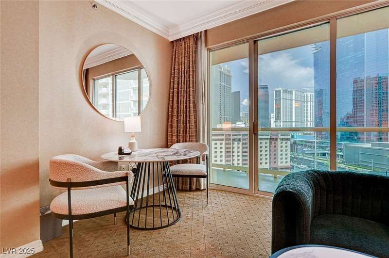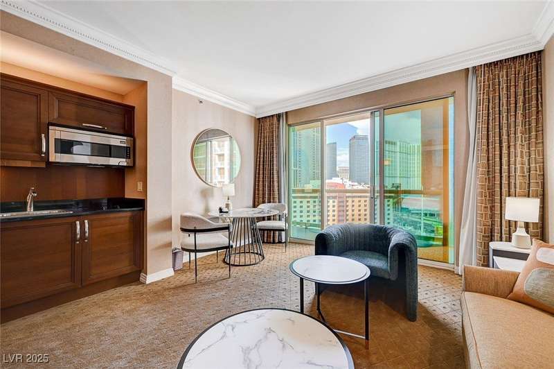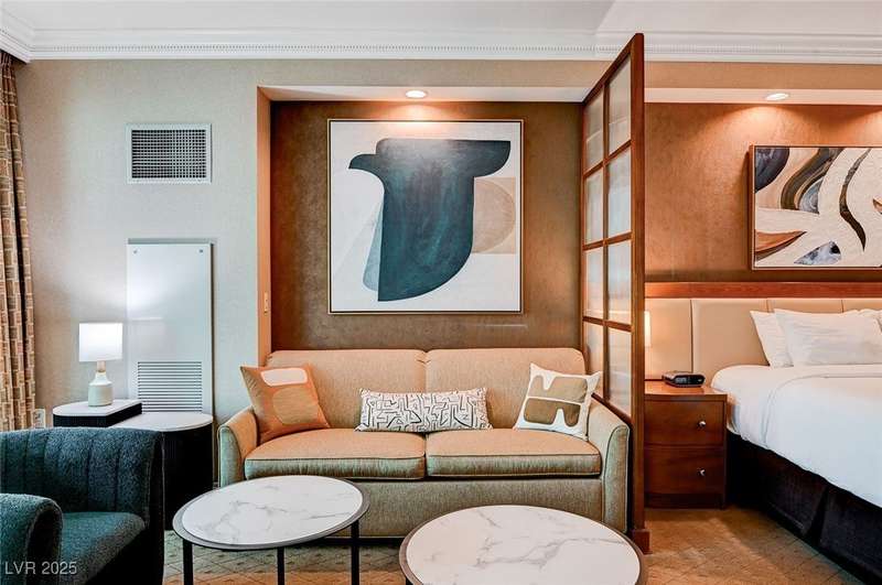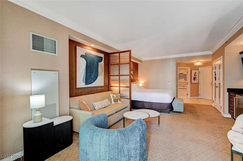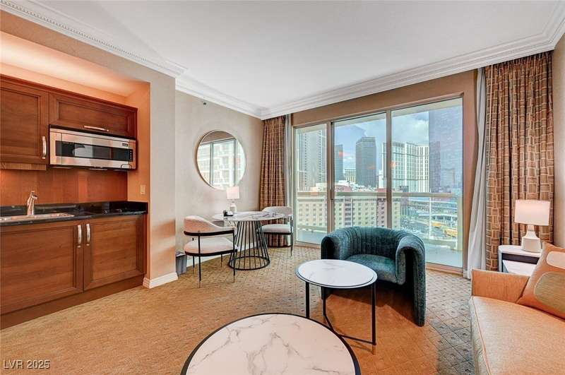 STRIP VIEWS with BALCONY ~ This stunning studio suite in tower 2 high-rise condominium offers the perfect combination of luxury, comfort, and unparalleled city views. Located on the 8th floor of one of the most sought-after buildings at MGM Signature. This unit features a well-appointed kitchenette with a mini-fridge, microwave, stovetop, and ample cabinet storage. Cozy living and sleeping area with large windows allowing natural light to flood the space. Modern bathroom with a sleek vanity, spacious shower and oversized jetted tub and contemporary finishes. FULLY FURNISHED. Schedule your private tour now.