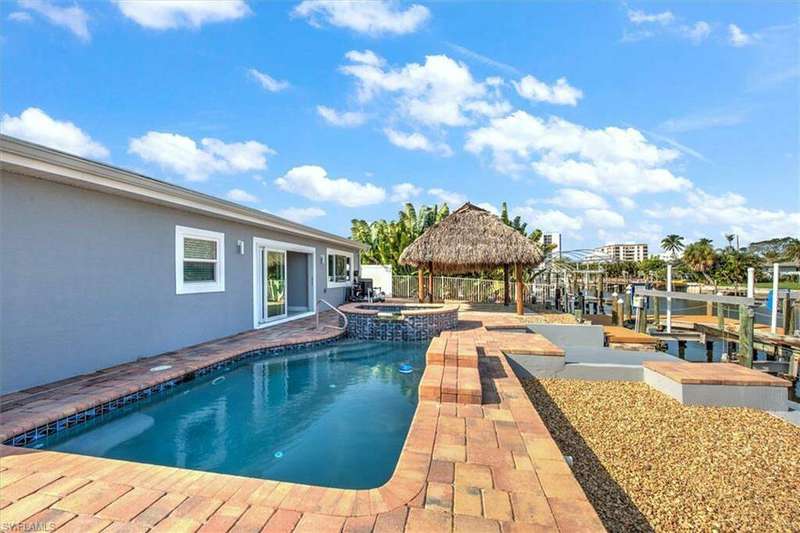 HUGE PRICE REDUCTION, SELLER WANTS THIS SOLD! Step into this stunning 3-bedroom, 3-bathroom direct Gulf access pool home and feel the excitement! Completely remodeled and fully permitted, this home was built to exceed your expectations. The developer goes above and beyond and includes clean air certifications with every revitalized property. Inside, find gorgeous porcelain tile throughout, custom tiled showers, and not one, but two master suites. The massive great room offers breathtaking views of the pool, dock and water way. Entertaining friends and family is what this property was designed for. Step outside and walk into an oasis of pure relaxation. Chill by your pool with siestas under your very own tiki hut for the full enjoyment of the Florida lifestyle. Experience the nature like never before, as the canal comes to life just for you, manatees, dolphins and an assortment of beautiful fish play before your very eyes. This home was completely re-envisioned, taken down past the studs, and boasts brand new everything; electrical, plumbing, impact doors and windows and so much more to mention here. Your real estate professional will be happy fill you in on all this home has to offer! Bonus, what matters most in real estate is location, location, location! This home is Located in the highly sought-after Fairview Isles neighborhood, you're just a short stroll away from the soft white sands of Ft. Myers Beach. Don't miss out on this extraordinary opportunity to live a carefree island life.