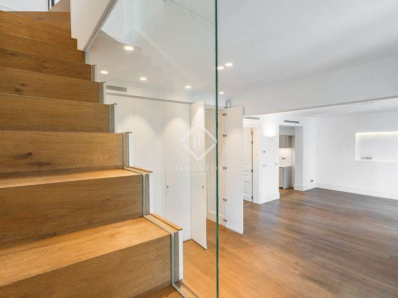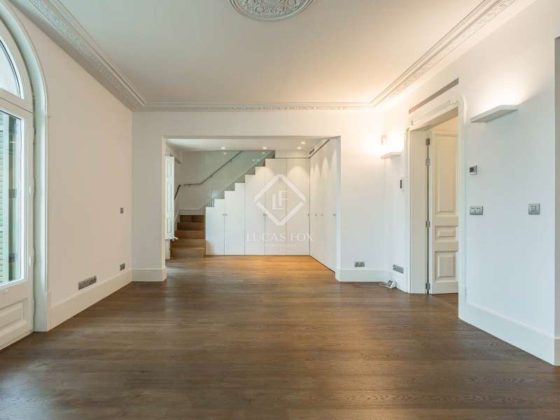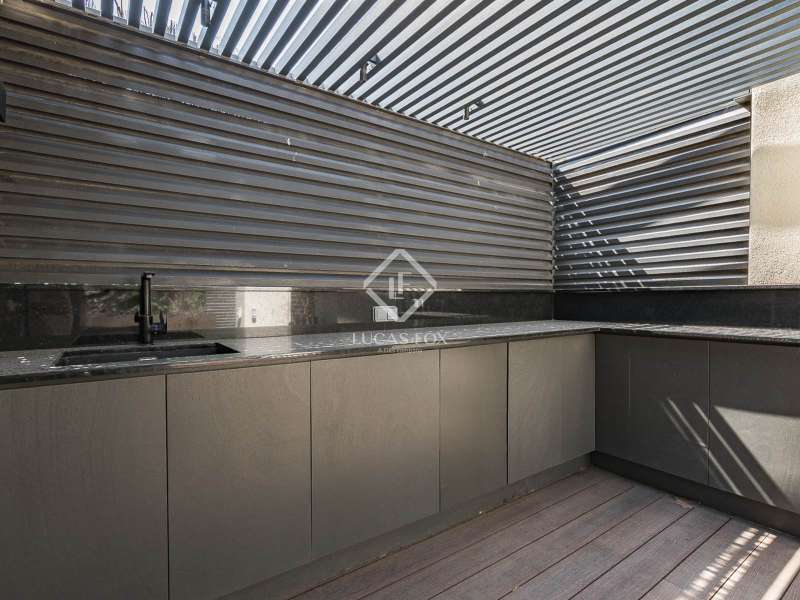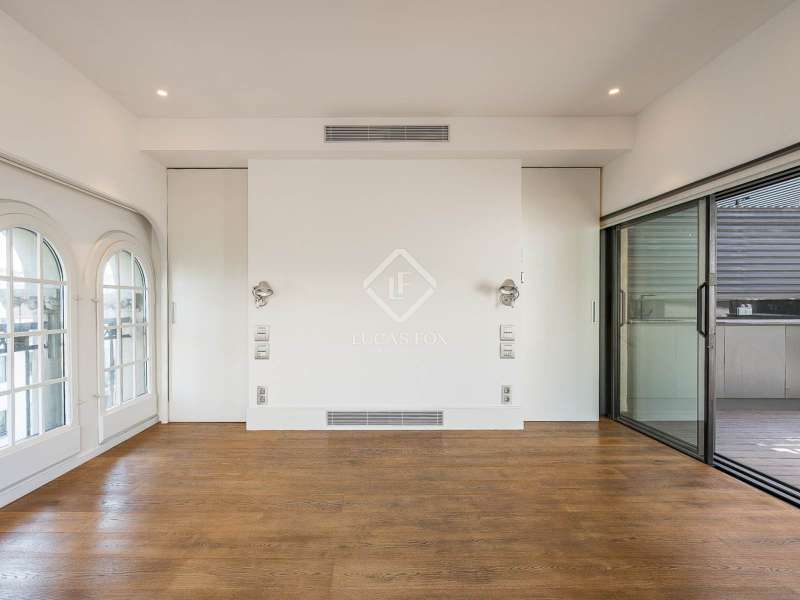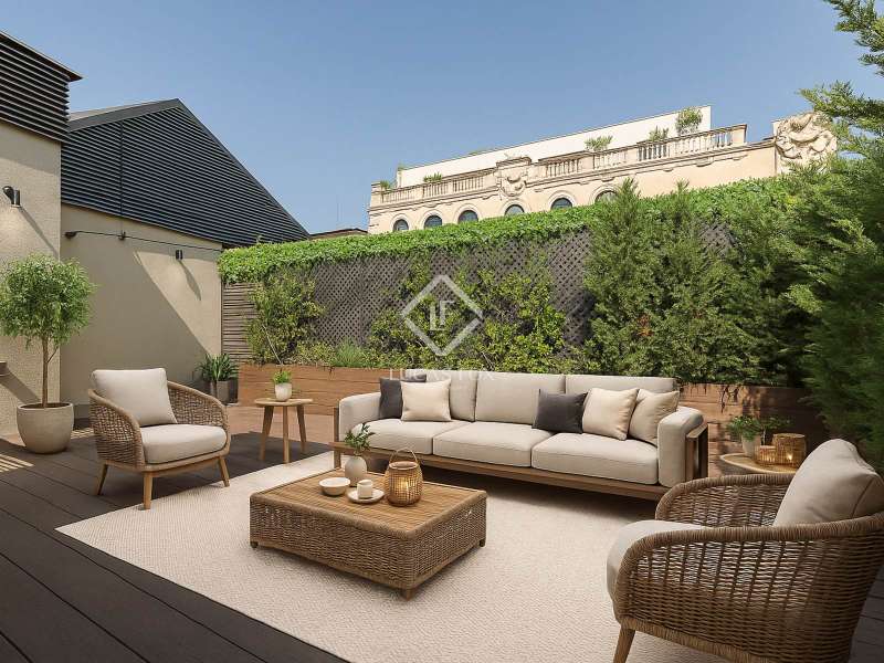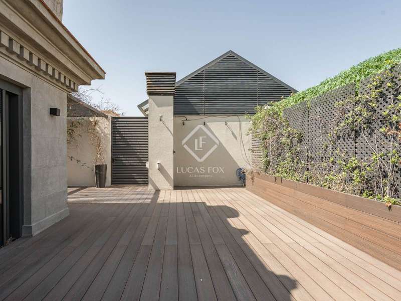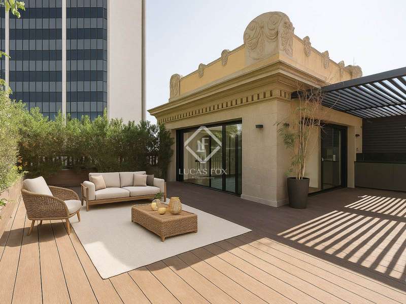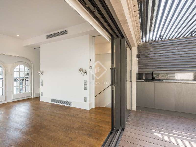 Located in the heart of Barcelona, Lucas Fox presents a unique penthouse located on the top floor of a building built by Barcelona master builder Enric Sagnier in 1910 and completely renovated in 2017, maintaining its original features. The building offers a concierge service, parking spaces, and storage rooms. Two spaces and a storage room are included in the price. The apartment, with two double bedrooms, features hardwood floors, high coffered ceilings, restored original woodwork, and plenty of storage space. The kitchen is fully equipped and features the renowned Bulthaup brand. The living and dining room have three exits to the balconies, offering beautiful views. The apartment also has two full bathrooms with showers and a toilet. The crown jewel is found upstairs, where we can access both the master bedroom and the sun terrace. An ideal space for sunbathing or gatherings with family and friends. The terrace is well-equipped, with a small kitchen for added convenience. Contact us for more information and to arrange a viewing.