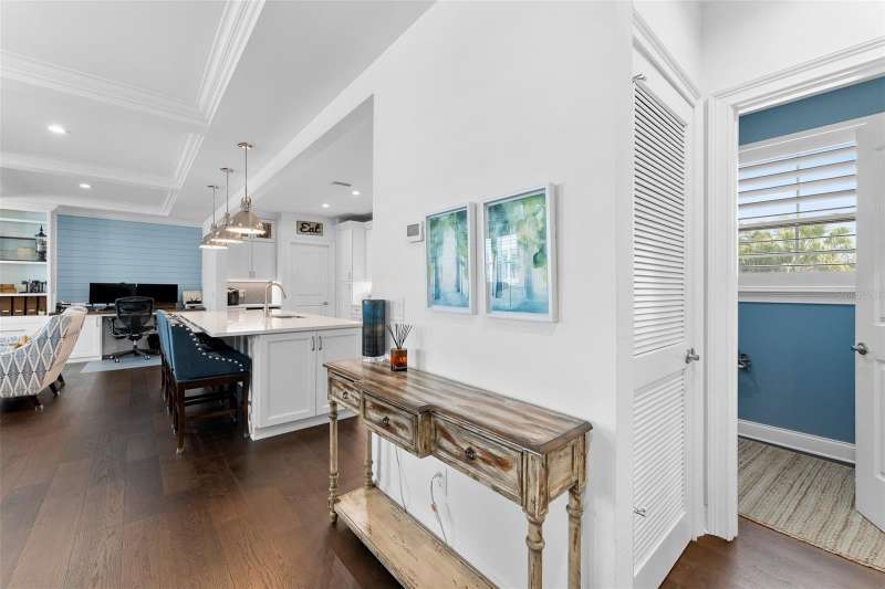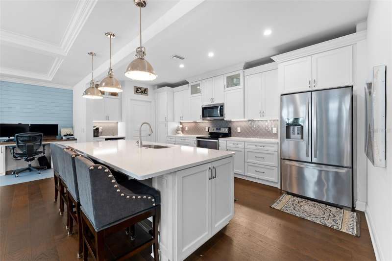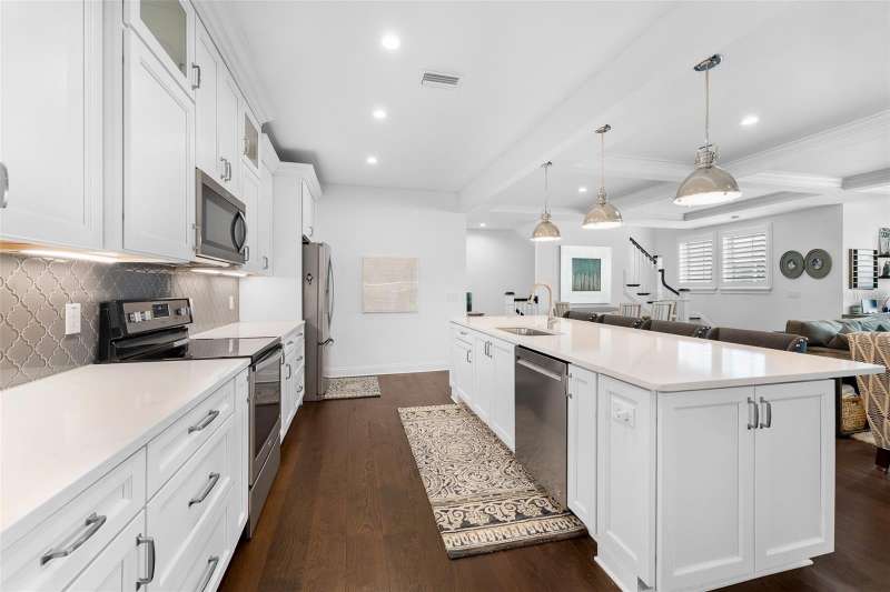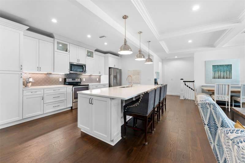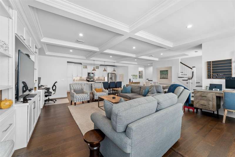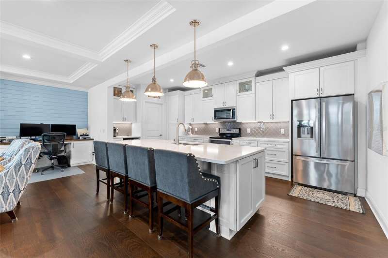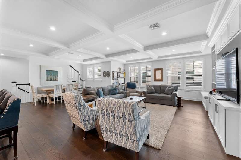 Stunning 4-Bedroom Townhome in the Heart of South Tampa. Welcome to South Howard or 'SoHo', a treasure trove brimming with fabulous nightlife, delectable cuisines, and live music venues. Discover refined living in this beautifully designed 4-bedroom, 3.5-bath townhome boasting an impressive 2,672 square feet of modern luxury. Perfectly situated in highly desirable South Tampa, this spacious residence offers both elegance and convenience with an array of high-end custom finishes. Step inside to soaring tall ceilings and rich engineered hardwood floors that flow throughout the main living areas. The open-concept layout features an elegant kitchen equipped with premium quartz countertops, raised panel soft-close cabinetry, a large walk-in pantry, and a suite of Whirlpool stainless steel appliances, including a wine cooler and undermount sink. The main level and luxurious master suite are highlighted by coffered ceilings and premium crown molding, adding architectural charm and character. Retreat to the spa-like master bathroom showcasing a freestanding soaking tub, a large oversized shower, and sophisticated custom finishes. Plush Mohawk Everstrand carpeting adds warmth and comfort to each bedroom. Additional upscale features include: Impact-resistant windows—no hurricane shutters required 80-gallon water heater with recirculating hot water Icynene insulation for dramatically reduced energy bills Double-layer soundproofing between units Custom height solid core doors and detailed wainscoting 4-ton HVAC system with touchscreen thermostat Zip System walls, floors, and roof for superior durability Designed for entertaining and everyday ease, enjoy patio space with pet areas, brick paver driveways, and an oversized 2-car garage featuring clean finish trim/drywall, track lighting, and a belt-drive quiet garage door. Pre-wired for wall-mounted TVs and packed with excellent closet and storage space, this home offers a seamless blend of style, comfort, and smart design. Don’t miss this opportunity to own a truly exceptional home in one of Tampa’s most sought-after neighborhoods!