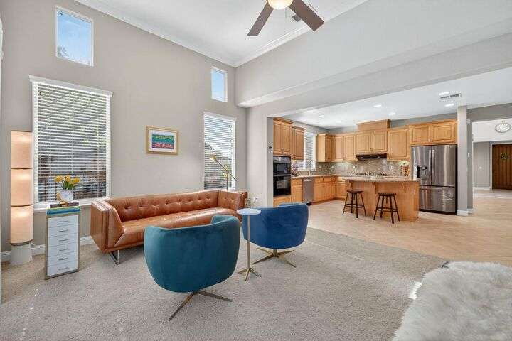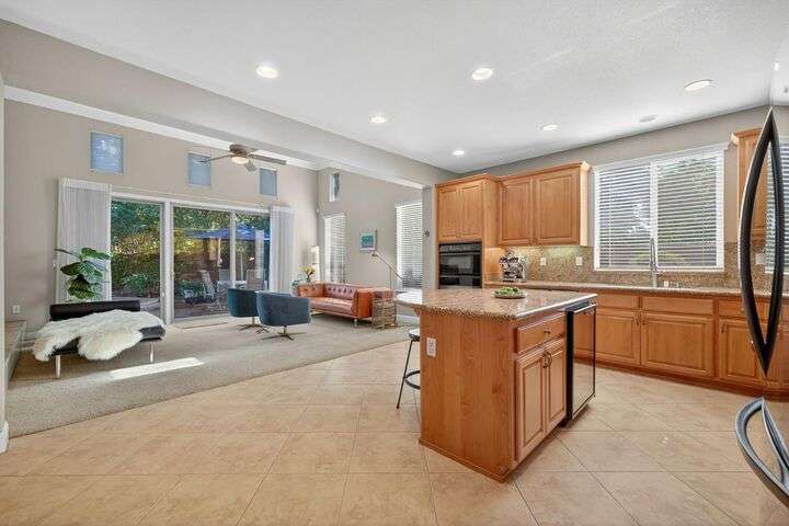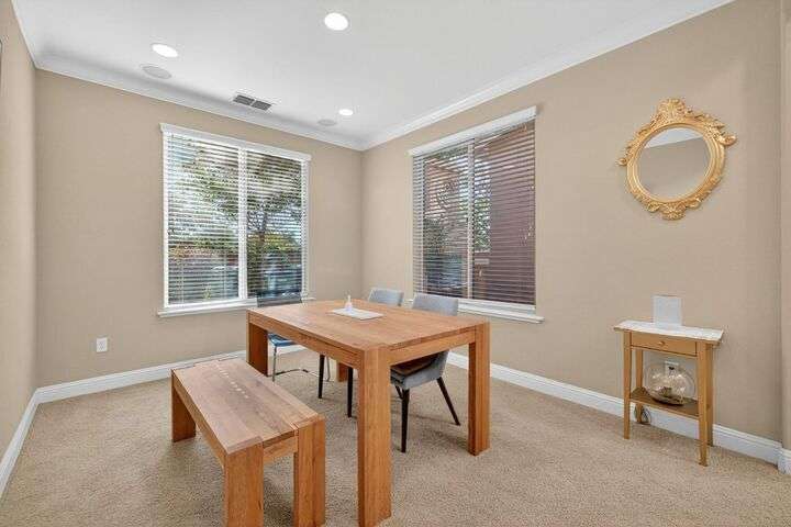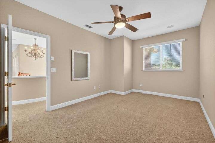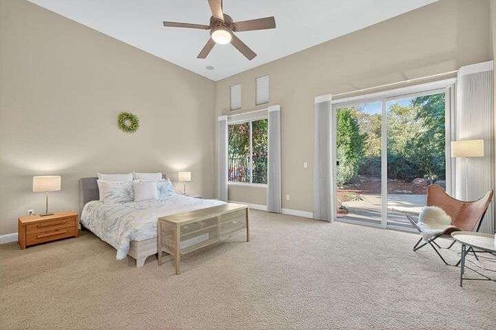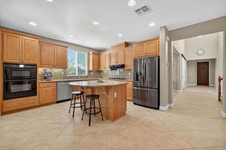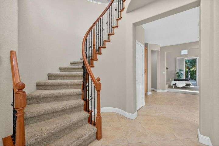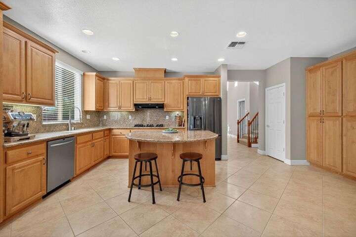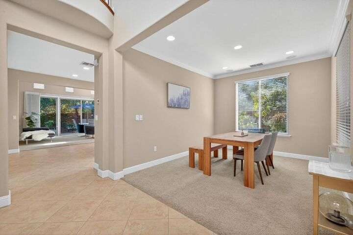 Nestled behind the prestigious guarded gates of Serrano, this elegant home perfectly combines luxury, comfort, and an unbeatable location just steps from the Country Club and Golf Course. Designed for effortless entertaining, the open floor plan features formal dining, soaring vaulted ceilings, and a private courtyard with a cozy fireplace. The gourmet kitchen showcases granite counters, a wine fridge, and seamless flow to spacious living areas. The downstairs primary suite offers a spa-like retreat with dual walk-in closets and private backyard access, while an additional main-level room is ideal for guests or a home office. Upstairs, a versatile room is pre-wired for surround sound and home theater use. Set on a generous cul-de-sac lot with only one neighboring home, the property enjoys beautiful landscaping, an expansive patio, and a rare, oversized side yardan exceptional find in Serrano. Additional highlights include three bedrooms plus a flexible office or game room and a brand-new A/C unit installed in April.