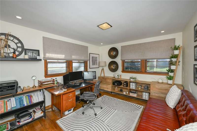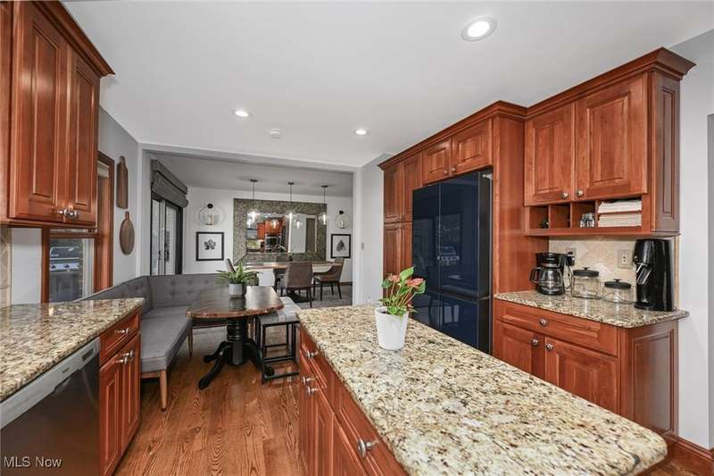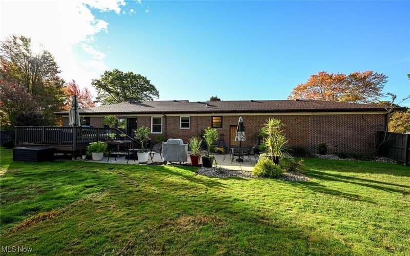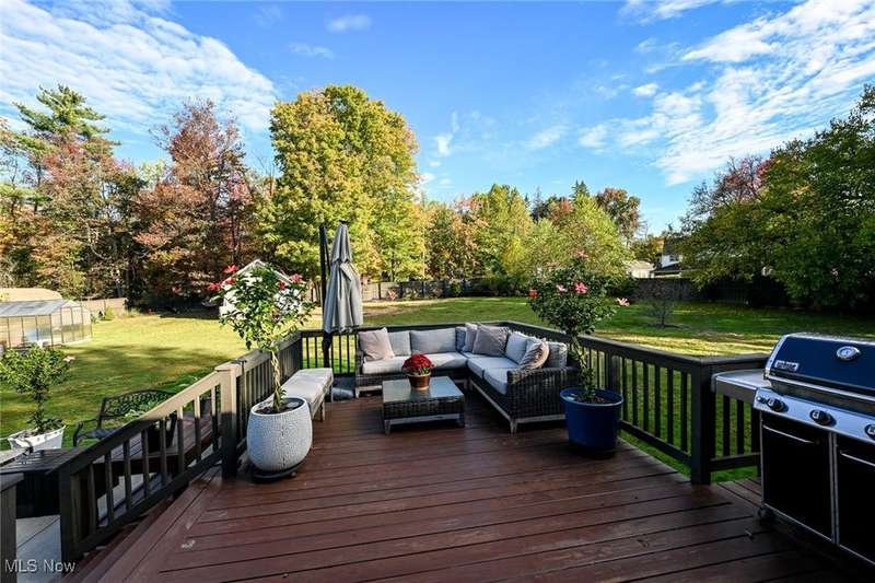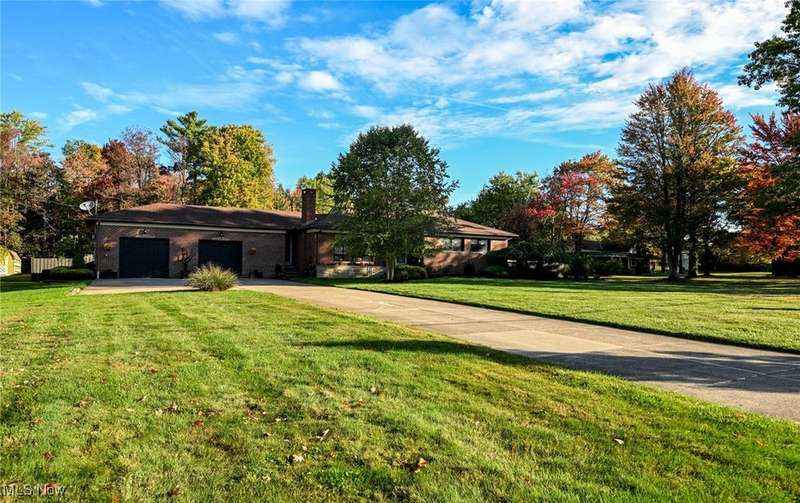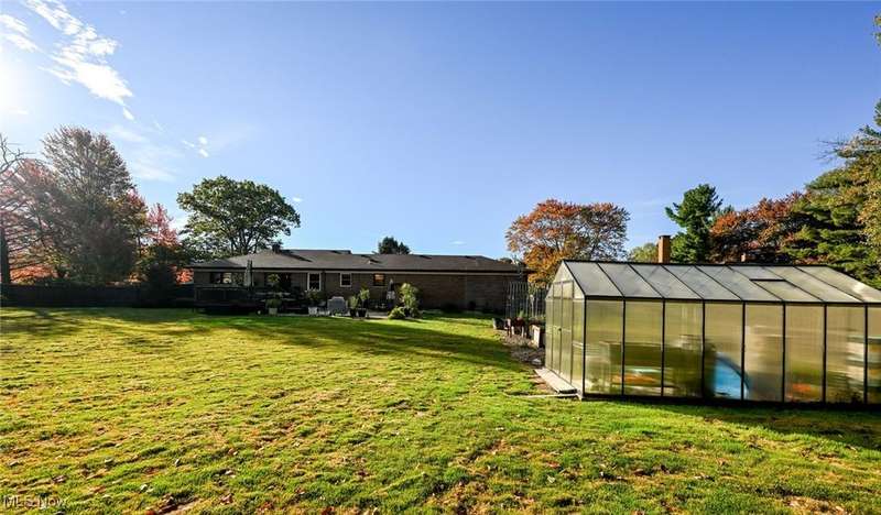 Welcome to this beautifully updated brick ranch in Broadview Heights, nestled on a tranquil one-acre lot surrounded by mature trees for ultimate privacy and serenity. Thoughtfully designed for both comfort and functionality, the home features an oversized 37' x 23' garage with natural gas plumbing, built-in overhead storage, two car charging ports, and extra-wide stairs leading directly into the home. A second one-car garage at the rear complements the expansive backyard, which boasts privacy fencing, a raised bed garden, greenhouse, and generous outdoor entertaining spaces including a 14' x 16' wood deck and a 30' x 16' concrete patio. Inside, hardwood floors flow throughout a spacious living room with a picture window, fireplace, and built-ins, while the chef's kitchen impresses with granite countertops, a double drainboard sink, induction/gas cooktop, and Samsung four-door refrigerator. The open floor plan seamlessly connects the kitchen and dining area to the outdoor deck. The main bath offers floor-to-ceiling ceramic tile, a soaking tub/shower combo, and a double vanity, while the lower level spa retreat features a jetted air bubble tub, glass shower, and a 90" vanity with lighted mirror?perfectly paired with a finished recreation room. Additional highlights include a second wood-burning fireplace, abundant natural light from eight lower-level windows, a large laundry/work area, and ample storage for hobbies or indoor recreation. This home is a rare blend of modern amenities and peaceful living?ready to welcome its next owner.
