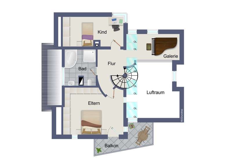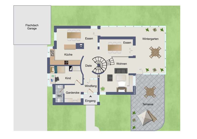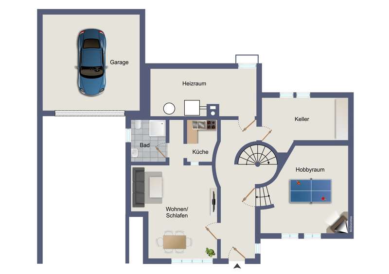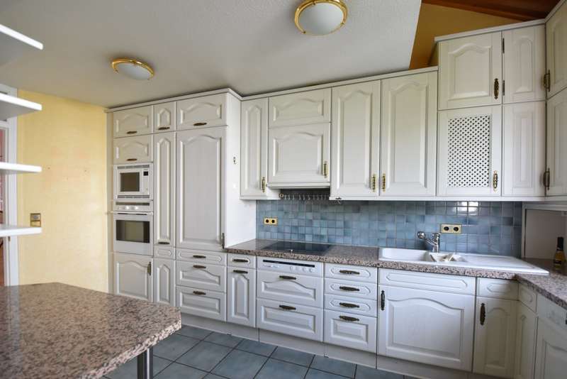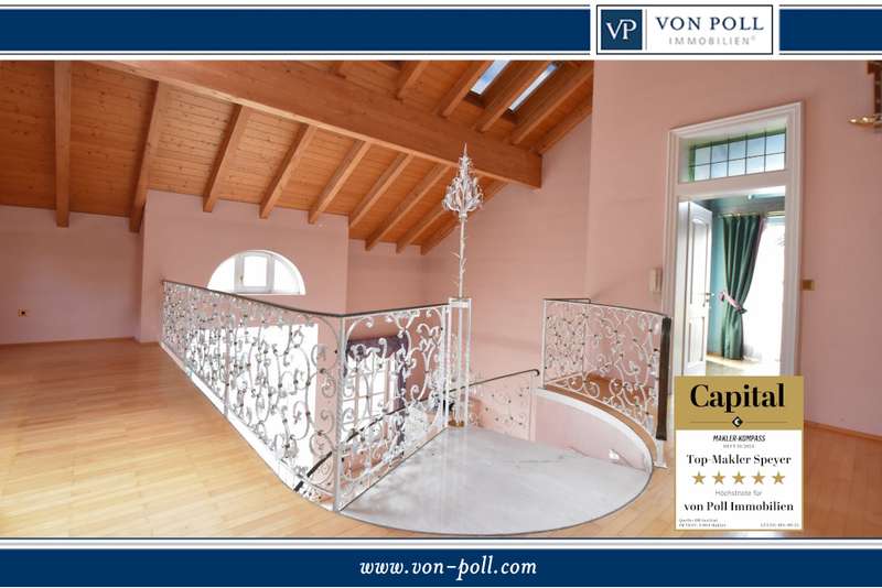 A special property awaits you in a quiet location in Limburgerhof. Seven rooms spread over approx. 186m² (including approx. 28m² of converted space in the basement) could soon be your new home. A footbridge leads you across the terraced front garden to the covered entrance with a wide front door. Inside you will find a spacious hallway with built-in wardrobe and access to a children's room or study, as well as a guest toilet. A double wing door leads you into the main living area, which is completely open plan and impresses with its sophisticated details and staggered levels. The first highlight is the spiral staircase with wrought-iron banisters and marble steps, which connects the individual floors and attracts attention as a central eye-catcher. Past this, the room opens up to the living room, which is set back by a few steps and flows seamlessly into the conservatory. The floor plan, which is open over two floors, provides plenty of light thanks to numerous electrically operated skylights. A tiled stove provides cozy warmth in winter and, in conjunction with the approx. 30 m² conservatory, creates a place to relax and enjoy all year round. A dining table or breakfast bar can be accommodated adjacent to the fitted kitchen. The upper floor with its gallery and parquet flooring is also stylish. The exposed beams, which can also be seen from the first floor, create a feel-good atmosphere. Two rooms, which were previously used as a bedroom and dressing room, and a daylight bathroom equipped with a shower, corner bath and double washbasin are at your disposal. The building has a full basement. The laundry room, utility room, boiler room and storage areas are located to the right. To the left is a living room with adjoining small kitchen and shower room, as well as a spacious hobby room with wood-burning stove and natural light. According to the area calculation, the entire basement was allocated to the usable area. However, the converted rooms, numerous windows and a separate front door allow for full residential use, for example as a granny annexe. You can park your vehicles in the double garage and park additional cars in the courtyard in front of it. The house was built in 1984 and has been well looked after and maintained over the years. Nevertheless, after 40 years, some renovation and refurbishment work is due, which we will be happy to tell you more about in a personal meeting.