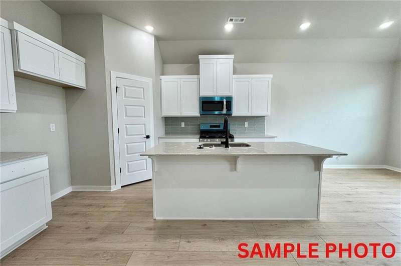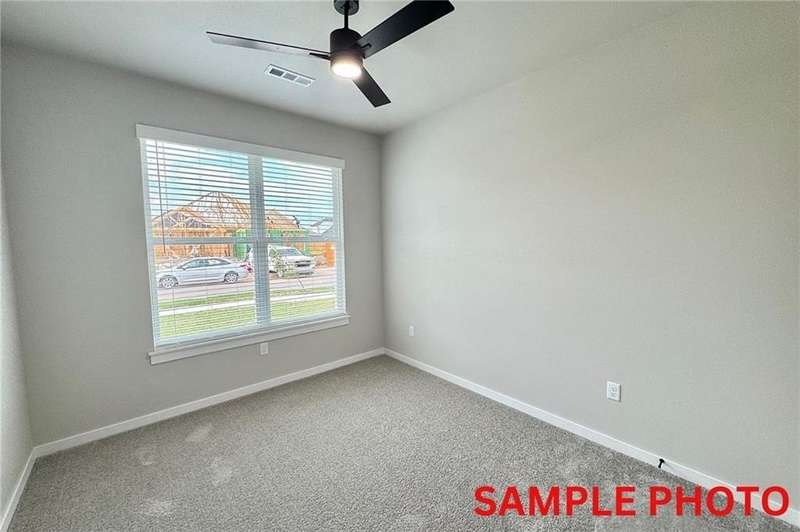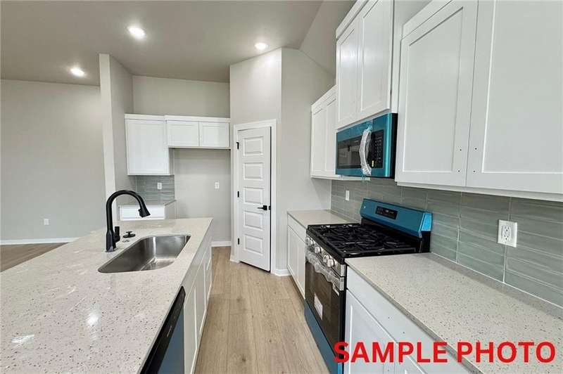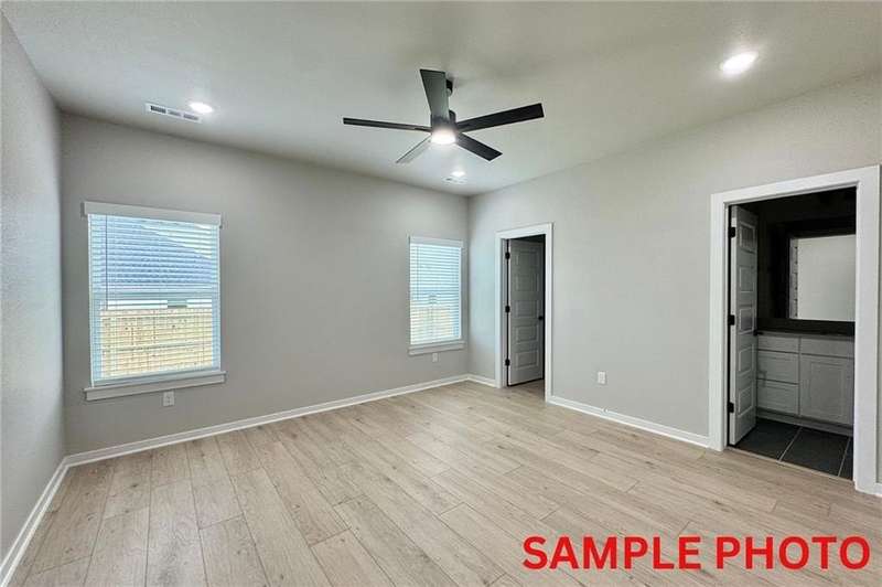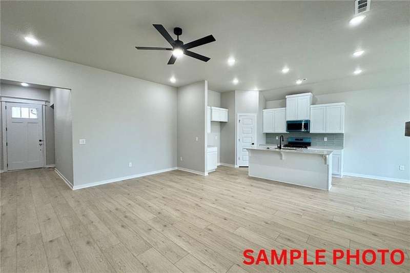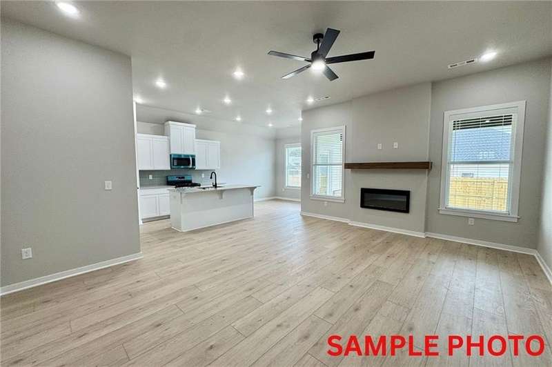 Fence, blinds and gutters included! Discover your dream home in the new neighborhood- Jacob's Crossing. Benton plan with garage on the left and North facing! Select your exterior and interior packages! 10 ft ceilings in the living/kitchen area, linear electric fireplace in the living, 1 level, LVP flooring throughout the main living areas and primary bedroom, quartz countertops and more. Chef's kitchen boasting frigidaire stainless steel appliances, gas range, pantry, quartz countertops, bar pull handles, large island and gorgeous backsplash. Luxurious primary bedroom features abundant natural light, while the spa-like primary bathroom offers a walk-in shower, double sinks, and spacious walk-in closets. Additional features include three large secondary bedrooms and a separate laundry room. Nestled on a generous lot with covered patio that overlooks the serene sodded, fully fenced backyard. Sturdy concrete siding! Model home located at 3631 Tranquility St- Lot 1.