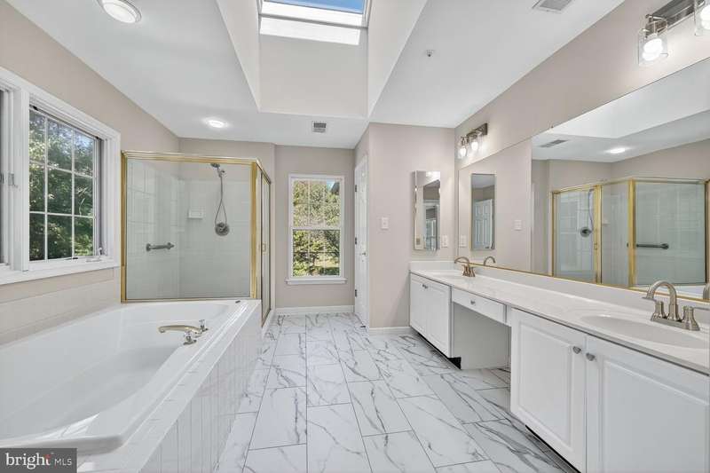 PRESTIGIOUS WOODMORE HIGHLANDS - Elegant 5 BR, 4.5 BA estate situated on stunning 1.21-acre lot and boasts of 6,514 square feet of luxury living. Grand two-story foyer entry with decorative columns, wainscoting, crown molding, and refinished hardwoods. Sunlit living spaces with floor-to-ceiling windows and three fireplaces. Gourmet kitchen with center island, double wall ovens, and breakfast nook flows to a serene family room with cozy fireplace. Do not miss the stunning sunroom and main-level office. Enjoy the luxurious primary suite with fireplace, two walk-in closets and a romantic fireplace. The finished lower level with b-i-g recreation room, wet bar, guest bedroom, full bath, theater room and plenty of storage. Oversized two-level deck ideal for outdoor entertainment. Exceptional craftsmanship and refined details throughout.