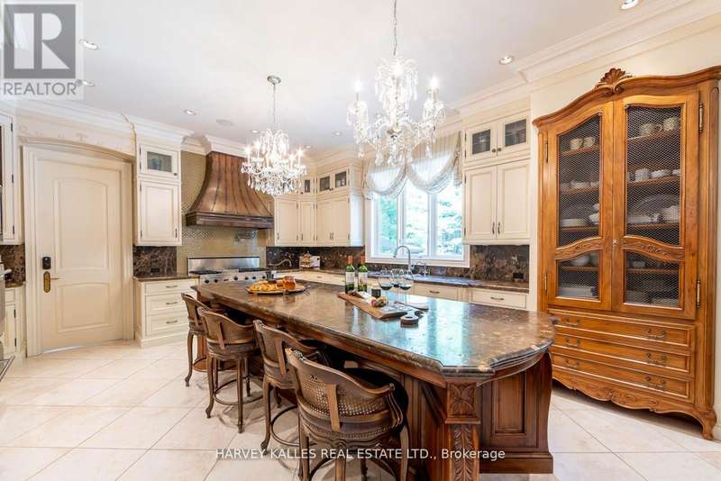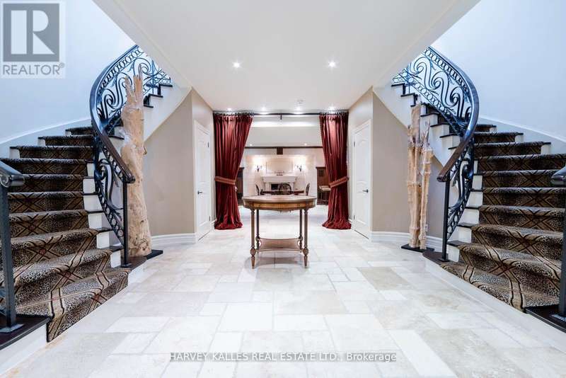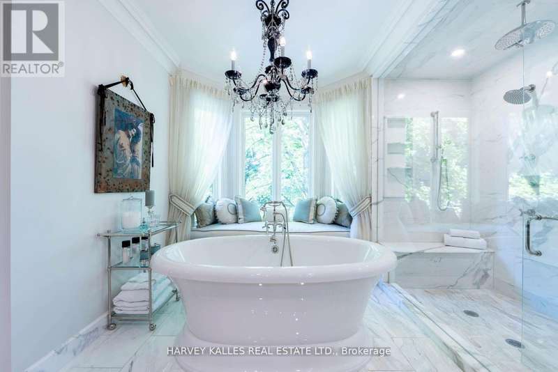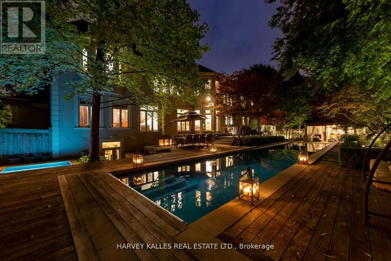 Welcome Home to 48 Wimpole Drive, a breathtaking, freshly renovated home nestled on a gated, estate-sized lot in the prestigious St. Andrews neighborhood. Surrounded by mature trees and lush landscaping, this remarkable home offers true resort-style living in the heart of the city. An Olympic-sized infinity pool, hot tub, cabana, and two outdoor fireplaces are framed by Brazilian Ipe wood decks, creating an outdoor oasis that rivals the finest retreats. Relax in the Finnish and infrared saunas or entertain effortlessly in this private paradise. Inside, the grand foyer stuns with a dramatic two-storey leaded glass skylight and twin Scarlet O'Hara staircases, setting the tone for the opulence throughout. The formal living and dining rooms feature soaring ceilings and intricate crown mouldings that elevate every gathering. At the heart of the home is a handcrafted Falcon kitchen with leather-finished granite, copper accents, built-in appliances, and a servery designed for both beauty and function. A richly paneled main-floor office offers a quiet escape with its own separate walk-out. The primary ensuite is pure indulgence: wrapped in Calacatta marble, featuring dual rain showers, and a solid wood double vanity. Additional highlights include an elevator shaft, butlers kitchenette, and exquisite custom detailing throughout.48 Wimpole is more than a home its a statement of grace, comfort, and elegant design. (id:6370)