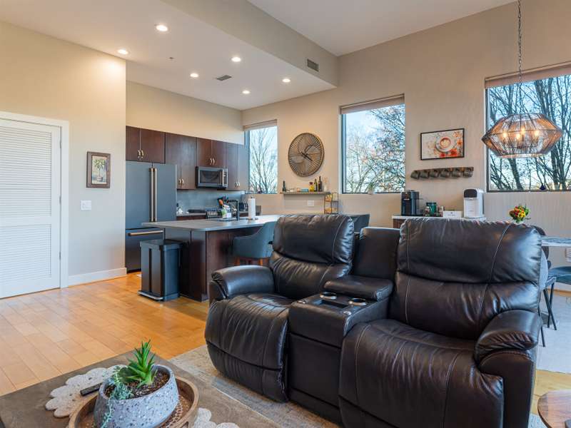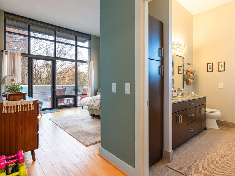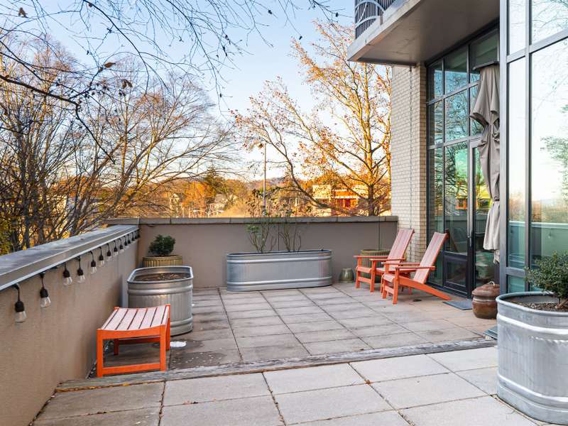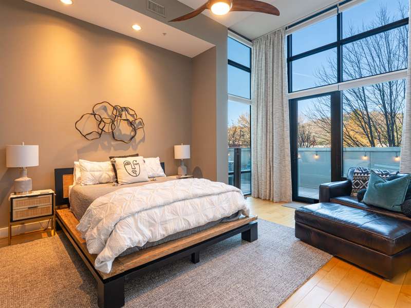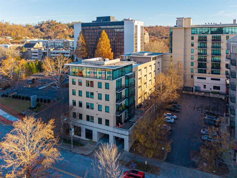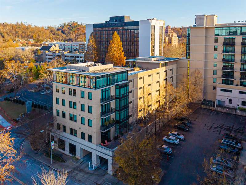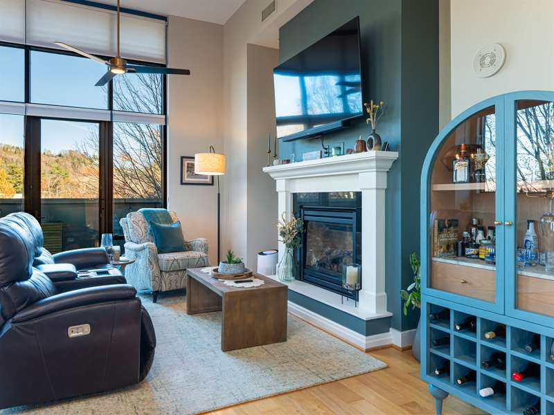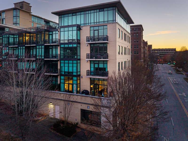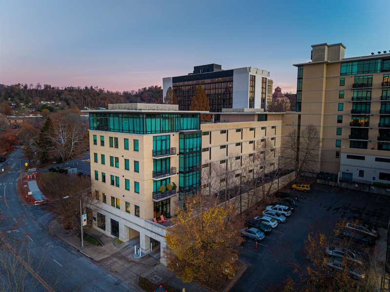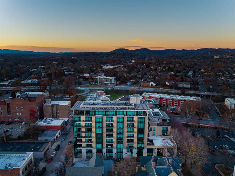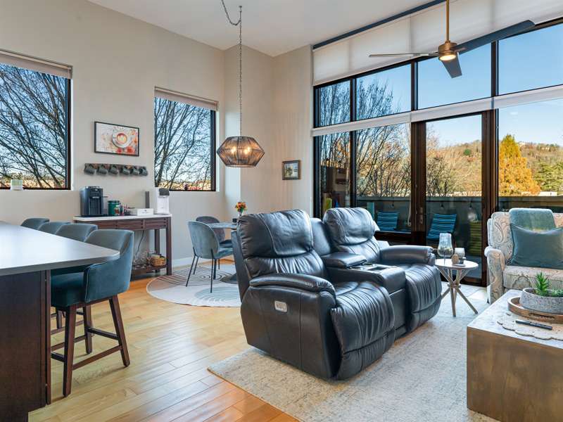 The rare combination of luxury, location, and privacy is immediately apparent as you enter this premier corner residence just steps from the heart of downtown Asheville. The open layout features floor-to-ceiling glass and 1,820 sq ft of refined living space, complemented by nearly 1,000 sq ft of private outdoor terraces with north, east, and west exposures. Three bedrooms, two full baths, and one half bath include two bedroom suites that open directly to outdoor living. Interior upgrades include motorized Hunter Douglas blackout shades and a kitchen outfitted with new GE Caf? Series appliances. Additional features include high ceilings, walk-in closets, a full laundry room, and two parking spaces in a secure garage.Residents enjoy scenic decks and walkways and the full suite of amenities at 60 N. Market, including a rooftop terrace, club room with panoramic city views, 24-hour fitness room, and a full kitchen with outdoor grill. Condo dues include cable, internet, trash/recycling, and water. This sought-after address is just blocks from downtown Asheville's best dining, shopping, theaters, galleries, cocktail bars, and more.