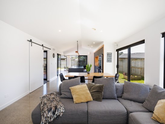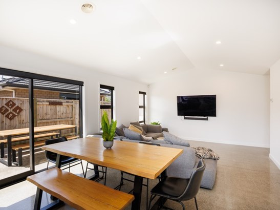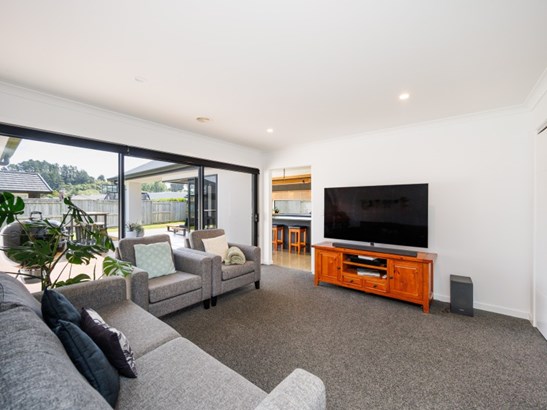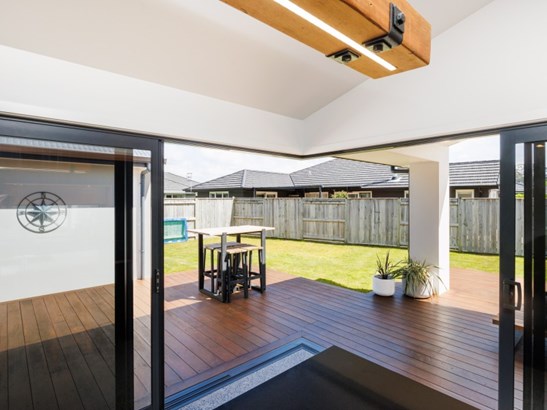 Built in 2021 by Fowler Homes, this impressive 217m2 (approx) home perfectly blends sleek design with seamless living. The home features timeless cedar and rock coat cladding, and upon arrival, a lush tropical garden welcomes you. Step inside to discover this spacious family haven featuring four bedrooms, a generous main bathroom, and a separate toilet. The master suite includes a large walk-in robe and a beautifully appointed tiled ensuite. At the heart of the home, polished concrete floors flow through the open-plan family living, dining, and kitchen. Designed for effortless entertaining, the kitchen morphs out through sleek corner stacker sliders, unfolding onto the quila deck and covered alfresco entertaining area - complete with a built-in gas BBQ port, ready for your next gathering. Connecting the two wings of the home is a separate family lounge that also opens out to the deck. An additional spacious office cupboard offers the perfect spot for a home workspace, creative corner, or teen retreat. Multiple storage cupboards are integrated throughout, adding everyday practicality to this stylish home. Central ducted heated will keep everyone warm in the cooler months. A double garage with internal-access for your convenience, completes the package. Every detail of this home has been designed for style, comfort, functionality, and connection - offering the perfect blend of modern elegance and practical family living. Call today for your viewing and fall in love with this gorgeous home.