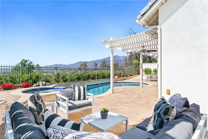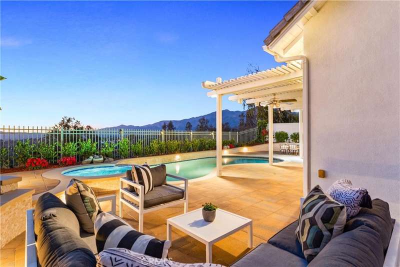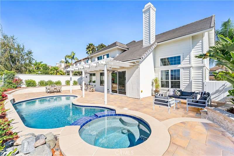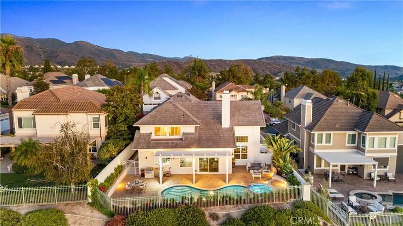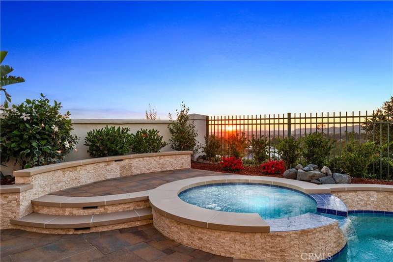 Welcome to 29 Muirfield, a rare opportunity to secure a view estate with a pool in one of South Orange County's most exclusive golf course communities. An elegant 3-bedroom, 3-bathroom residence in the prestigious, guard gated community of Dove Canyon, blending refined interiors with resort-style outdoor living and panoramic canyon sunset views. Designed for versatility, the home features a main floor bedroom with adjacent full bath, plus a flexible office - bonus room to suit today's lifestyle needs. The chef's kitchen is a showcase of sophistication, with marble countertops, stainless steel appliances, a breakfast bar, and unobstructed hillside panoramic view--all opening seamlessly to the inviting family room with fireplace and new sliding door welcoming you to the breath taking backyard. Vaulted ceilings, new windows, new motorized blinds, plantation shutters, and designer tile flooring enhance the home's airy elegance, while a thoughtfully executed third garage bay conversion adds living space, currently styled as a private office with a private entrance. Upstairs, the primary suite captures serene canyon views and features a spa inspired bath with dual vanities, a soaking tub, a separate shower, and dual walk-in closets. A secondary ensuite bedroom provides both comfort and privacy for family or guests. Outdoors, the residence lives like a boutique resort: a newly renovated pool and spa, multiple al fresco terraces, and low maintenance landscaping set the stage for sunset entertaining or quiet retreat. Additional features include a 2-car garage with flexible bay and an extended driveway for ample parking on a cul-de-sac street. Residents enjoy access to scenic trails, tennis and pickleball courts, community pool and spa, and neighborhood parks. Nearby, Dove Canyon Country Club, a Jack Nicklaus designed signature course offers optional membership for golf, dining, and a vibrant social calendar.
