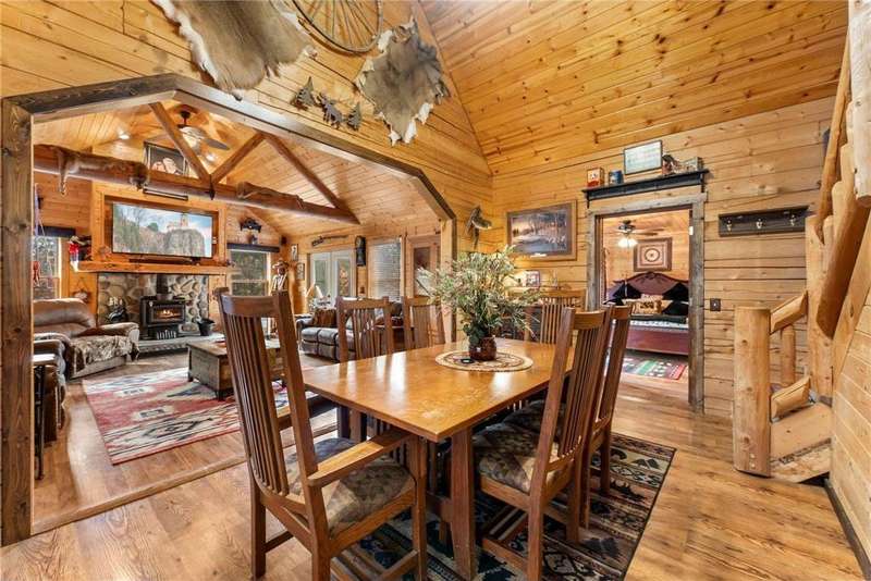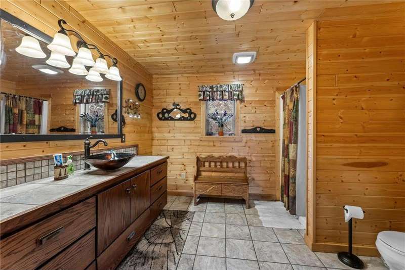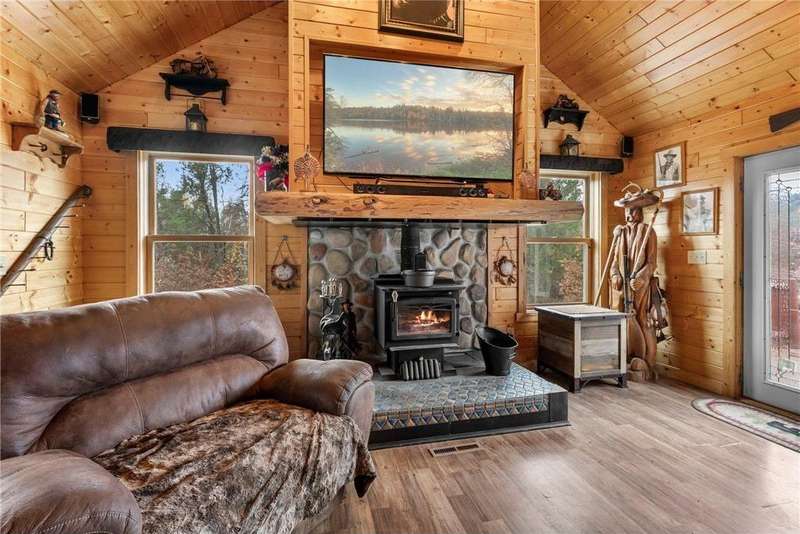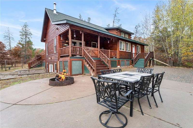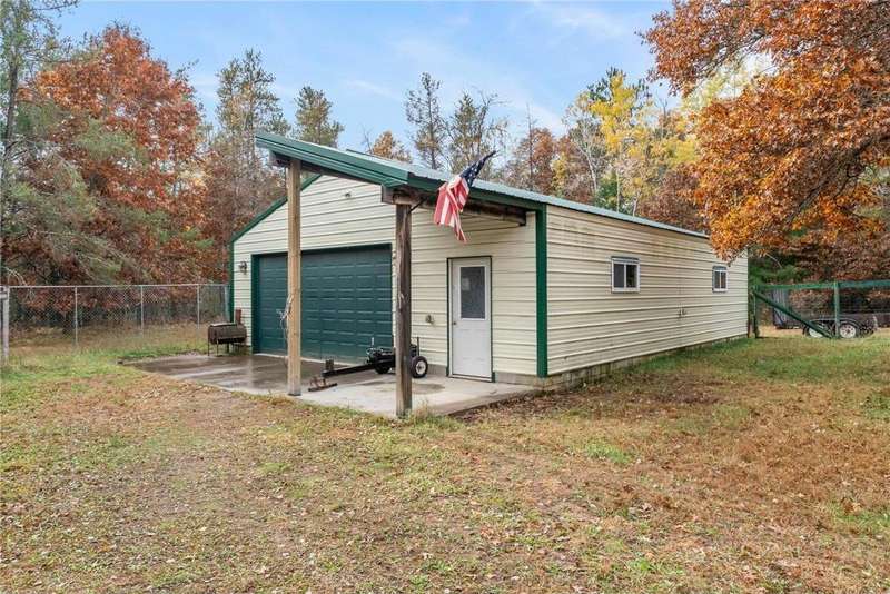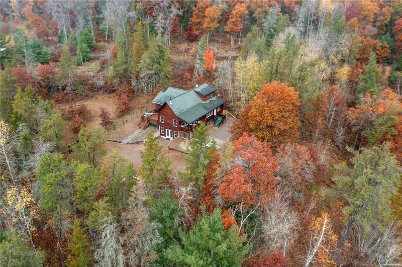 Custom-built private retreat 3BR/3BA home on 8.21 wooded acres, offered for the first time! Surrounded by over 100 acres of conservancy land open to public hunting and hiking. The main level features an open layout with vaulted wood ceilings, custom cabinetry, a clawfoot tub, and a beautiful stone wood-burning fireplace. Spacious primary suite with private bath and deck access. LL walkout includes a rec room with bar area—perfect for guests or entertaining. Enjoy peaceful views from the covered porch overlooking the spring-fed pond and watch deer cross your driveway. Addl highlights: 20x40 pole building, 2 sheds (both w/power, one w/water), and ATV/snowmobile trail access within 1 mile. In-town amenities include Parduns Canoe Rental and side-by-side rentals for exploring the scenic St. Croix River. Minutes from area lakes, dining, and recreation—an ideal year-round home or weekend getaway offering unmatched privacy, comfort & Northwoods charm!