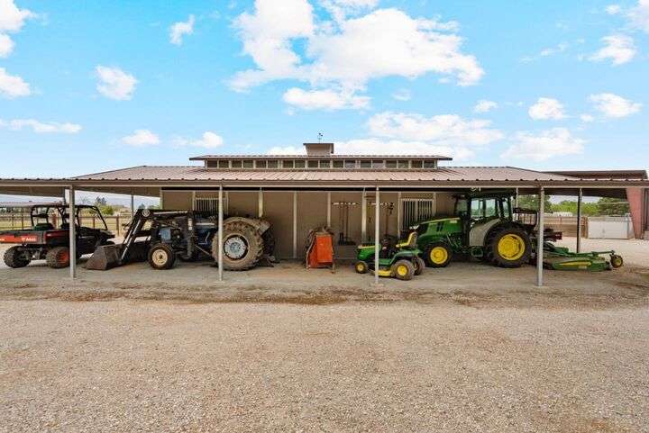 Welcome to this rare opportunity to own a beautifully maintained, versatile and income producing property set on just over 22 acres of fully deer-fenced land. Perfectly suited for equestrian enthusiasts, agricultural ventures, or those seeking a peaceful rural lifestyle, this estate offers a wealth of features and income-generating potential. The property includes a covered arena with a sand base, complete with a cow truck, cattle run, and holding pens, as well as an overhead sprinkler system to minimize dust. Adjacent are two large, fully fenced and irrigated pastures, ideal for grazing and training. For your livestock and equipment needs, there is a three-stall barn plus tack room and workshop, pole barn, and a nicely updated front barn that blends functionality with charm. A standout feature is the income-producing olive orchard, covering just over 12 acres and planted with Arbequina and Arbosana olive trees, known for their high-quality oil production. Water is abundant, with five wells servicing the property, including a blue valve with its own filtration system, and a 500-gallon on-site diesel tank to support operations. This property provides the infrastructure, space, and privacy to bring your dreams to life.