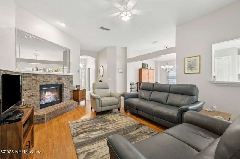 Welcome to 713 Lockwood Lane located in a small, very quiet JCP neighborhood! This charming home is nestled on a dead-end street on a premium lot that backs to peaceful preserve. A screened lanai under the roof over looks the nature preserve. This move-in ready home features a new roof in 2017, AC and appliances in 2021. The primary bath has a jetted tub, separate shower and double-sink vanity. 2 closets are also found in the primary bedroom, upgraded by design with a deep trey ceiling and a bay window. The one-story floor plan features split bedrooms for privacy, a formal dining room, and nice sized great room with brick fireplace. The tiled white kitchen has a breakfast nook that offers scenic views of the woods. All appliances stay too! And you'll enjoy the benefits of having all the amazing and fun JCP amenities close by. Great schools, shopping and restaurants are also near by! Seller has moved and can close quickly. Easy to schedule a tour and ready for new owners.